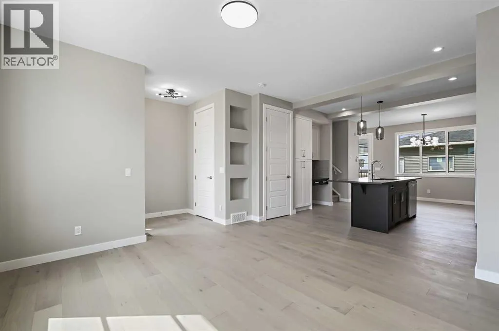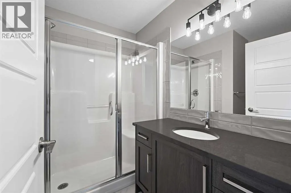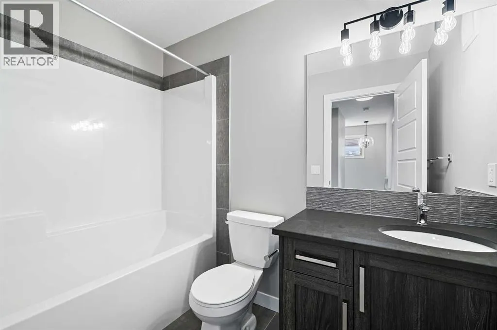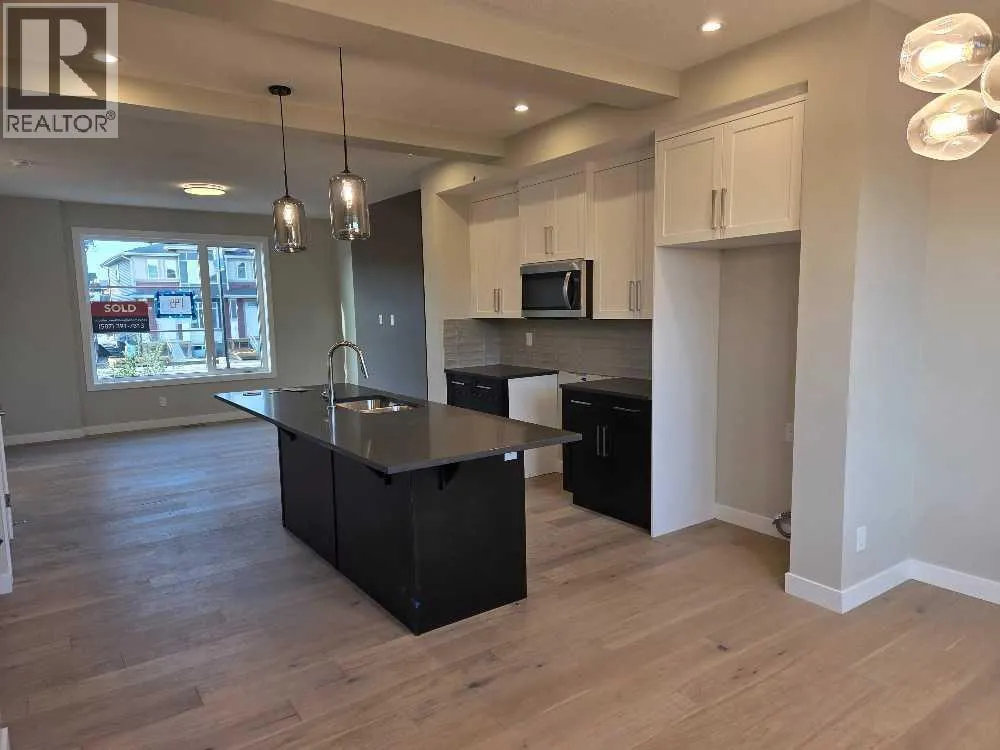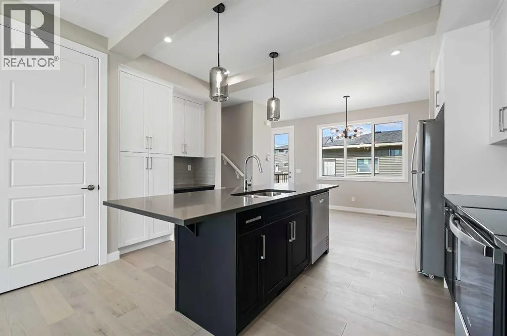 Public Remarks: IMMEDIATE POSSESSION. ,DOUBLE DETACHED GARAGE, DECK, FENCED AND LANDSCAPED, NO CONDO FEES. SOME PICTURES ARE OF SIMILAR MODEL, Welcome to the "St. Andrews" townhome, by Award winning, Master Builder, Douglas Homes Ltd. From the front covered porch, the entry opens onto the spacious great room with 9ft ceiling and gleaming hardwood floors throughout the main floor. The aspiring chef will appreciate the well planned "island" kitchen. From the upgraded 42 inch, soft close cabinets, to the gorgeous quartz countertops, everything is within easy reach. The sparkling stainless steel fridge, the glass top, self cleaning electric range, dishwasher, and over the range microwave/hoodfan are all just an arms length from the kitchen sink. Opposite side of the island, provides a convenient pantry, and desk with upper cabinet for all those recipe books you will collect. The spacious dining area features a large picture window looking out upon the back yard with room for the kids to play, with a rear entry door to the deck for those summer bbq's. Here also is a 2pc powder room for your guests convenience, and perhaps the kids hurried need. Upstairs includes 2 good sized secondary bedrooms, a 4pce bathroom with quartz vanity and tile floors, a convenient upstairs laundry, and a spacious primary bedroom with large upsized window and ensuite bath, with walk in shower, with glass front, tile floor and again a quartz vanity. The full basement provides rough in plumbing for a future bath, one window for future bedroom, and enough space remaining for a spacious future family room if you decide your family needs room to spread. All this in the desirable new subdivision Cobblestone Creek, with tennis courts, playgrounds, future school reserve, pathways and numerous green spaces, on the western edge of Airdrie, with wide open country side, and views to the west. (id:27476)