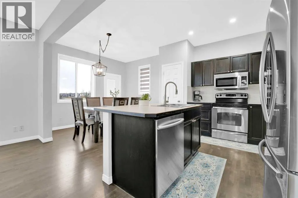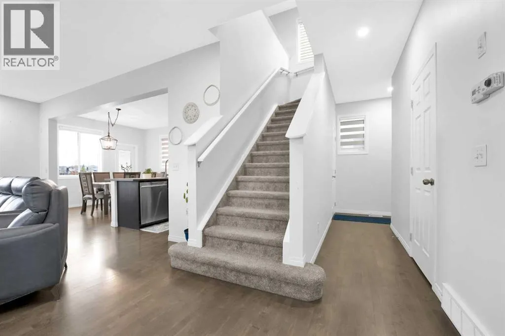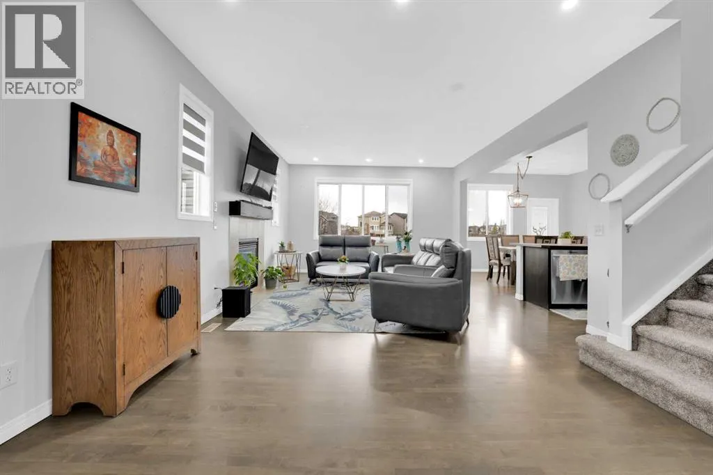 This is truly one of the best locations in Luxstone. This well-maintained two-storey home features a desirable south-facing backyard and sides onto a serene nature preserve and green space, offering exceptional privacy with only one neighboring property to the west. The beautifully landscaped yard and private patio create an ideal outdoor retreat. Inside, the home offers a functional open-concept main floor perfect for everyday living and entertaining. The main level is filled with natural light from east- and south-facing windows throughout the living room, dining area, and kitchen. The second floor offers a spacious family room, convenient laundry room, and three well-sized bedrooms, including the primary suite with a dual-vanity ensuite, along with a full main bathroom. The newly built basement provides additional living space. (id:27476)