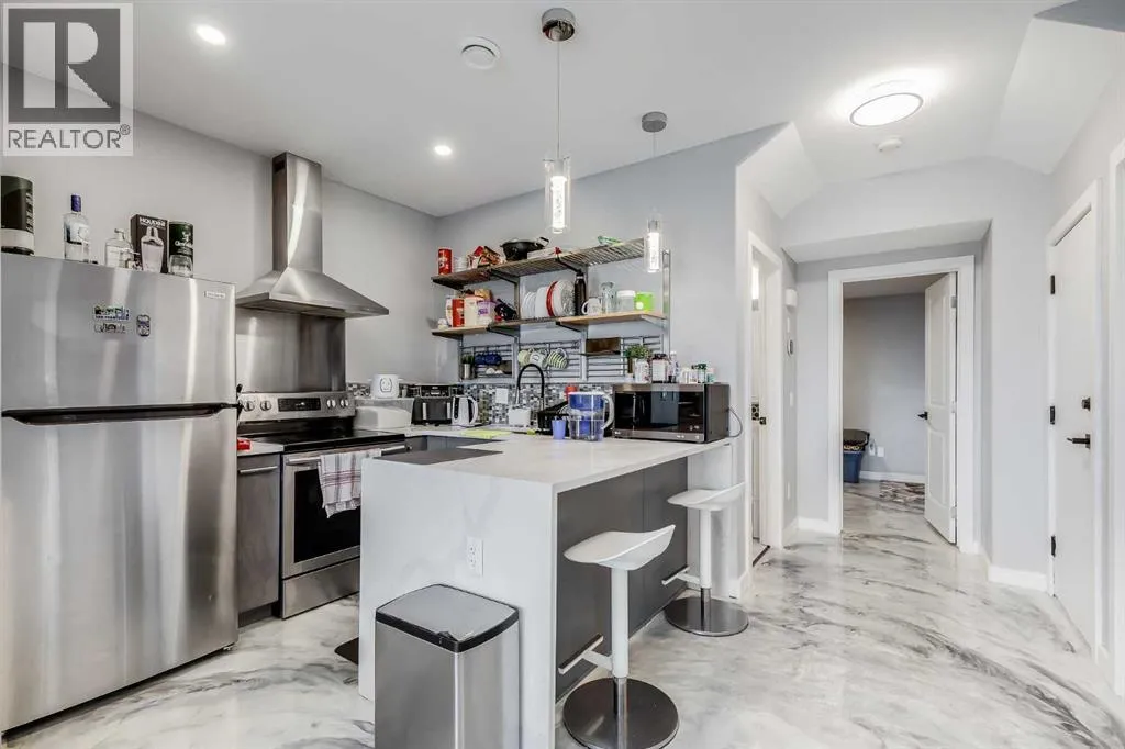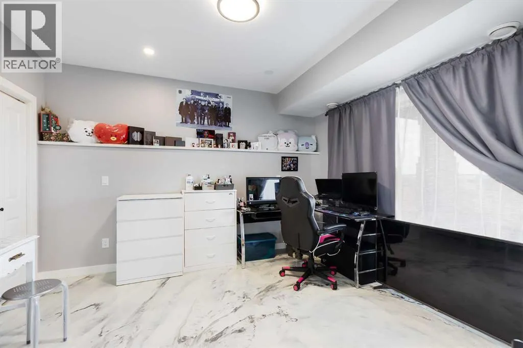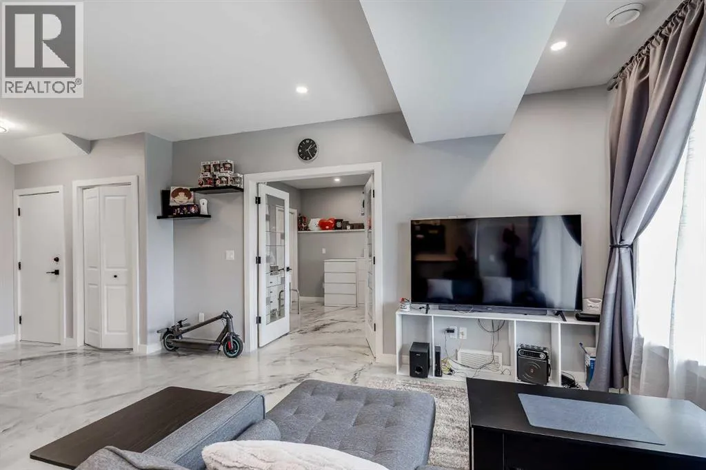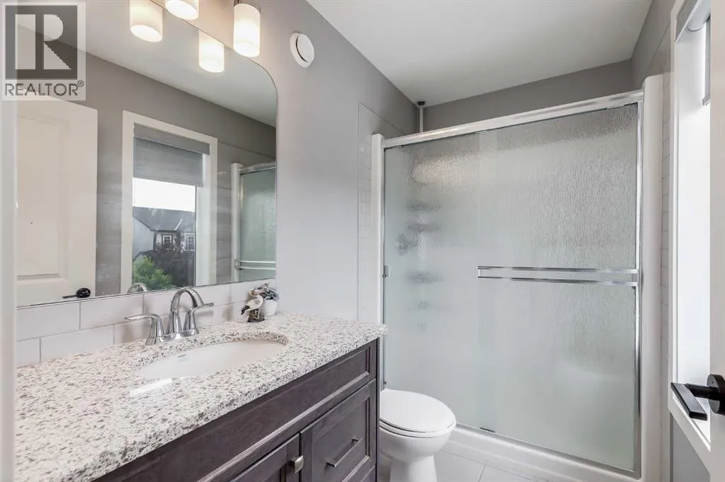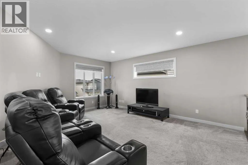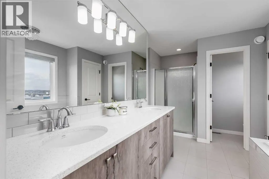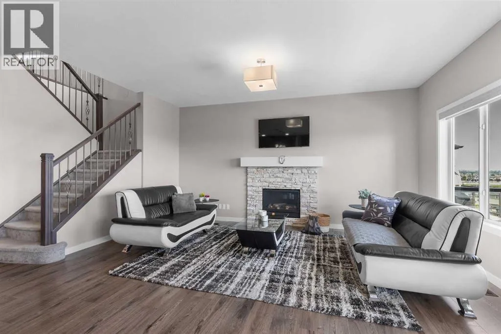 Beautifully appointed & ideally located, this 6-bedroom walkout home with a LEGAL suite, dream garage & premium upgrades delivers upscale comfort, functional design & long-term versatility. Backing onto a scenic pathway leading to Northcott Prairie School & a peaceful pond, this home blends family-friendly convenience with elevated style. Smart lights & switches are installed throughout, with cameras & door sensors on all entry points. Wide plank flooring, curved staircase & railings, bullnose corners, a soft neutral palette & expansive windows create a warm, welcoming atmosphere. The open layout encourages connection, from quiet evenings by the gas fireplace to lively gatherings in the oversized dining area. The modern kitchen inspires culinary creativity with full-height cabinetry, glass backsplash, gas cooktop, built-in wall oven, under-cabinet lighting rough-in & a statement island for casual meals. A walk-through butlerâs pantry adds efficiency with a second gas stove, prep sink & extra storage. Two spotlight-lit alcoves add stylish display options. Step outside to the full-width upper deck with glass railings, gas & water lines & take in tranquil views. A private den provides a quiet space for work or study. Upstairs, a spacious bonus room invites family downtime, while four large bedrooms ensure room for all. The elegant primary retreat includes a walk-in closet & spa-inspired ensuite with dual sinks, soaker tub & glass shower. A secondary bedroom with private 3-pc ensuite is perfect for guests or teens, while a shared 4-pc bath & upper laundry add daily ease. The finished walkout level adds incredible flexibility with a bright, open-concept legal suite featuring two bedrooms, a full kitchen with gas rough-in, professional metallic epoxy floors, under-cabinet lighting rough-in, separate laundry, 3-pc bath & private entryâideal for multi-gen living or long-term guests. Outside, the yard features a covered lower patio with rough-in for a hot tub, both gas & wat er lines, garden beds & direct access to the pathway network. The charming front porch boosts curb appeal & makes a perfect morning coffee spot. The garage is a standout with gas line for future heater, hexagon LED lighting, pro-grade floor tiles, overhead storage & handy man door. Just a 5-min walk to school & 18-min stroll to shops, with easy access to QEII, CrossIron Mills & Calgaryâthis is a rare chance to live beautifully in a prime Airdrie location. (id:27476)