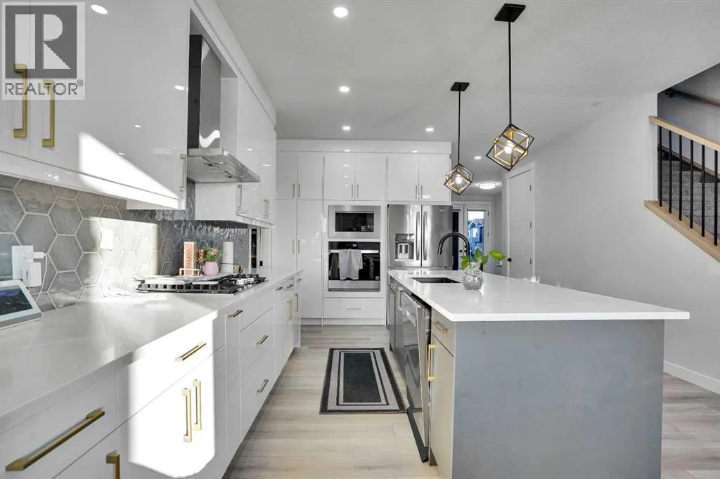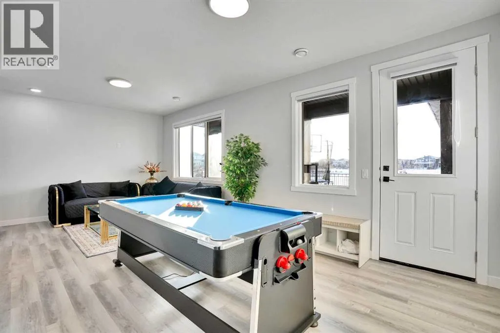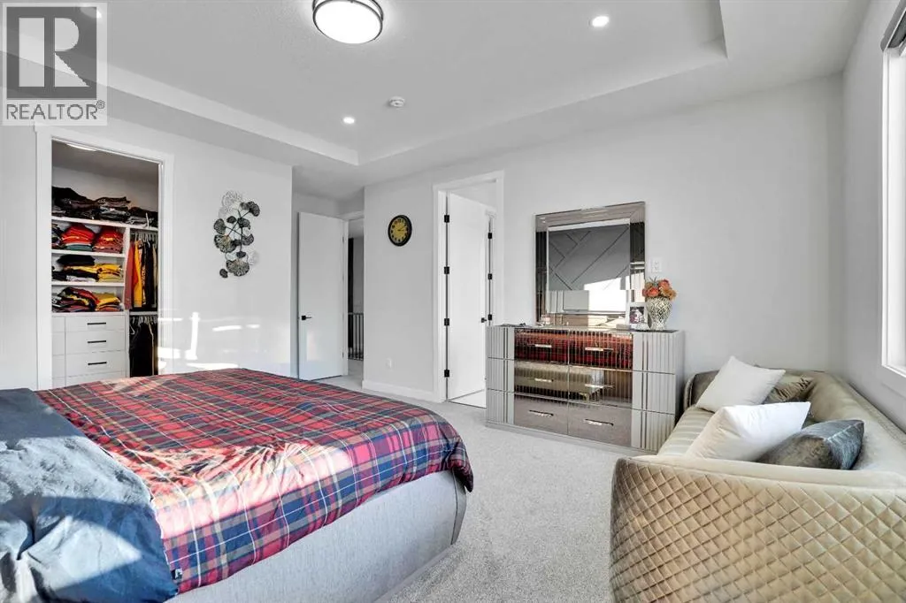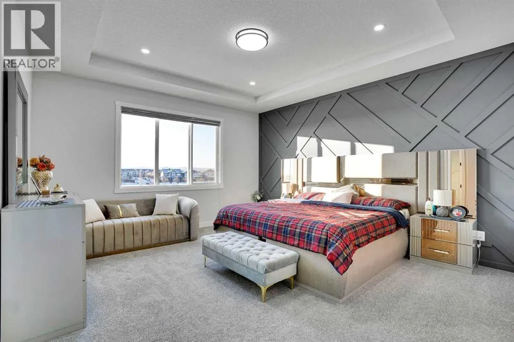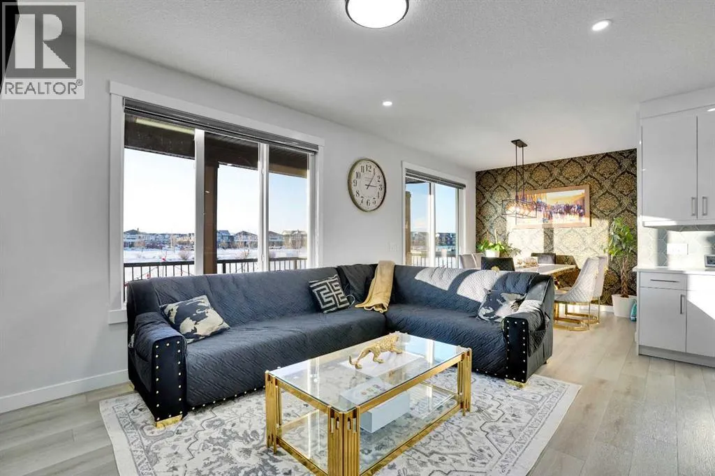 Experience elevated living in thid exceptional walkout home located in the highly desirable community of Midtown, Airdrie This stunning custom built walkout property perfectly blends modern luxury with everyday comfort. Offering 7 bedrooms, 5 bathrooms, two master suites, and over 3600 sq. ft. of fully developed living space, this home is designed to adapt to every stage of life.From the moment you step inside, youâll appreciate the 10-foot ceilings on every level, oversized windows, and a bright open-concept layout that fills the home with natural light while showcasing beautiful lake views. The main floor features a welcoming foyer, spacious living and dining areas, and a chef-inspired kitchen with a built-in electric cooktop, wall oven, microwave, and full-height cabinetry for plenty of storage. The added SPICE kitchen with a gas range makes entertaining and everyday cooking effortless.Upstairs, youâll find four generously sized bedrooms, including two luxurious master suites. The primary suite offers serene lake views, a walk-in closet, and 6-piece ensuite. The second master bedroom overlooks quiet green space and includes its own walk-in closet and ensuite. A bright bonus room and a convenient upper-floor laundry room complete this level.The fully finished walkout basement is perfect for entertaining or extended family living. It features two additional bedrooms, a full bathroom, a stylish wet bar âideal for guests, teenagers, or potential rental income.Outside, enjoy a professionally landscaped backyard, new concrete step. Relax on your covered deck overlooking the pond while children enjoy the nearby playground.Recent upgrades include a new air conditioning system, concrete work, and more. Located just steps from green spaces, lake access, and with a school bus stop right across the street, this home truly offers luxury, convenience, and an unbeatable lifestyle.This is a rare opportunity you wonât want to missâbook your private sh owing today! (id:27476)