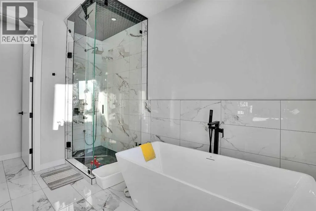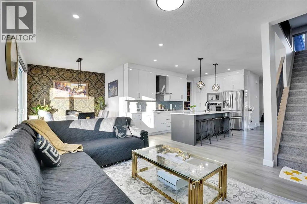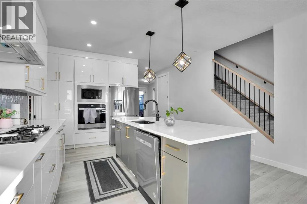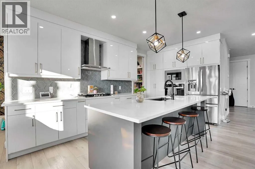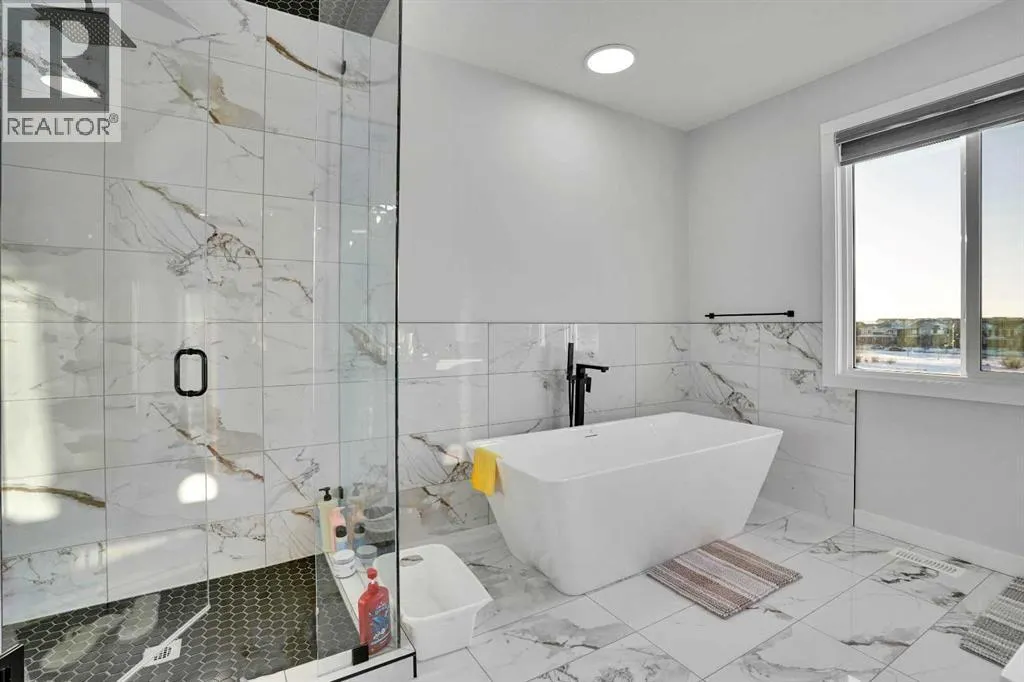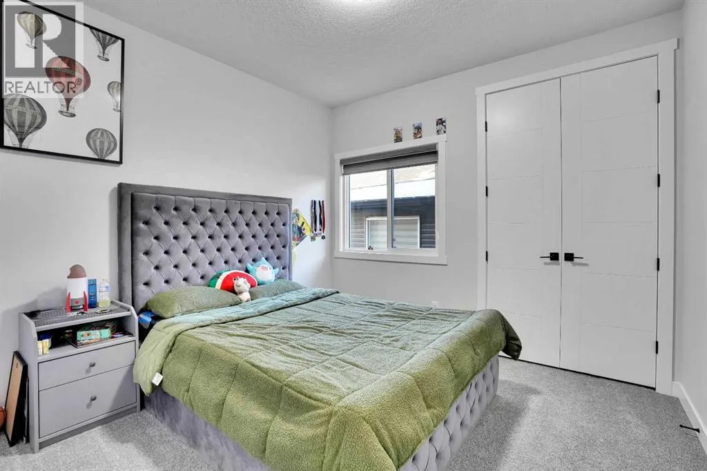 Experience elevated living in thid exceptional walkout home located in the highly desirable community of Midtown, Airdrie This stunning custom built walkout property perfectly blends modern luxury with everyday comfort. Offering 7 bedrooms, 5 bathrooms, two master suites, and over 3600 sq. ft. of fully developed living space, this home is designed to adapt to every stage of life.From the moment you step inside, youâll appreciate the 10-foot ceilings on every level, oversized windows, and a bright open-concept layout that fills the home with natural light while showcasing beautiful lake views. The main floor features a welcoming foyer, spacious living and dining areas, and a chef-inspired kitchen with a built-in electric cooktop, wall oven, microwave, and full-height cabinetry for plenty of storage. The added SPICE kitchen with a gas range makes entertaining and everyday cooking effortless.Upstairs, youâll find four generously sized bedrooms, including two luxurious master suites. The primary suite offers serene lake views, a walk-in closet, and 6-piece ensuite. The second master bedroom overlooks quiet green space and includes its own walk-in closet and ensuite. A bright bonus room and a convenient upper-floor laundry room complete this level.The fully finished walkout basement is perfect for entertaining or extended family living. It features two additional bedrooms, a full bathroom, a stylish wet bar âideal for guests, teenagers, or potential rental income.Outside, enjoy a professionally landscaped backyard, new concrete step. Relax on your covered deck overlooking the pond while children enjoy the nearby playground.Recent upgrades include a new air conditioning system, concrete work, and more. Located just steps from green spaces, lake access, and with a school bus stop right across the street, this home truly offers luxury, convenience, and an unbeatable lifestyle.This is a rare opportunity you wonât want to missâbook your private sh owing today! (id:27476)