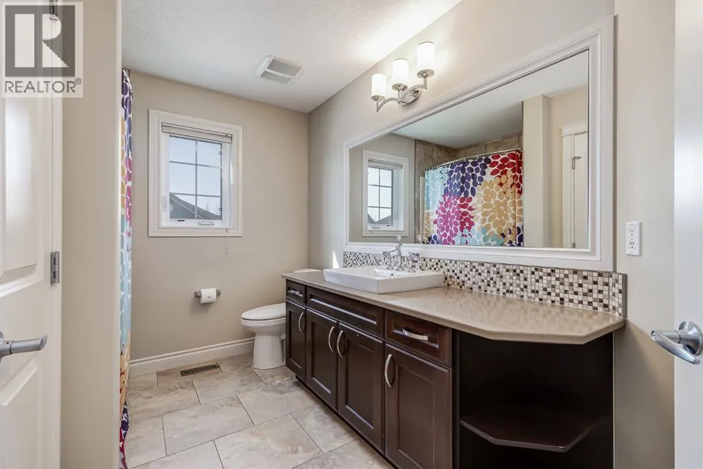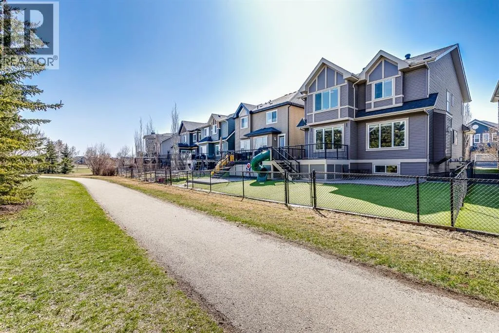HUGE PRICE REDUCTION ON THIS GORGEOUS HOME! ** Seller Says Sell! **This Highly Upgraded Custom Built McKee Home boasts 2680 sqft with a Fully Finished Basement providing a total of 3818 sqft of Developed Space. This Beautiful Home has 5 Bedrooms, and BACKS ONTO GREENSPACE and PATHWAYS that are a 1 min walk from the Coopers Crossing Elementary School. When you arrive, you will enjoy the Large Private Foyer with a seating bench, and will immediately notice the beautiful Travertine Tile Flooring, 9' Ceilings, and see that the Home is FRESHLY PAINTED. The Front Office is nicely situated so it is Private and has French Doors. You will be impressed by the Oversized Windows that welcome you into the Living Room and Kitchen area as they bathe the Home in Natural Light. The Living Room is quite spacious and has a Feature Wall the Oversized Stone Faced Fireplace. The Kitchen is a Chef's Dream and features Upgraded Appliances including a 5 Burner Induction Cooktop, Built in Wall Oven, Built in Microwave, Stainless Steel Refrigerator, Quartz Countertops, Tons of Full Height a Beautiful Cabinetry with lots of Pot and Pan Drawers, Undermount Lighting, Glass Tiled Backsplash, a Massive Island with seating, and a Huge Walk through Pantry. The Dining area can host a large table. The Mudroom has Built in Cabinetry and opens to the Oversized Garage. The Staircase with Wrought Iron Spindles lead you to the Upper Level that opens to a Massive Family Room with Vaulted Ceilings. The oversized Primary Suite is exquisite with Hardwood Flooring, Vaulted Ceilings, a Reading Nook with Built in Shelving and opens to the Ensuite. The Spa-like Ensuite has a Soaker Tub, Dual Vanities, and an oversized Shower Stall with 3 Showerheads to help you relax and enjoy your escape away. There is also a walk in closet. 3 Additional Bedrooms, Full Bathroom, and Laundry Room complete the Upper Level. The Lower Level was completed by the Builder to keep the decor and cabinetry the same and features 9' ceilings and a Fantastic Family Room with a Stone Feature Wall with a 120" Projection Screen and Media Equipment, Built in Cabinetry, Huge Dry Bar perfect for all those movie snacks and for storage. There is also a Games area, the 5th Bedroom and a Full Bathroom on the Lower Level. This Amazing Home is Air Conditioned, has a Brand New Furnace (Dec 2025) and Hot Water Tank (Oct 2025), Water Softener, Sonos System and Speakers throughout, and Vacuum System. The Exterior has a Large Upper Deck with BBQ Gas Line, a Slide for the kids, and has Composite Decking. The Lower Aggregate Patio extends under the enclosed Deck making storage easy and clean. The Home is surrounded by Pet Friendly Artificial Turf making it low maintenance for a busy Family. The Oversized Heated Garage is 19'1" x 25'.7". Coopers Crossing is the Premier Community in Airdrie. Watch your kids walk to school from the Home, and ride their bikes on the back pathway is a bonus. Ensure to watch the tour on MLS or Realtor.ca. (id:27476)