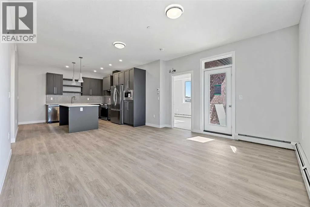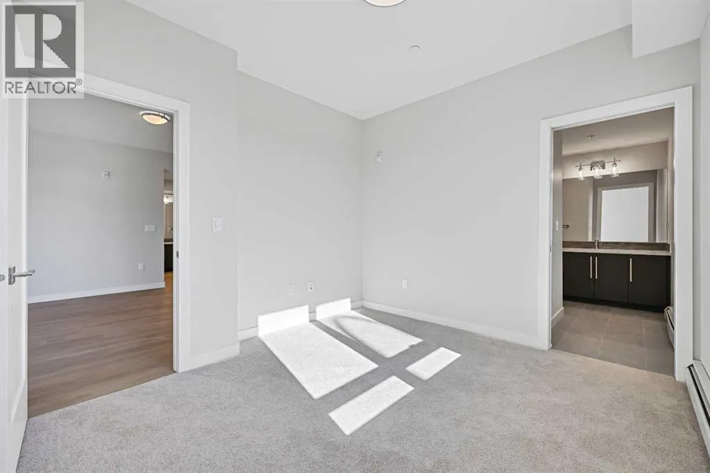 Welcome to The Monarch, where contemporary design meets everyday elegance. This impressive ground-floor corner suite offers 2 bedrooms and 2 bathrooms, complemented by 9-foot ceilings and premium finishes throughout. The thoughtfully designed interior features quartz countertops, modern pot lighting, triple-glazed windows, and wall-mounted air conditioning, showcasing exceptional attention to detail.Step outside to a spacious south-facing balcony overlooking Cooper Promenade, perfect for enjoying natural light and outdoor living. Ideally located, this home is close to parks and schools, with easy access to 40th Avenue and just minutes from Highway 2, making commuting effortless.Residents enjoy over 4,000 sq. ft. of upscale amenities, including a stylish resident lounge, fully equipped fitness center, yoga studio, family room with a large outdoor deck, and a convenient pet wash station. The building also features two elevators for added comfort, two rooftop terraces with breathtaking views, and a guest suite available in each building for visiting friends and family.A variety of additional layouts are available, including 1 bedroom + den and 2 bedroom + den floor plans ranging from 670â1,058 sq. ft. Discover a new standard of refined condo living at The Monarch. (id:27476)