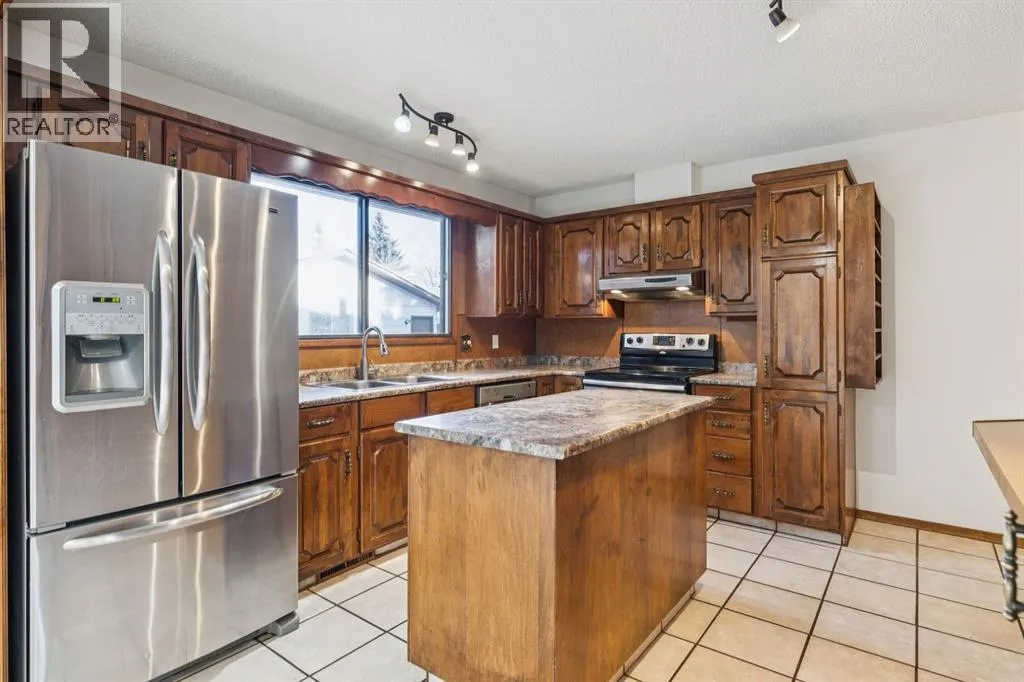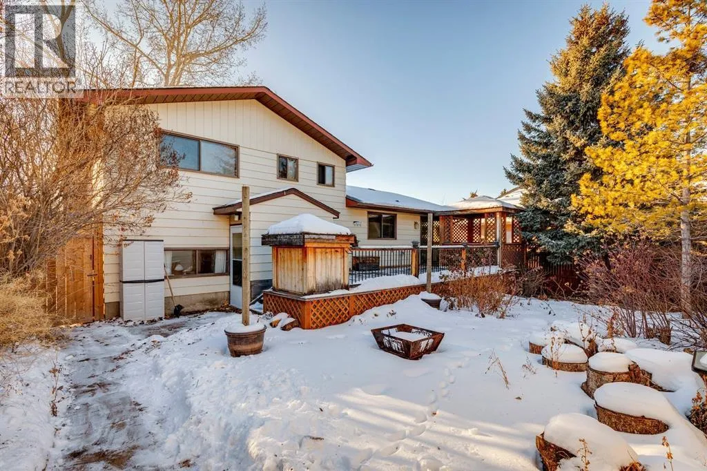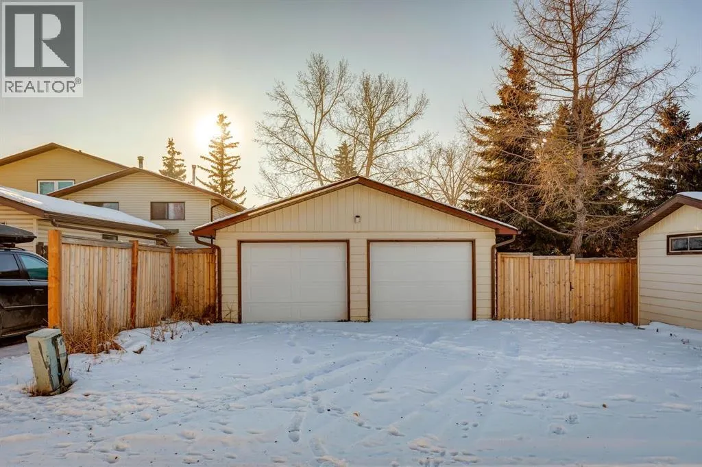 Welcome to #9 Jensen Crescent in Airdrie, a truly special, original-owner family home nestled on a quiet, low-traffic street in one of Airdrieâs most established and family-friendly neighborhoods. Homes like this rarely come available, offering an exceptional combination of location, space, privacy, and long-term pride of ownership. This fully finished 4-level split offers over 2,200 sq ft of developed living space, thoughtfully designed to accommodate growing families or multi-generational living. With 4 bedrooms and 2.5 bathrooms, thereâs plenty of room for everyone to spread out while still enjoying warm, connected living spaces. Large windows allow natural light to flow throughout, while the homeâs âgreat bonesâ provide an excellent opportunity to personalize or update over time. The third-level walkout offers separate exterior access, adding flexibility for a home office, teenage retreat, or potential future income helper (subject to approvals). The living area is anchored by a stunning floor-to-ceiling wood-burning brick fireplace and wood wainscoting, creating a cozy atmosphere perfect for Alberta winters. Additional highlights include a cold room for storage, a central vacuum system, and all major appliances included. Step outside and discover your own private backyard oasis. The mature, fully fenced yard is beautiful, offering exceptional privacy. Enjoy summer days surrounded by abundant raspberry bushes, ample space, and room to entertain or relax on your full-size deck. The property also boasts RV parking, a storage shed, and plenty of additional parking spaces. Car enthusiasts and hobbyists will appreciate the oversized double detached garage with rear lane access, adding both convenience and functionality. New shingles on the house provide peace of mind for years to come. Location is truly outstanding â situated in the highly sought-after Tri-School Zone, with schools just steps away, making daily routines effortless. You're also within walking distance to downtown Airdrie amenities, including shopping, dining, parks, and services. With its fantastic curb appeal framed by a lush hedge line, family-focused layout, and unbeatable location, this home offers a rare opportunity to own a lovingly maintained home in the heart of Airdrie. A perfect blend of comfort, character, and long-term value â this is one you won't want to miss. (id:27476)