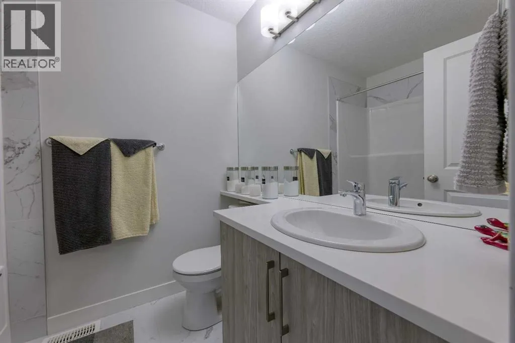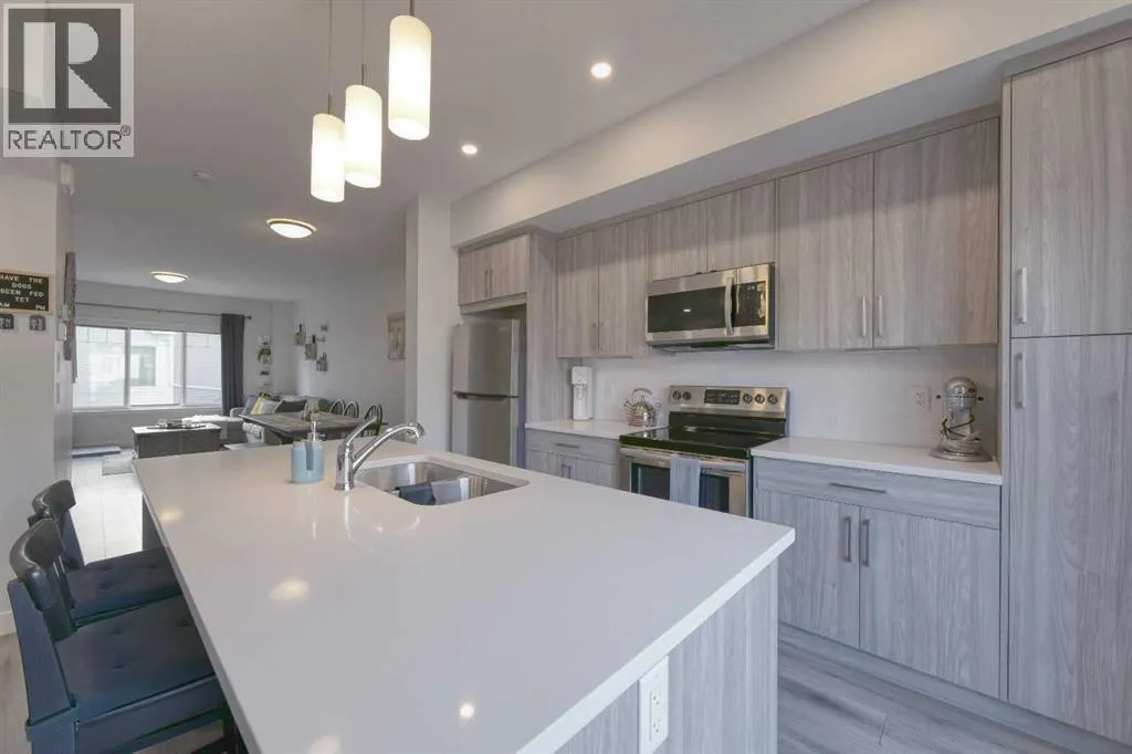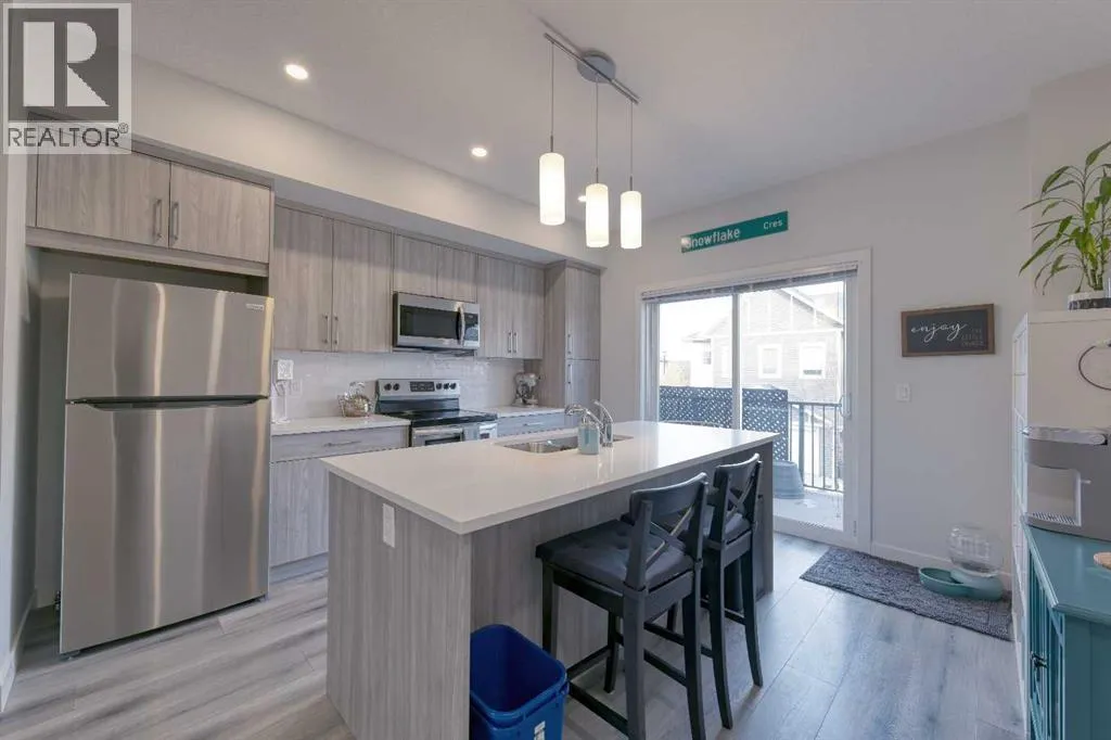 Welcome to life in the Canals! This beautifully upgraded, original-owner home with an attached garage is sure to impress. The main level offers 9-foot ceilings, a convenient two-piece bathroom, and a private home officeâideal for working from home. Added convenience comes from direct access to the attached garage and a second north-facing entrance. The bright, modern kitchen features stainless steel appliances, quartz countertops, ample cabinetry, and a spacious central island with a breakfast bar. The adjoining dining and living areas are filled with natural south facing light from oversized windows, and this level also provides access to a private deckâperfect for BBQs and entertaining.Upstairs, youâll find two bedrooms with custom blackout blinds and two full bathrooms, including the spacious primary retreat complete with an ensuite and a large closet with custom organizers. A conveniently located laundry area completes this level. Ideally situated in the heart of the Canals, this home is within walking distance to schools (Ralph McCall Kâ4 and Our Lady of Peace Kâ9 English and French Immersion), along with dining, shopping, medical offices, and more. Enjoy miles of paved waterfront pathways and year-round activities such as paddle boarding, canoeing, fishing, and winter skating. Experience everything this highly sought-after community has to offer! (id:27476)