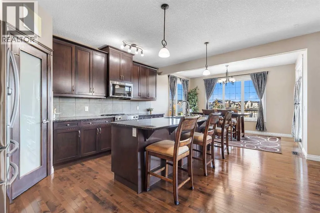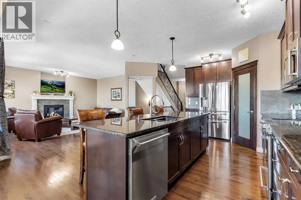 Location, Location, backing into the Canal & pathway. This original owner home offers numerous upgrades & features which include: 9' ceilings, over 3600 sq ft of developed living space, total of 5 bedrooms & 3.5 bathrooms, walkout lower level, upgraded stainless steel appliances, newer composite deck, hardwood, granite in kitchen, wrought iron railings, 2 furnaces, upper furnace has air conditioning, R.I .for speakers on main & upper ensuite,, also 2 speakers on deck, all upper bedrooms have walk in closets, gas line on deck, lower patio area from walkout, hot water tap outside, manual underground sprinklers in front yard & so much more. The main floor features a 2pc bath, den, laundry area with sink, spacious great room with gas fireplace & a large kitchen that offers a pantry, island with eating bar & a nook that has access to the over sized deck that over looks the canal. The upper floor features a 4pc bath, bonus room & 3 good size bedrooms. The primary bedroom offers a walk in closet & full ensuite. The lower walk out features 2 bedrooms, 3pc bath & a family room that has access to the patio/yard. This home shows pride of ownership & is located on a quiet street close to schools, shopping, green spaces & all other amenities. Click on link to view 3D walk through. (id:27476)