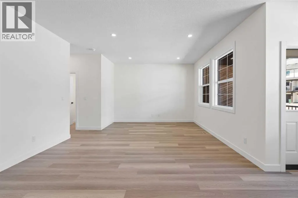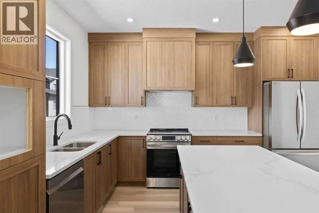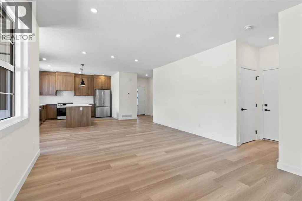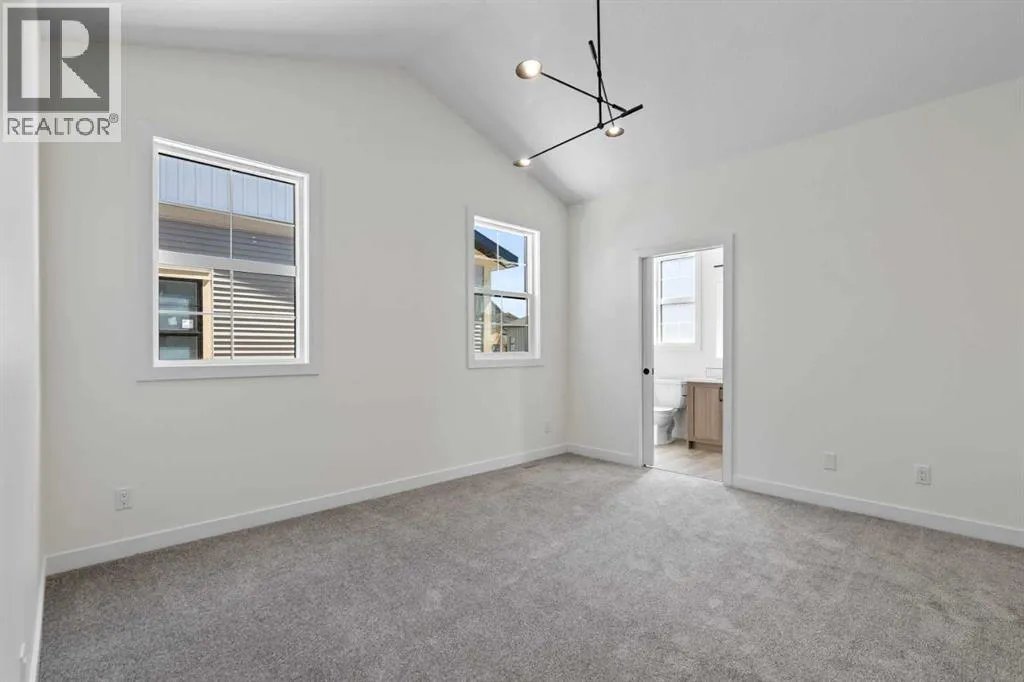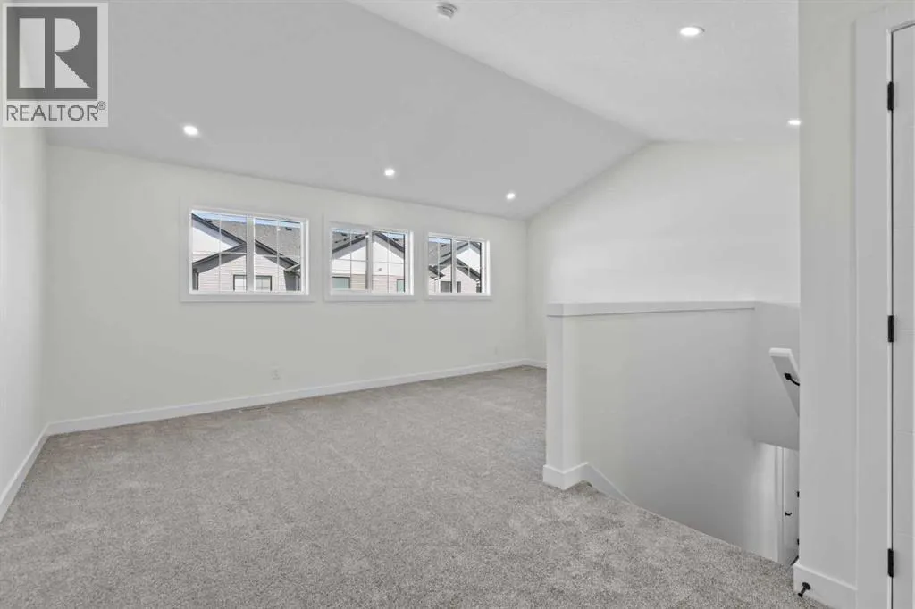 Welcome to luxury and convenience in the heart of Airdrieâs award-winning community of Cooperâs Crossing. This beautifully crafted corner-unit townhome features the highly sought-after primary bedroom on the main floor, combining everyday comfort with smart design. Step inside to discover a bright, functional main level that includes a stylish gourmet kitchen with an oversized island and stainless steel appliances, a cozy family room, and your private main-floor retreat complete with vaulted ceilings and a spa-inspired ensuite. Upstairs, a sun-soaked bonus room offers the perfect space to unwind, work from home, or enjoy family time. Just off the bonus area, youâll find two additional bedrooms, a full bathroom, and a convenient upstairs laundry space ( no in unit washer and dryer)Enjoy the added luxury of 9-foot ceilings on both the main floor and the basement, creating a spacious and airy atmosphere throughout.Summer evenings are made better on your covered west-facing balconyâwith a gas line for your BBQ and views of the landscaped green space, offering a peaceful, family-friendly backdrop. Additional highlights include a double attached garage, modern contemporary exteriors, and fully landscaped yards designed for ease and curb appeal.And hereâs the best part...This townhome offer a true Lock & Leave lifestyleâexperience it at its best!With condo fees of just $335 a month, your exterior insurance, snow removal, lawn care, landscaping, and even city garbage pick-up are all taken care ofâso you can focus on living, not maintaining. No stress. No fuss. Just effortless, carefree living. Book your exclusive tour today! (id:27476)
