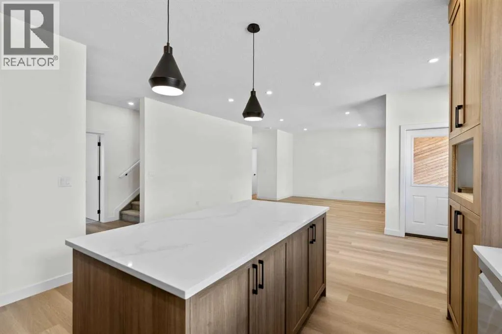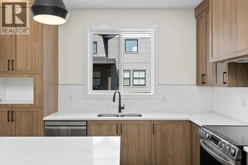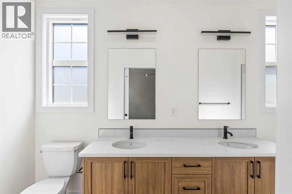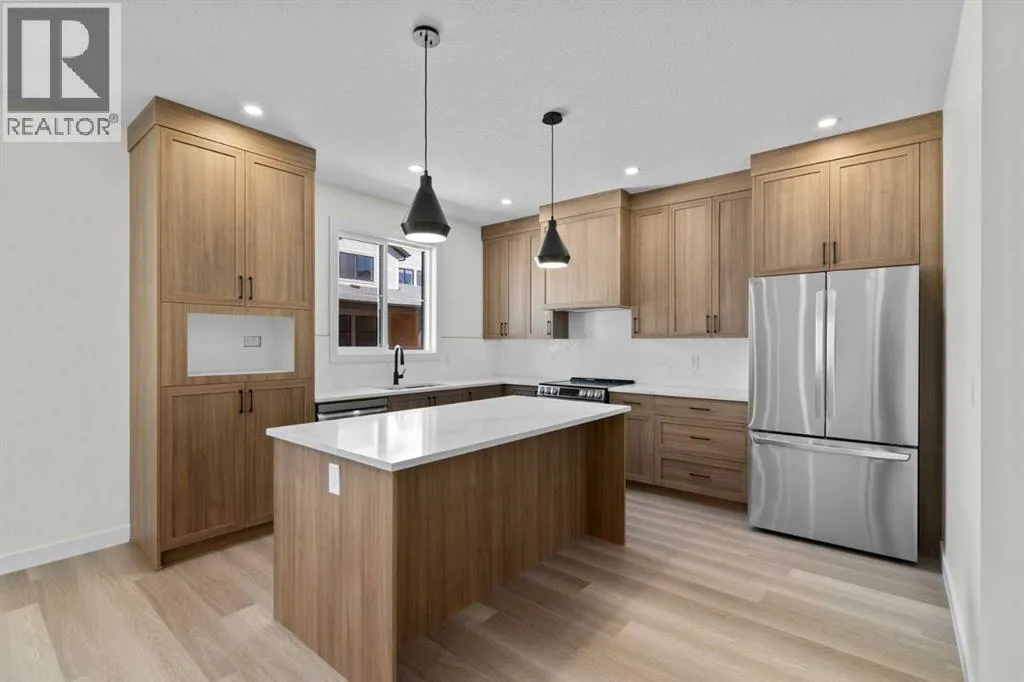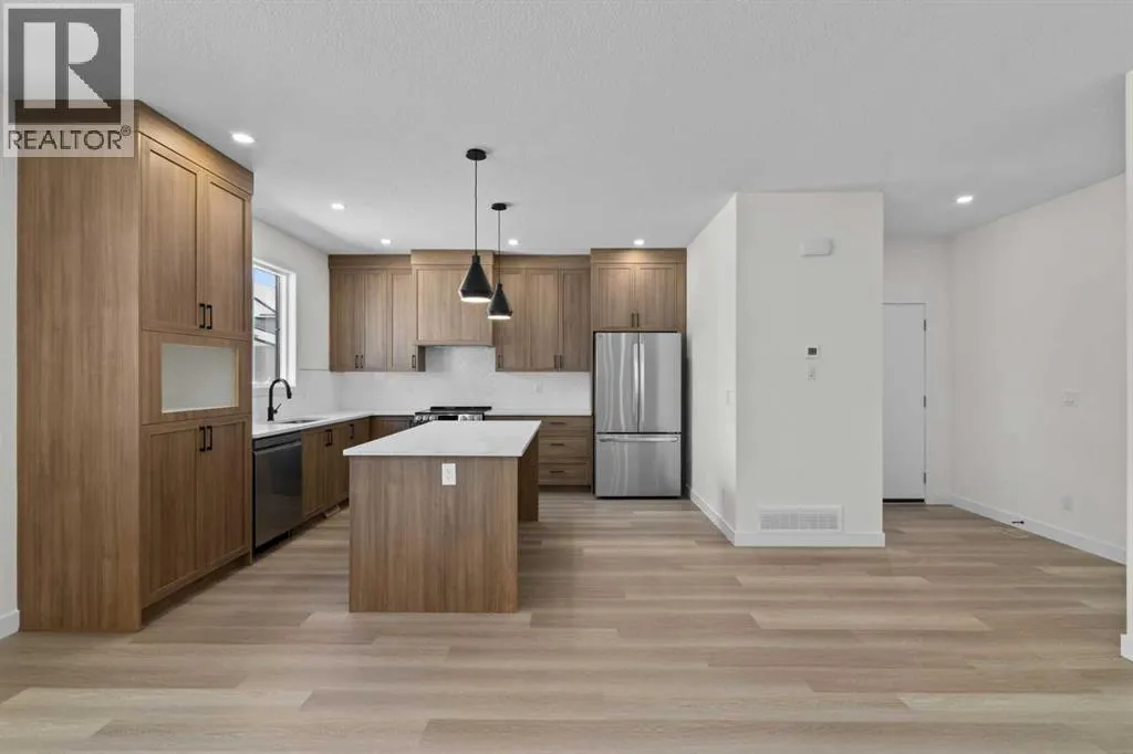 Welcome to luxury and convenience in the heart of Airdrieâs award-winning community of Cooperâs Crossing. This beautifully crafted corner-unit townhome features the highly sought-after primary bedroom on the main floor, combining everyday comfort with smart design. Step inside to discover a bright, functional main level that includes a stylish gourmet kitchen with an oversized island and stainless steel appliances, a cozy family room, and your private main-floor retreat complete with vaulted ceilings and a spa-inspired ensuite. Upstairs, a sun-soaked bonus room offers the perfect space to unwind, work from home, or enjoy family time. Just off the bonus area, youâll find two additional bedrooms, a full bathroom, and a convenient upstairs laundry space ( no in unit washer and dryer)Enjoy the added luxury of 9-foot ceilings on both the main floor and the basement, creating a spacious and airy atmosphere throughout.Summer evenings are made better on your covered west-facing balconyâwith a gas line for your BBQ and views of the landscaped green space, offering a peaceful, family-friendly backdrop. Additional highlights include a double attached garage, modern contemporary exteriors, and fully landscaped yards designed for ease and curb appeal.And hereâs the best part...This townhome offer a true Lock & Leave lifestyleâexperience it at its best!With condo fees of just $335 a month, your exterior insurance, snow removal, lawn care, landscaping, and even city garbage pick-up are all taken care ofâso you can focus on living, not maintaining. No stress. No fuss. Just effortless, carefree living. Book your exclusive tour today! (id:27476)