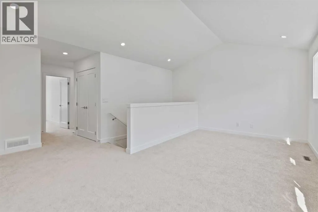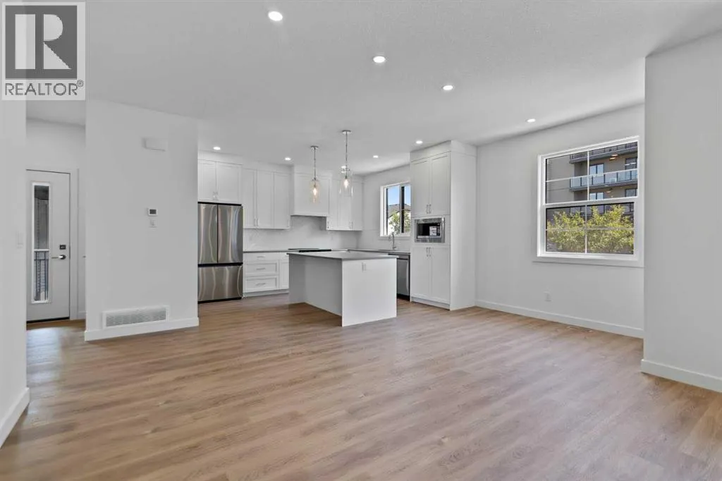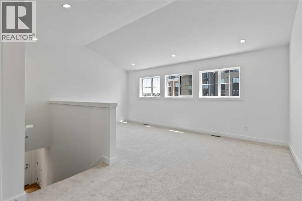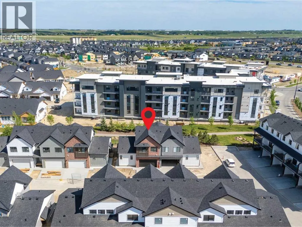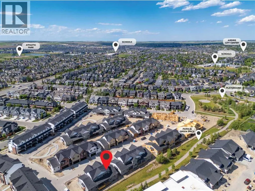 Welcome to luxury and convenience in the heart of Airdrieâs award-winning community of Cooperâs Crossing. This beautifully crafted corner-unit duplex townhome is one-of-a-kindâfeaturing the highly sought-after primary bedroom on the main floor, perfectly blending everyday comfort with smart design.Step inside to discover a bright, functional main level that boasts: A stylish gourmet kitchen with an oversized island and stainless steel appliances. A cozy family room designed for gathering and relaxation.nYour private main-floor retreat with vaulted ceilings and a spa-inspired ensuiteUpstairs, a sun-soaked bonus room offers the perfect space to unwind, work from home, or enjoy family time. Just off the bonus area, youâll find two additional bedrooms, a full bathroom, and a convenient upstairs laundry space (note: no in-unit washer and dryer).Enjoy the added luxury of 9-foot ceilings on both the main floor and the basement, creating a spacious and airy atmosphere throughout. The basement also includes two bathroom rough-ins, offering the opportunity to design a future layout with two additional bedrooms.Summer evenings are best spent on your covered west-facing balconyâwith a gas line for your BBQ and peaceful views of landscaped green space.Additional highlights include:Front Double attached garageModern, contemporary exteriors with fully landscaped yardsEnjoy a true Lock & Leave lifestyleâwith condo fees of just $347/month that cover exterior home insurance, snow removal, lawn care, landscaping, irrigation, reserve fund contributions, and even city garbage and waste removalAnd hereâs what makes this home truly special: This is the only duplex unit available among the triplex townhomes in the communityâan exclusive opportunity you wonât find again.No stress. No fuss. Just effortless, carefree living in one of Airdrieâs most desirable neighborhoods.Book your exclusive tour today. (id:27476)