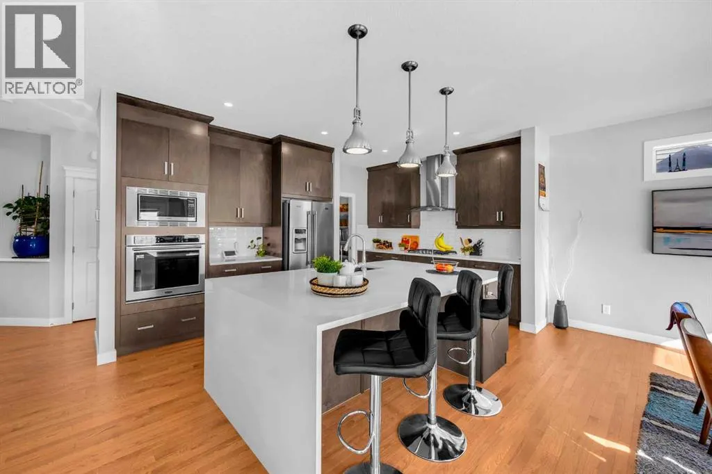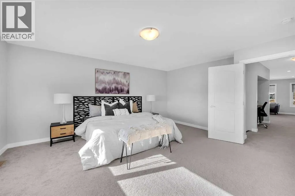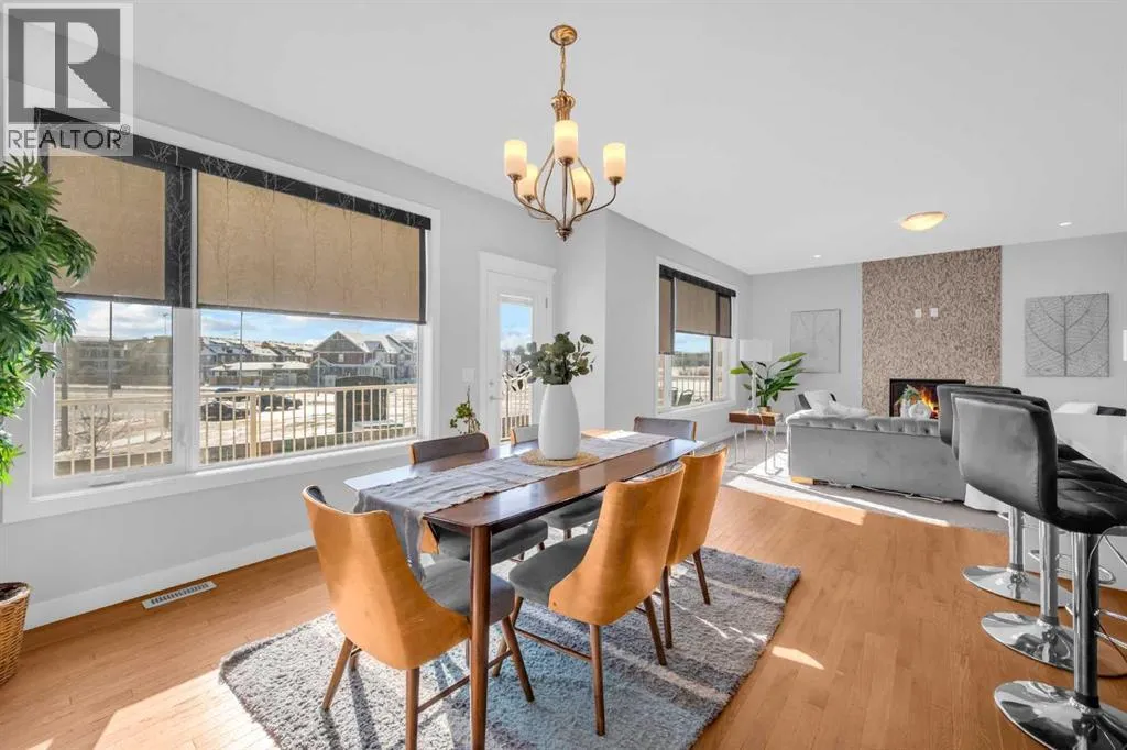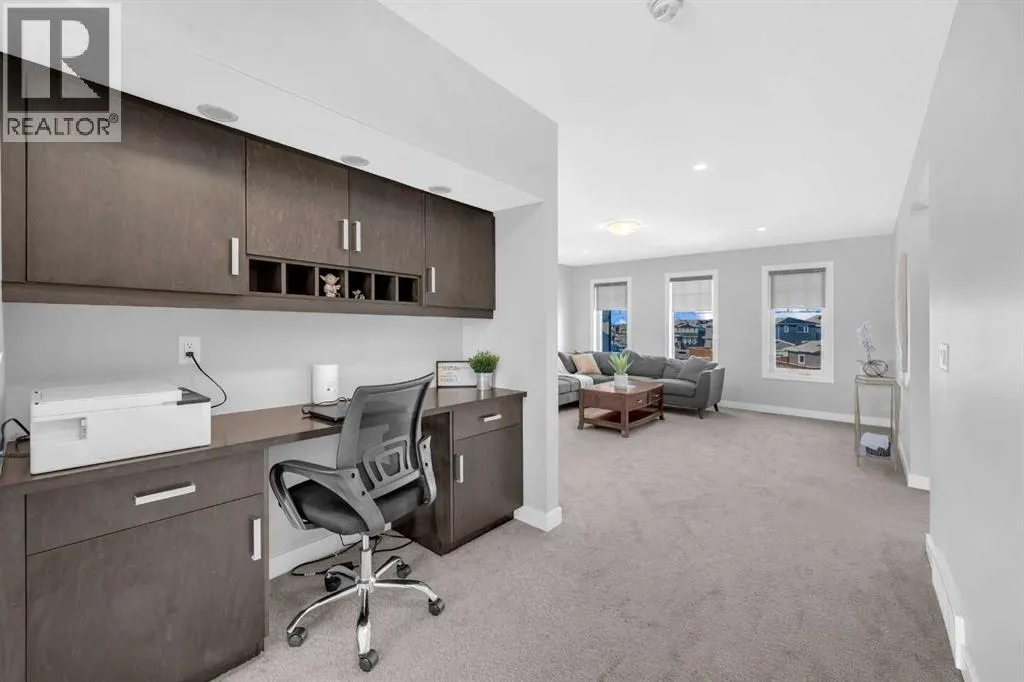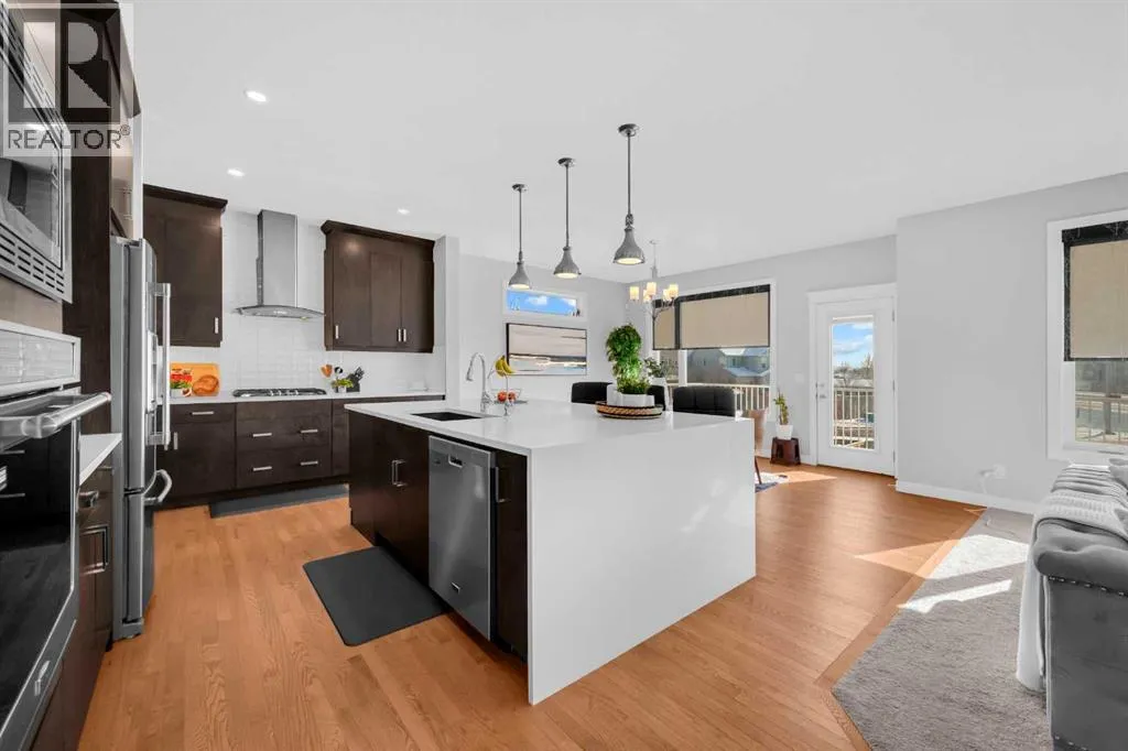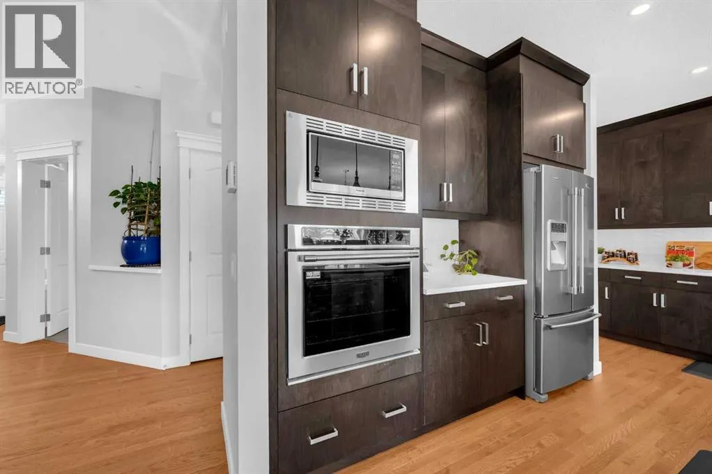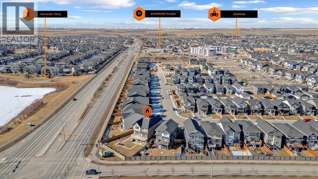 Welcome to this exceptional executive residence located in the prestigious, award-winning community of Coopers Crossing in Airdrie. Perfectly positioned on a massive 7,000+ sq ft pie-shaped lot, this fully developed walk-out home offers over 3,700 sq ft of refined living space, combining luxury finishes, thoughtful upgrades, and outstanding everyday convenience. One of the standout advantages of this property is its exceptional connectivityâproviding quick and easy access to Calgary, making it ideal for commuters and professionals. Families will appreciate the three nearby schools and the convenience of a shopping center just minutes away, offering a grocery store, daycare, Shoppers Drug Mart, medical and dental clinics, and moreâeverything you need within close reach. The main floor is designed for both elegance and functionality, featuring a rare main-level bedroom and full bathroom, ideal for guests, extended family, or multigenerational living. At the heart of the home is the chef-inspired gourmet kitchen, showcasing high-end appliances, upgraded cabinetry, quartz countertops, and a striking waterfall islandâperfect for entertaining or daily family life. A built-in workstation on first floor provides a dedicated space for working or studying from home, while custom roller shades add style and privacy throughout.Upstairs, youâll find a generous bonus room, perfect for family movie nights or a kidsâ retreat, along with well-appointed bedrooms and a spacious primary suite designed as a true sanctuary. The primary suite is a luxurious escape, offering expansive space, serene views, and a well-appointed walk-in closet. The ensuite bath feels like a private spa, complete with upscale finishes and a thoughtfully designed layout for ultimate relaxation. The fully finished walk-out basement offers impressive 9-foot ceilings and flexible living, making it ideal for extended family or ad ditional income opportunities (a secondary suite would be subject to approval/ permitting by the city). This home is loaded with over $100,000 in premium upgrades, including central air conditioning, water softener, reverse osmosis water system, and 15 solar panels, delivering enhanced comfort, efficiency, and long-term savingsOffering luxury, space, sustainability, and unbeatable convenience, this remarkable home delivers a lifestyle that truly stands out in todayâs market.A rare opportunity in Coopers Crossingâbook your private showing today. (id:27476)
