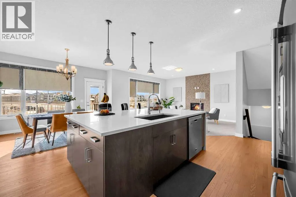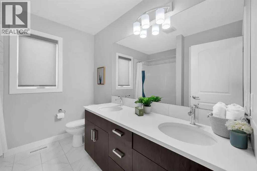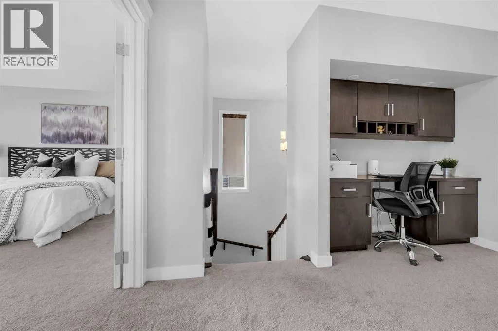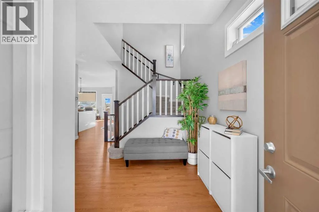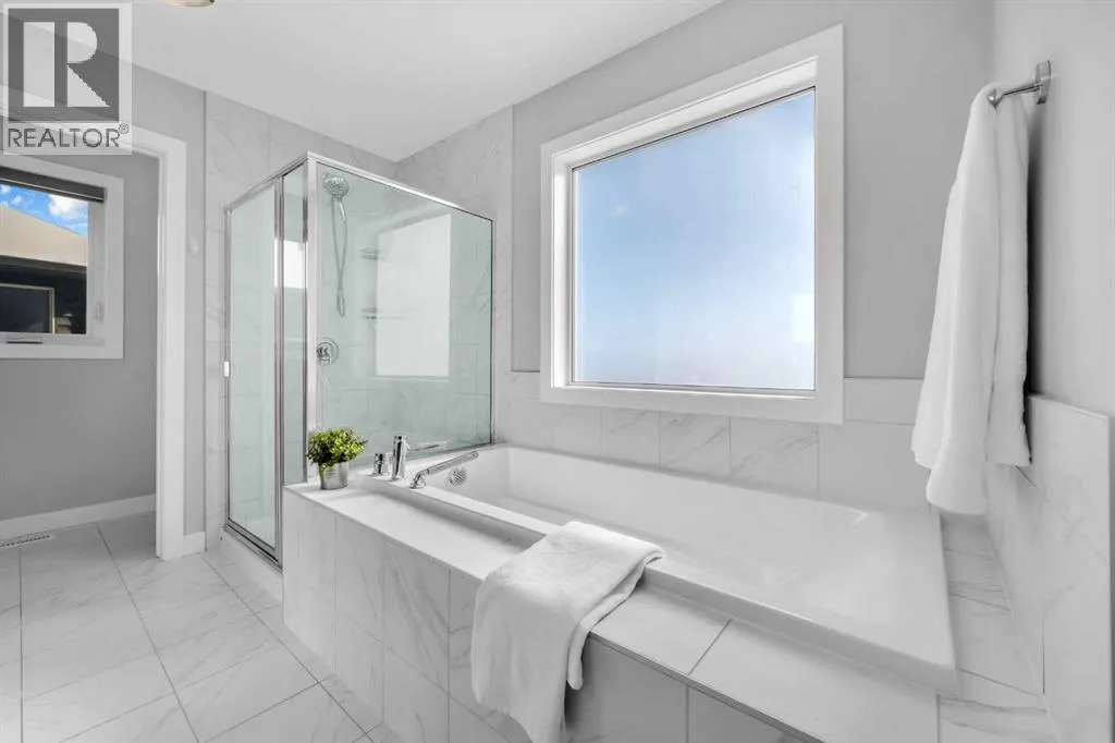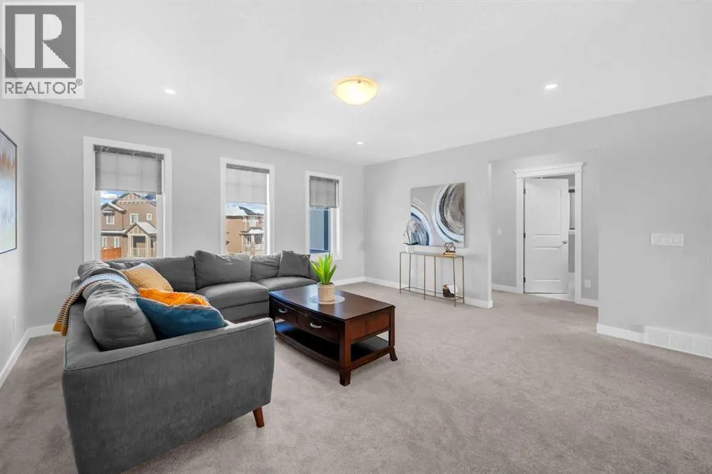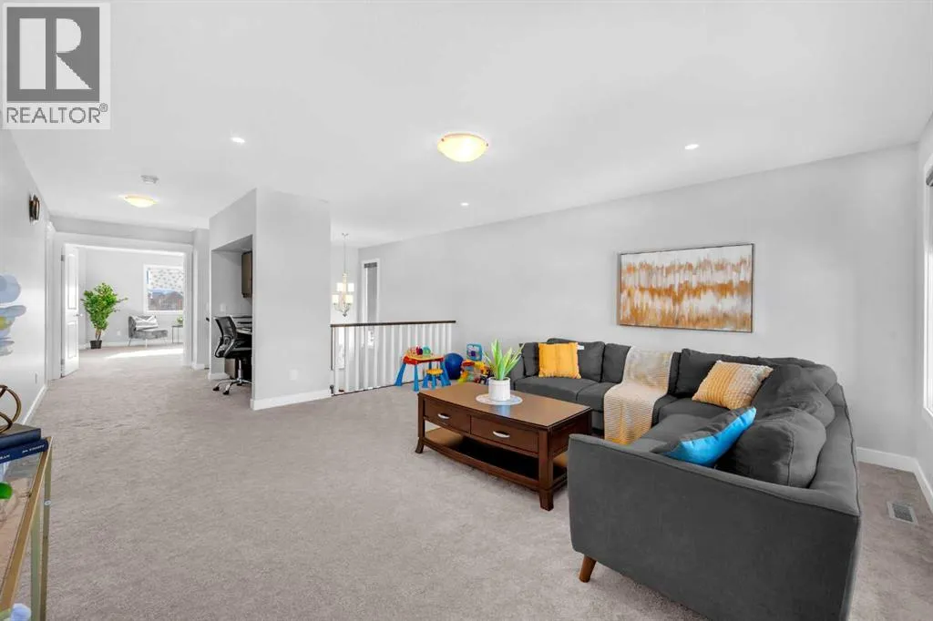 Welcome to this exceptional executive residence located in the prestigious, award-winning community of Coopers Crossing in Airdrie. Perfectly positioned on a massive 7,000+ sq ft pie-shaped lot, this fully developed walk-out home offers over 3,700 sq ft of refined living space, combining luxury finishes, thoughtful upgrades, and outstanding everyday convenience. One of the standout advantages of this property is its exceptional connectivityâproviding quick and easy access to Calgary, making it ideal for commuters and professionals. Families will appreciate the three nearby schools and the convenience of a shopping center just minutes away, offering a grocery store, daycare, Shoppers Drug Mart, medical and dental clinics, and moreâeverything you need within close reach. The main floor is designed for both elegance and functionality, featuring a rare main-level bedroom and full bathroom, ideal for guests, extended family, or multigenerational living. At the heart of the home is the chef-inspired gourmet kitchen, showcasing high-end appliances, upgraded cabinetry, quartz countertops, and a striking waterfall islandâperfect for entertaining or daily family life. A built-in workstation on first floor provides a dedicated space for working or studying from home, while custom roller shades add style and privacy throughout.Upstairs, youâll find a generous bonus room, perfect for family movie nights or a kidsâ retreat, along with well-appointed bedrooms and a spacious primary suite designed as a true sanctuary. The primary suite is a luxurious escape, offering expansive space, serene views, and a well-appointed walk-in closet. The ensuite bath feels like a private spa, complete with upscale finishes and a thoughtfully designed layout for ultimate relaxation. The fully finished walk-out basement offers impressive 9-foot ceilings and flexible living, making it ideal for extended family or ad ditional income opportunities (a secondary suite would be subject to approval/ permitting by the city). This home is loaded with over $100,000 in premium upgrades, including central air conditioning, water softener, reverse osmosis water system, and 15 solar panels, delivering enhanced comfort, efficiency, and long-term savingsOffering luxury, space, sustainability, and unbeatable convenience, this remarkable home delivers a lifestyle that truly stands out in todayâs market.A rare opportunity in Coopers Crossingâbook your private showing today. (id:27476)