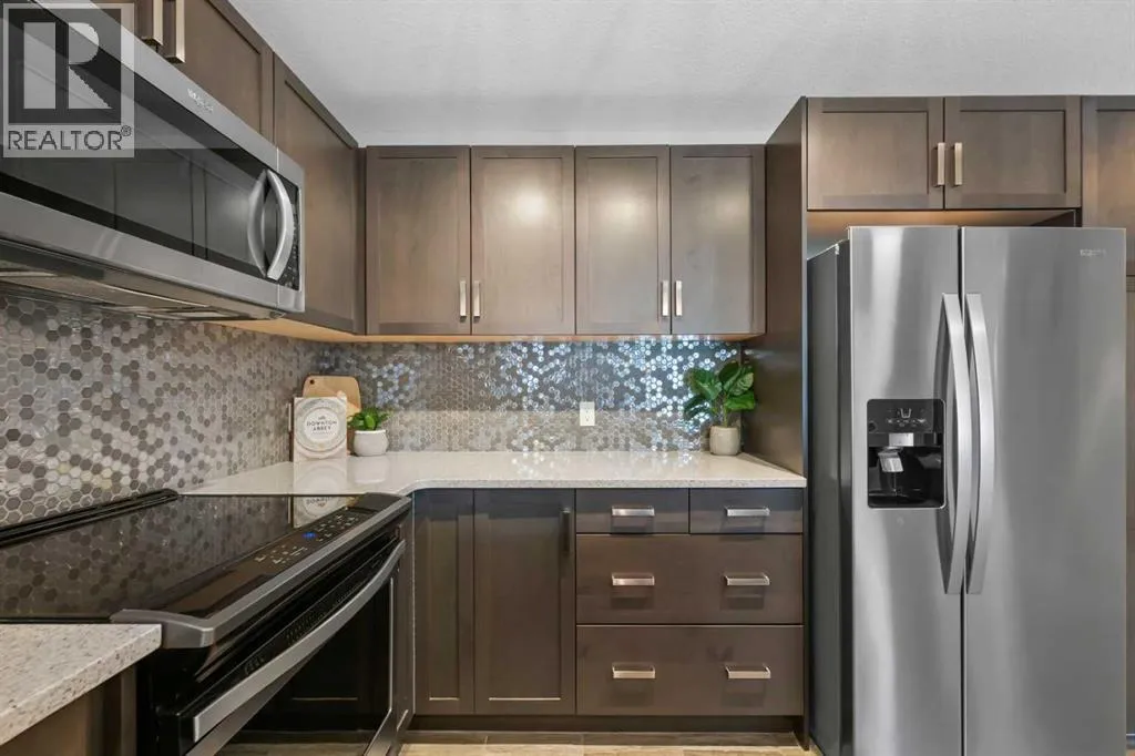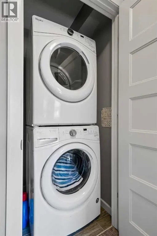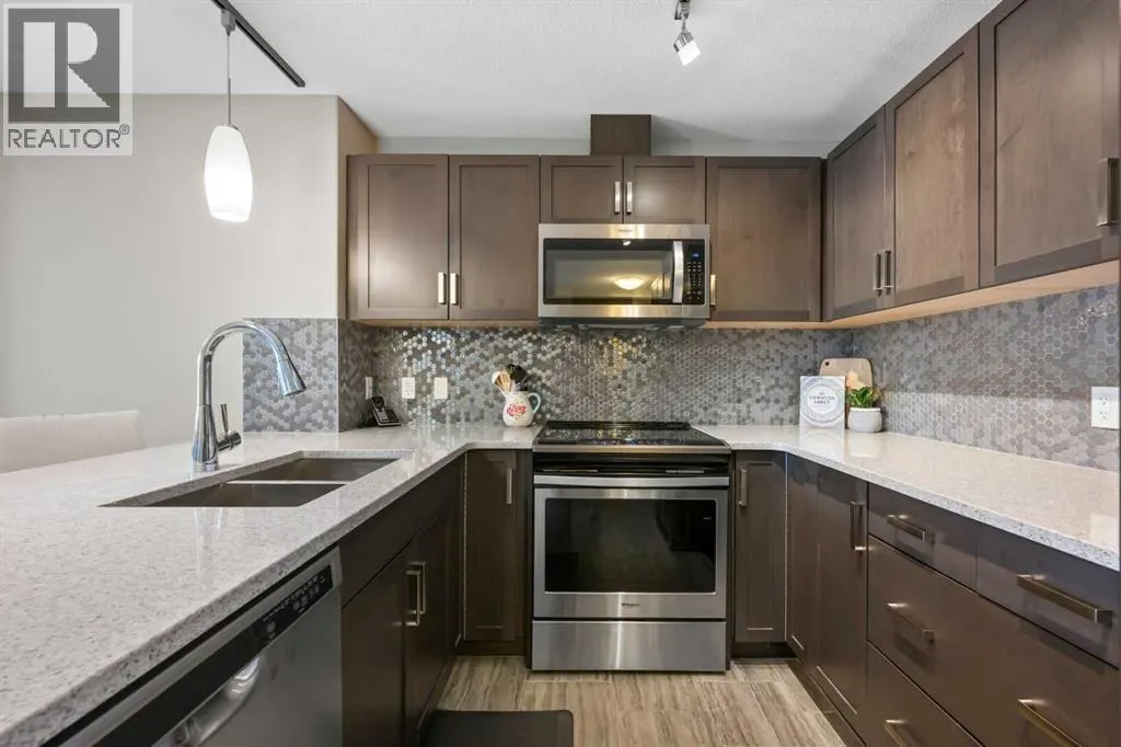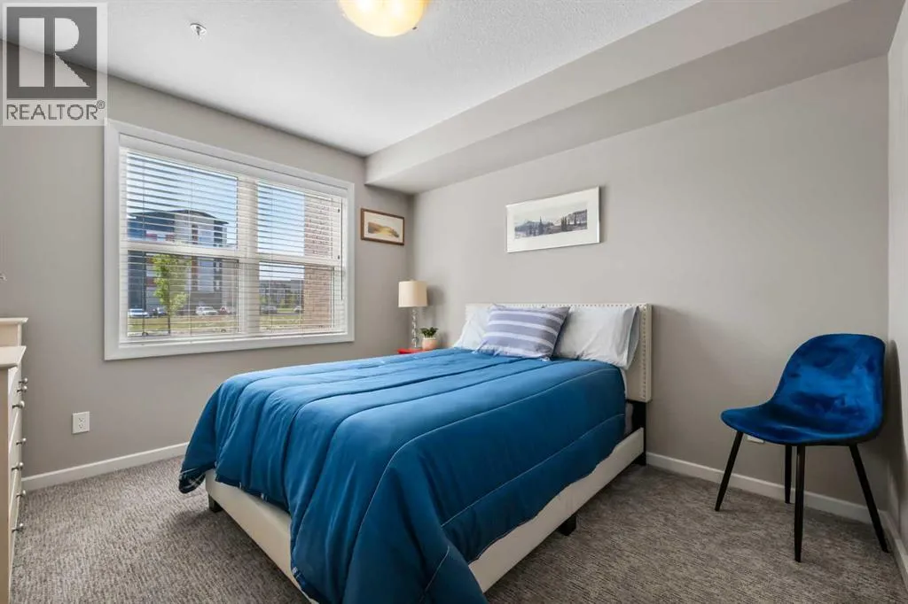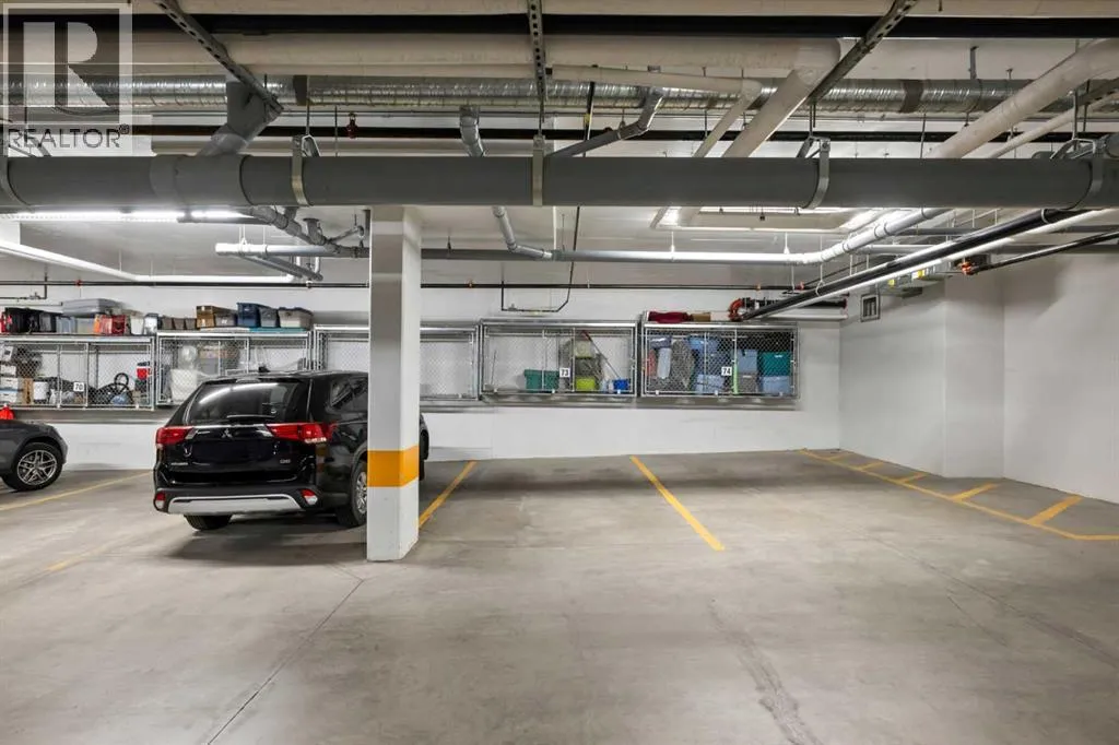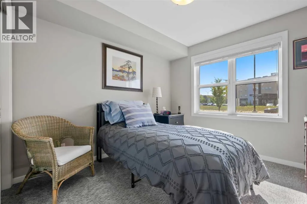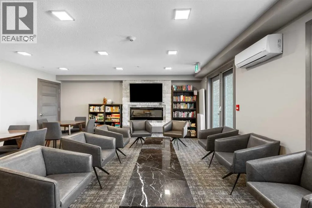 Welcome to The Chateaux! Airdrie's premier 55+ condo building in the wonderful community of Kings Heights known for its sophistication, exceptional pride of ownership and unbeatable access to nearby amenities. Upon entering this unit, you'll be impressed by the abundance of natural light, enhanced by its south-facing exposure. You're greeted by beautiful tile flooring that leads into a welcoming front entrance, where you'll find a spacious coat closet with built-in shelves, perfect for storing coats, keys and shoes. To your right is the kitchen, you will love not only the generous counter space but also the ample cabinetry this layout offers. The kitchen features granite countertops, a large sink, a lazy Susan in the corner cabinet, a garburator and a counter overhang for bar stool seating, ideal for casual meals. Stainless steel appliances and a well-appointed pantry with pull-out drawers complete this thoughtfully designed space. Moving into the living room, enjoy a spacious layout complemented by a beautiful custom California Closets media centre that is perfect for your TV, artwork and storage needs. Stay cool in the summer with a wall-mounted A/C UNIT! Your southwest-facing balcony offers year-round afternoon sun, making it the perfect place to enjoy your morning coffee, tea or an evening drink. This balcony was upgraded at the time of construction with glass panels and a gate, offering convenient direct access to the landscaped common areas, especially great for pet owners. The primary bedroom is a dream, with a large south-facing window and a spacious walk-through closet that leads into your ensuite bathroom. The ensuite features a walk-in shower with a built-in seat and elegant glass doors. The second bedroom is impressively sized and bright with custom built-in California Closet organizers that provide exceptional storage and organization. A second full bathroom is located just outside this room, complete with a beautiful vanity and a large bathtub. In-suit e laundry is neatly tucked into a dedicated closet with room for storage and laundry supplies. This apartment also features a versatile den to the left of the front door that is ideal for a home office, additional storage or exercise space. For parking, enjoy the convenience of a titled underground stall located just steps from the elevator. In front of your stall, youâll find a large, secure storage locker. Plus, thereâs ample outdoor visitor parking for your guests. The Chateaux features a beautifully landscaped courtyard with a gas fireplace, and an amenity room available for private bookings where residents regularly gather here for social events and happy hours. There's also a secure underground workshop for woodworking enthusiasts. Located in Kings Heights, youâre within walking distance to Save-On-Food, Shoppers Drug Mart, banks, salons, restaurants and more meeting all your grocery, shopping and healthcare needs. Call for a private viewing today! (id:27476)