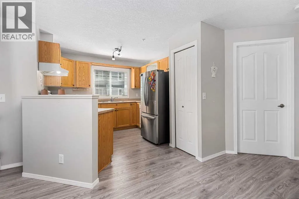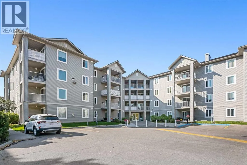 Welcome to the heart of Downtown Airdrie!Whether you are a first-time buyer, downsizing, or looking for a strong rental investment, this condo is an excellent choice.Location:Within walking distance to downtown Airdrie, schools, parks, playgrounds, quality restaurants, and a shopping plaza just steps away. Your designated parking stall (#2) is located directly beneath the unit window for maximum convenience.The Apartment:This spacious unit offers 908 sq. ft. of living space with 2 bedrooms, 2 full bathrooms, and a balcony with open views. In 2024, the condominium complex underwent upgrades with all windows replaced by new, energy-efficient vinyl units, adding both value and comfort.Inside, the open-concept layout provides excellent sightlines throughout the home. The kitchen offers abundant cabinetry, laminate countertops, a double sink with a large window, and quality appliances. The living room feels both bright and cozy, with plenty of natural light from the balcony doors.The primary bedroom features a large closet and a private 4-piece ensuite, while the second bedroom is generously sized, with its own closet and access to another 4-piece bathroom.This well-maintained apartment combines comfort, convenience, and location â a must-see opportunity in Downtown Airdrie. (id:27476)