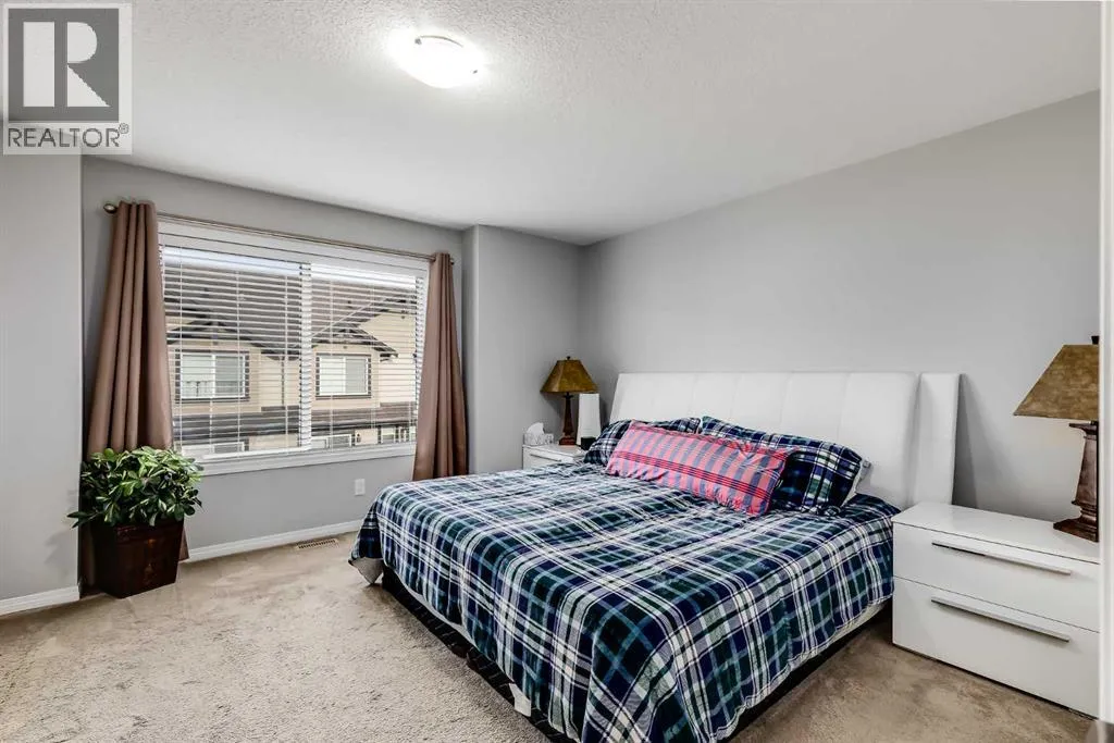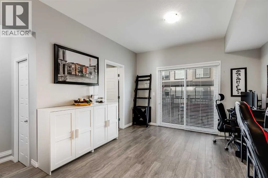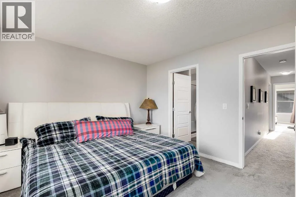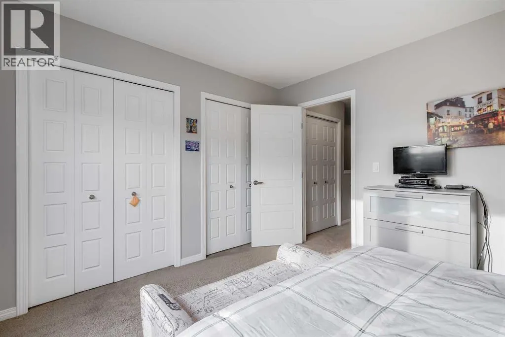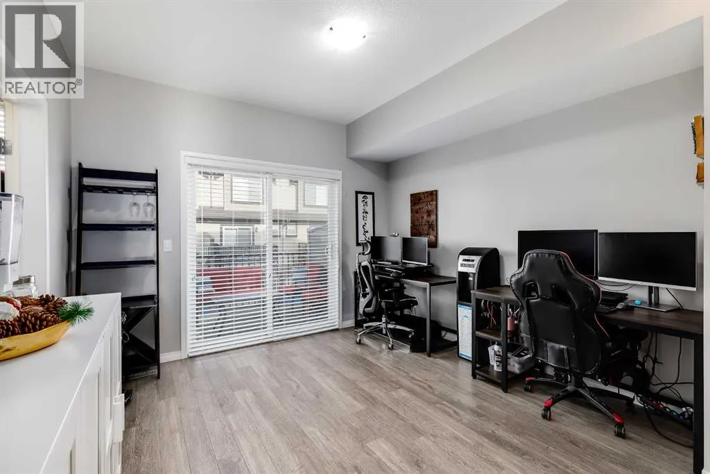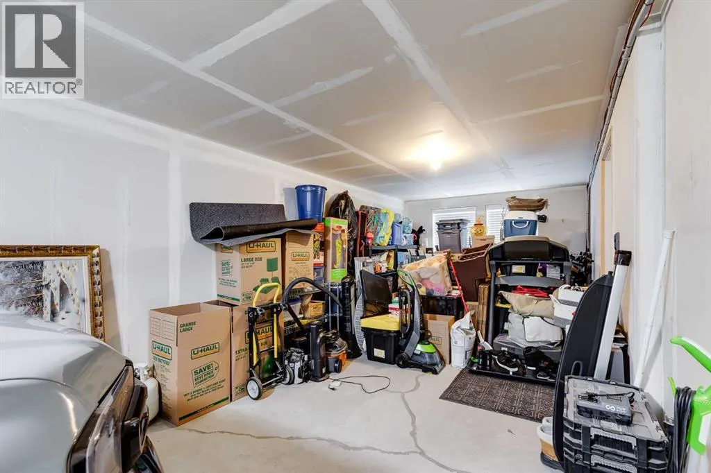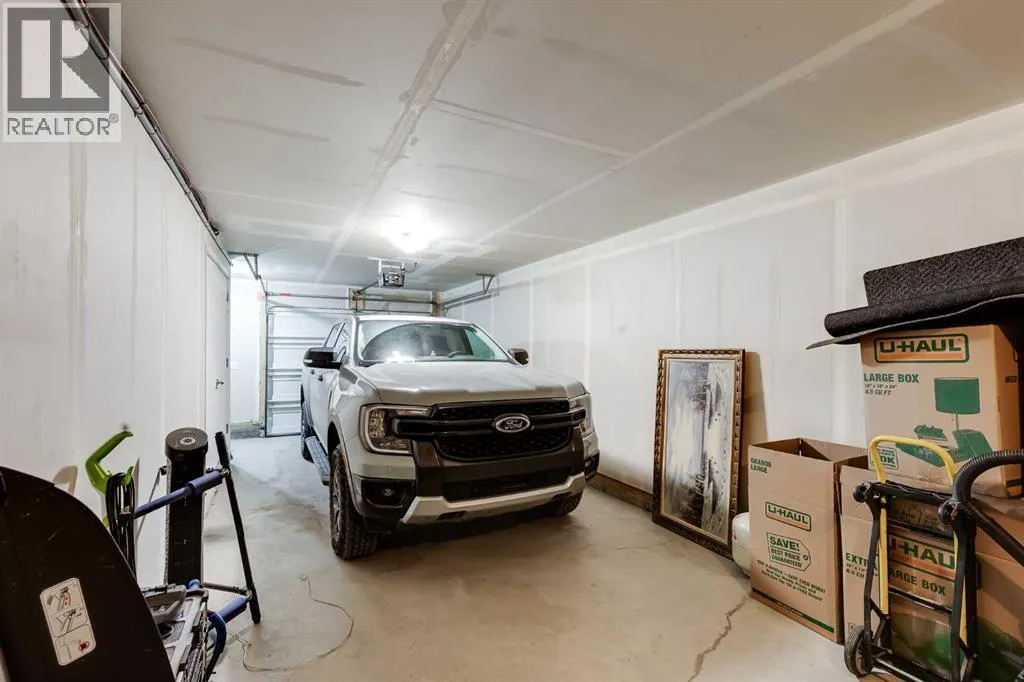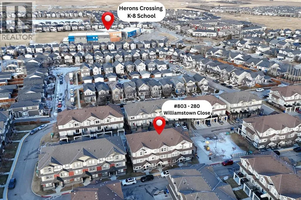 Bright and open 2-bedroom townhome in the community of Williamstown. An excellent value with condo fees that include the Airdrie monthly water and sewer bill. Before you enter you'll notice the playground right beside the home, and the visitor parking stalls right in front, making it ideal for guests. The entry level offers a 40' Long OVERSIZED DOUBLE GARAGE, plus driveway, allowing parking for up to 3 vehicles, plenty of storage, and a rare additional access door from the garage to the back, making taking out the garbage very easy! The open-concept main floor is complete with 9-foot ceilings, upgraded cabinetry, quartz countertops, stainless steel appliances, and an impressive 10 FOOT LONG KITCHEN ISLAND making for lots of counter space. Central AIR CONDITIONING makes this home comfortable all year round. The dining area is large enough for a big table, and with the balcony right here, it makes for the perfect space for entertaining. The living room features an electric fireplace and A main floor half-bath completes this level. Upstairs, the third floor features a large primary suite, including a walk-in closet and a 4-piece en-suite with Double Sinks. The second bedroom is also a great size and features double closets. The upstairs is complete with the main 4-piece bathroom, and UPPER LAUNDRY. In the community of Williamstown you can enjoy the environmental reserves thats just steps away with wetlands, walking paths, playgrounds. You're also just a short walk from Herons Crossing K-8 School. Book your showing today! (id:27476)