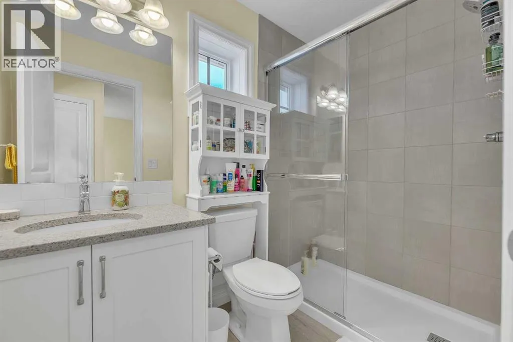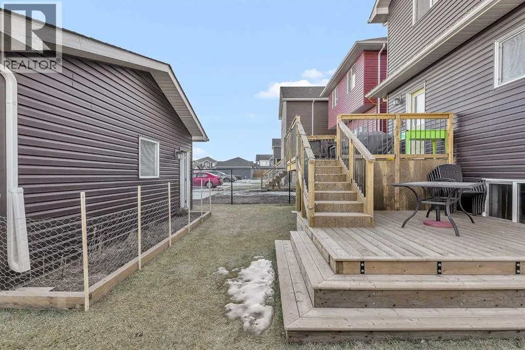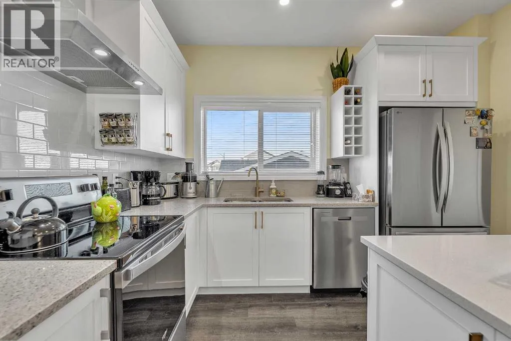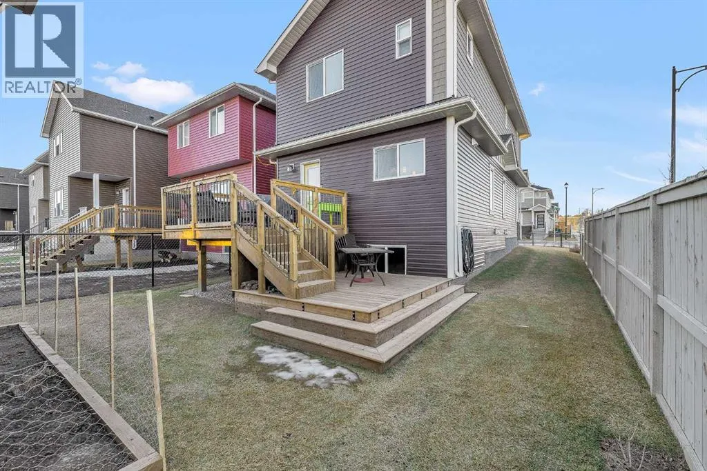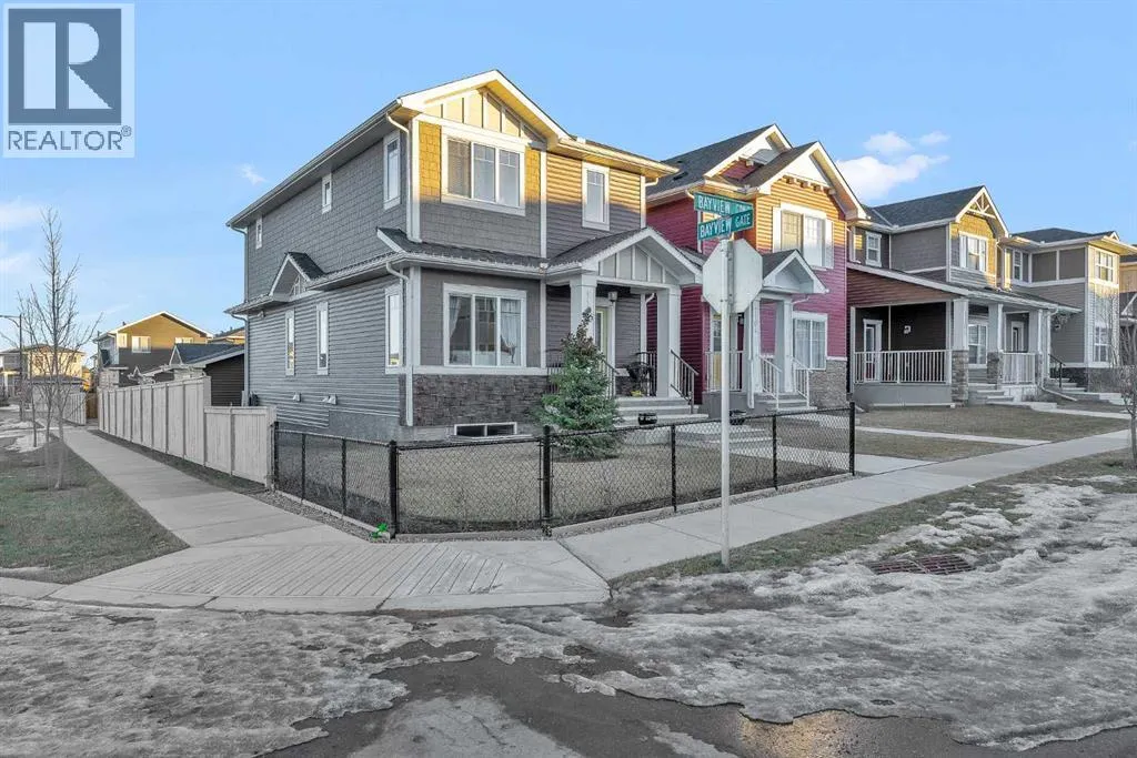 Have you been waiting for the right home in SW Airdrie? This is the one.1100 Bayview Gardens SW sits on a sunny corner lot with extra windows (per architectural controls), next to a massive park in the highly desirable Bayview community, offering the perfect blend of lifestyle, convenience, and comfort with parks, pathways, and everyday amenities nearby.Step inside and enjoy the bright, open feel with 9â ceilings and a stunning 18â open-to-above feature that makes the home feel airy and welcoming. The kitchen is a showstopper with white Shaker cabinets, brass hardware, quartz countertops throughout, a sparkle-white quartz island upgrade, plus a $3,000 LG fridge upgrade and a modern chimney-style hood fan. The layout flows beautifully, making it easy to host friends, work from home, or simply relax at the end of the day.Upstairs features a spacious primary retreat with a walk-in closet and an ensuite soaker tub, plus two additional bedrooms and a full bathroom, perfect for family and guests. Stay comfortable year-round with central air conditioning. An unfinished basement provides a clean slate for a future rec room, gym, or additional bedrooms with roughed-in plumbing already in place.Outside, enjoy summer evenings on the large, two-tier pressure-treated deck, with a gas line for BBQ plus a gas line to the garage for future heating options. The yard is fully finished with fresh sod, garden beds, cotoneaster shrub bed, and the property is fenced on both sides. Youâll also love the bonus gravelled 3rd parking spot beside the garage, perfect for guests or a work vehicle. Additional upgrades include: a double detached garage with 9â ceilings, extra-wide Victorian-style casing and baseboards, and an extra-wide front concrete step and sidewalk.Located minutes from shopping, dining, schools, commuter routes, and everyday amenities, this is one of the best-value homes in SW Airdrie with this level of upgrades, lot size, and garage setup. Book your private showing wi th your favourite REALTOR® today! (id:27476)