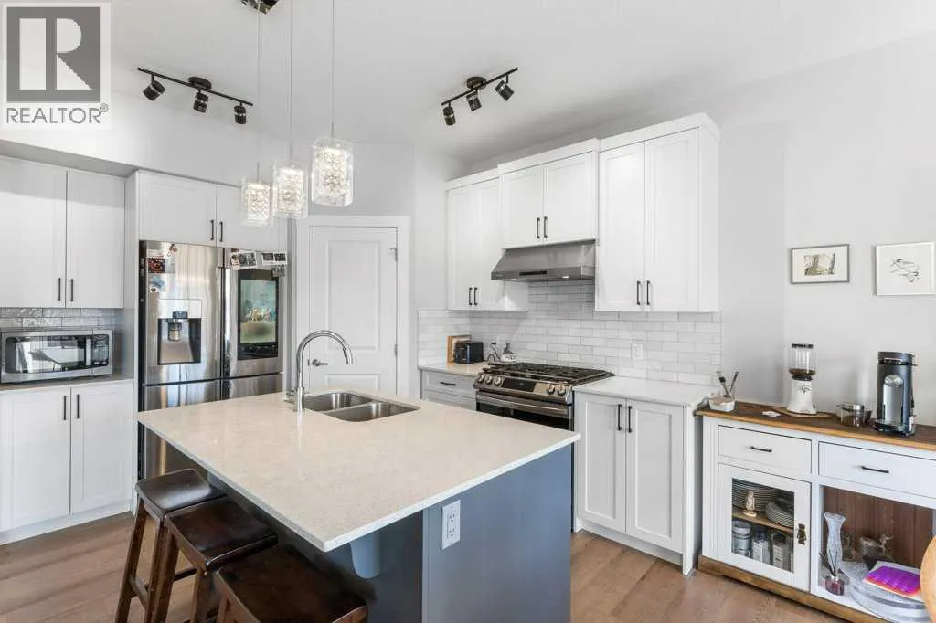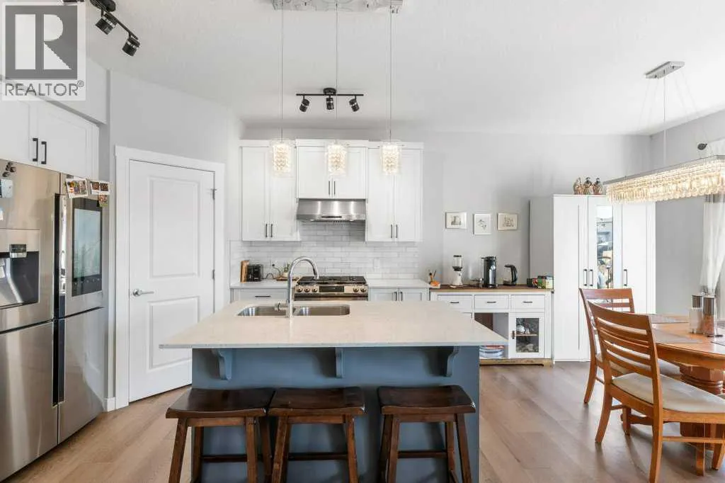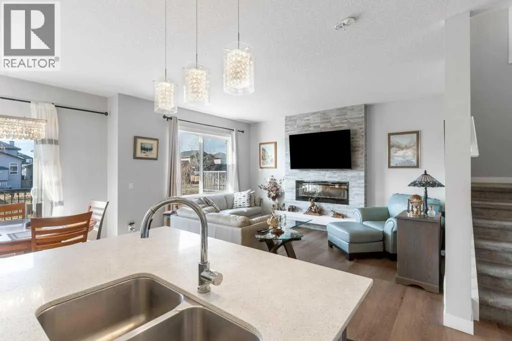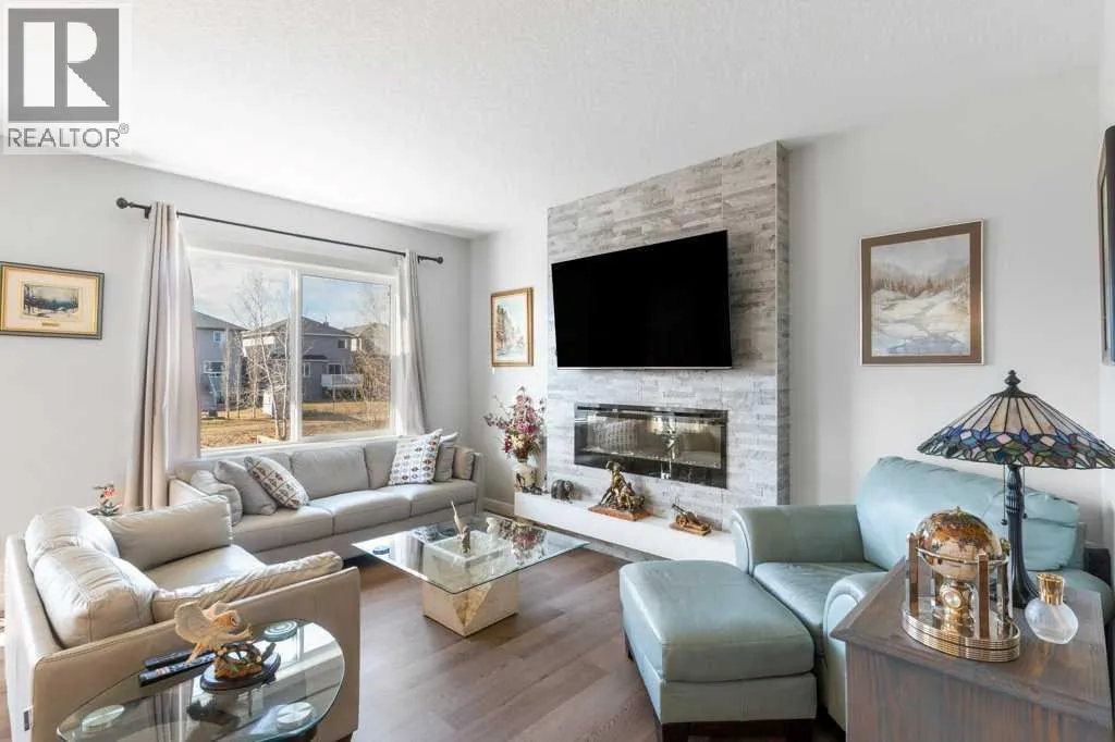 Why wait for new construction? This home offers the fresh, modern feel of newâwithout the delays, dust, or dirt. Fully landscaped, mostly fenced with window coverings for immediate enjoyment. Offering 3-bedroom, 2.5-baths located on a dead end road in the desirable Midtown community in Airdrie. Perfectly situated to easily access a variety of amenities, diverse parks, green spaces, and picturesque walking trails, with a tranquil POND NEARBY. What sets it apart from others: fronts a green space and BACKS a beautiful GREENBELT & STREAM allowing you to balance City life while taking in nature right off your SOUTH FACING BACK DECK. Inside, you'll find 9' ceilings, high-end SMART APPLIANCES, including a GAS STOVE with an air fryer. The kitchen is complete with stainless steel appliances, a CENTRAL ISLAND and an OVERSIZED CORNER PANTRY to accommodate your Costco haul. The laundry is currently located in the basement but there is optional hook-ups on the upper level should that be a buyers preference. The inviting living room features a stunning STONE ACCENT WALL with an electric fireplace and hearth, creating the coziest atmosphere. Upstairs, you'll be greeted by a central BONUS/FAMILY ROOM which allows for a winged bedroom design for additional privacy. The spacious primary bedroom's ensuite has dual sinks, a CENTRAL VANITY, and a large walk-in closet. The two additional bedrooms are generously sized, each with its own WALK-IN-CLOSETS. PROJECTOR & SCREEN (negotiable)! Several rooms/closets have auto-sensor lights for your added convenience. The SOUTH FACING back deck is complete with vinyl capping, offering a great outdoor space to enjoy the sunshine, and has stairs to lead you down to the fully accessible yard with garden boxes for you to enjoy. The basement is unspoiled, with high ceilings and awaits your development ideas. Don't miss your chance to own this beautiful home in this fantastic and convenient location in Airdrie. (id:27476)