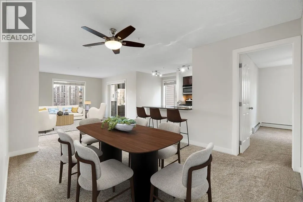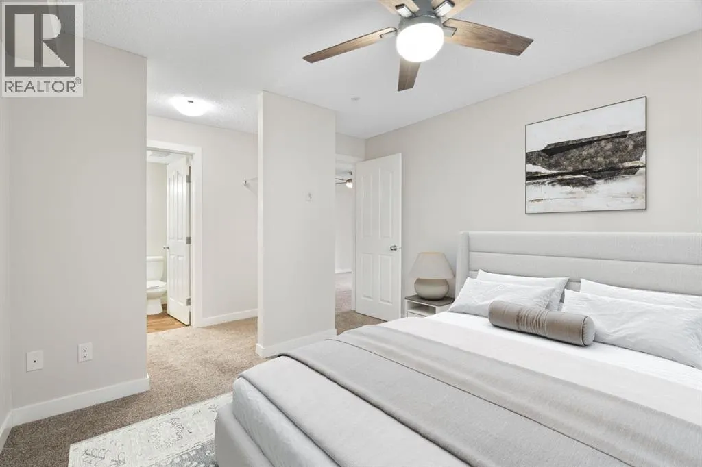 Welcome home to this perfectly situated, bright and sunny, east facing, two bedroom, two bathroom, corner unit on the quiet side of the complex! This one also has a secure, heated, titled underground parking stall! You won't want to miss this one... the foyer (big enough to have in suite storage and/or a home office space) welcomes you home at the end of the day. Step through into this large, open, living space with treed, peaceful, east facing views. The kitchen, with breakfast bar, is the perfect spot for prepping dinner with friends, or hanging out with loved ones on a lazy Sunday morning. There's room for a dining table too, if you're wanting something a bit more formal. The layout is amazing, with the two bedrooms on either side of the floorplan. The generous primary bedroom has a walkthrough closet and 3pc ensuite. There's a second full bathroom and bedroom, as well. The huge, covered balcony is perfect for BBQ season, or for a lounge in the sun, whenever summer returns. Park in your titled, underground spot and walk to all this area has to offer. You're steps from the shops, restaurants, and coffee bars, a few more steps from green spaces and the neighbourhood parks! This one has been lovingly cared for and shows like new! Call your favourite realtor to schedule your showing today! (id:27476)