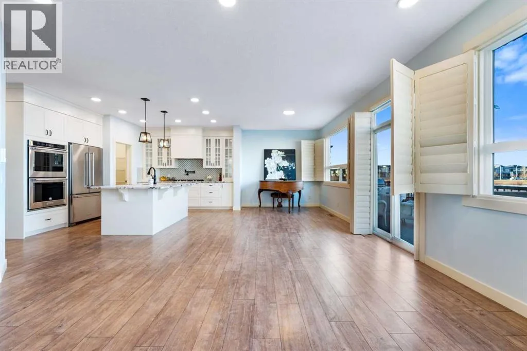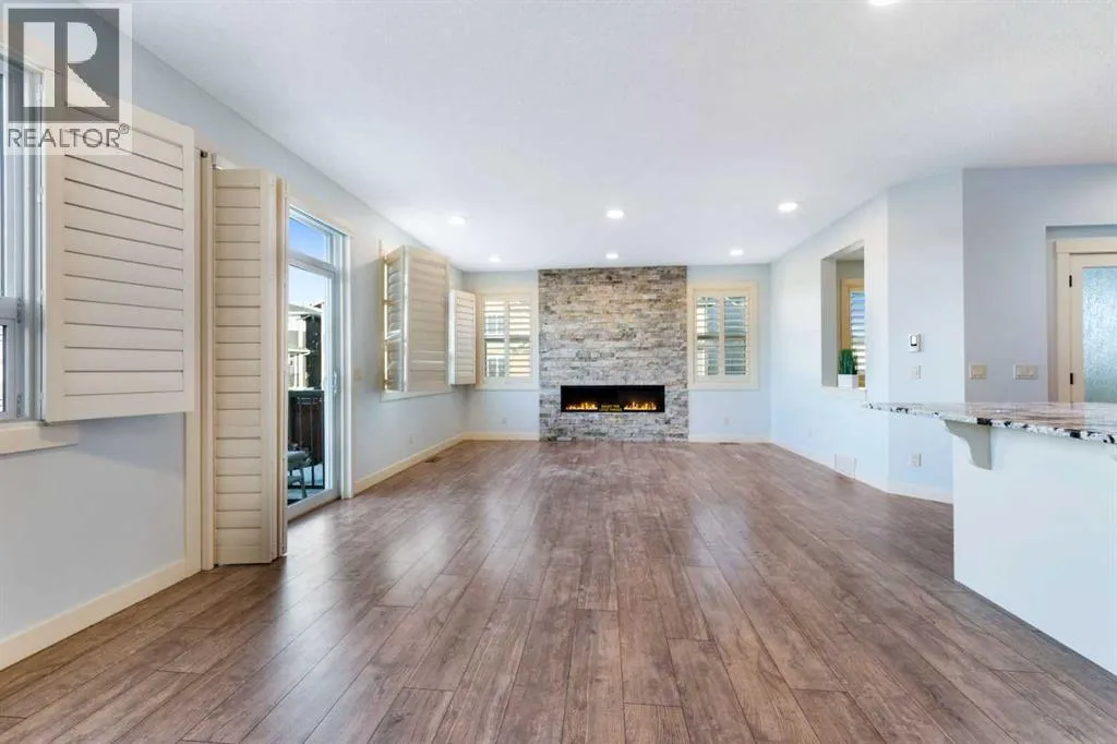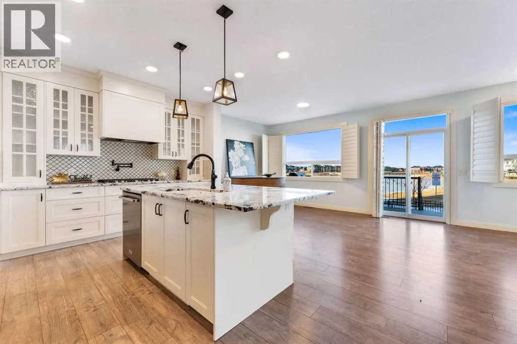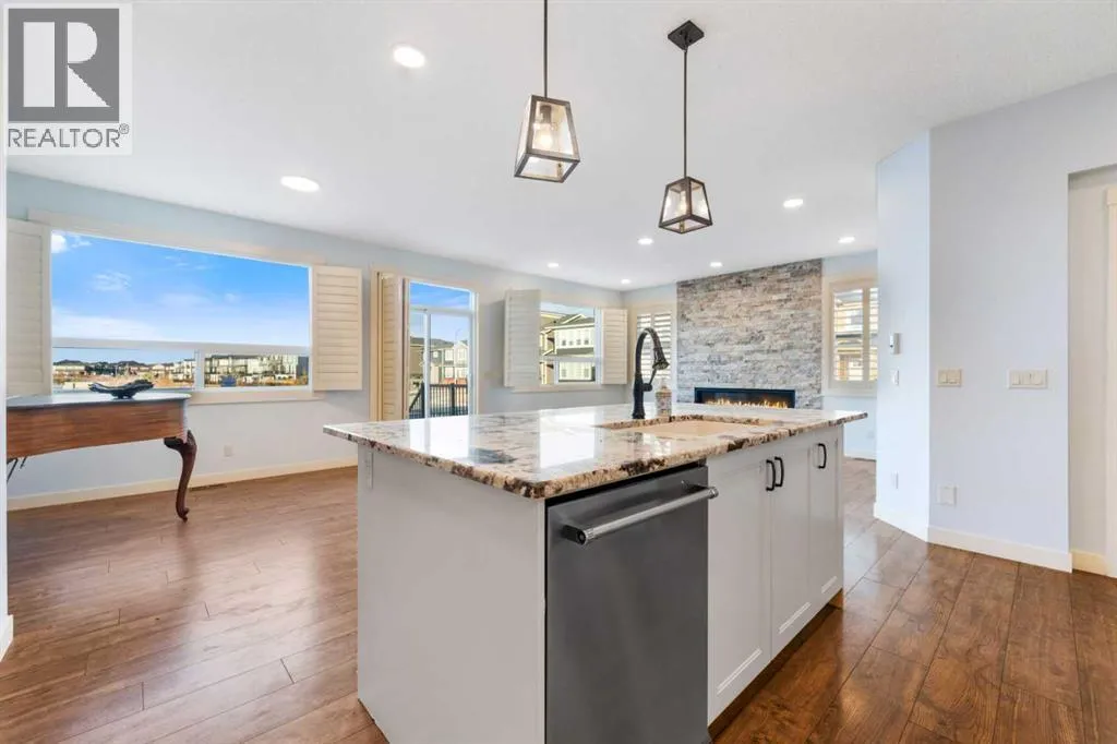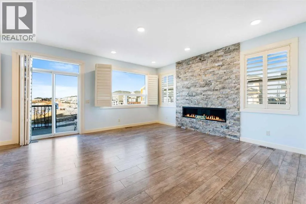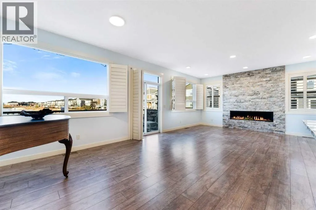 NEW IMPROVED PRICE!! OPEN HOUSE FEB 14 & FEB 15, SAT & SUN, 1-3PM Welcome to this beautifully upgraded corner-lot family home in the heart of Midtown, Airdrie, backing onto the pond and walking paths with park-facing views that offer calming scenery and exceptional privacy. This home provides over 2,500 sq ft of thoughtfully designed living space above grade, plus an unfinished basement ready for future development. Inside, youâll appreciate 9-foot ceilings throughout, a vaulted upper-level living area, and an expanded back wall that enhances natural light and usable space. The main floor features a functional open-concept layout with a spacious kitchen complete with double wall ovens, a pot filler above the range, a dedicated pantry fridge, and seamless flow into the dining and living areas anchored by an upgraded stone fireplace featuring one of the largest fireplace sizes available. Upstairs offers an ideal family layout with a generous primary retreat and spa-inspired ensuite with the largest tub option, additional well-sized bedrooms, a kidsâ wet-room bathroom with three sinks, shower, and tub, convenient upper-level laundry, and excellent built-in storage. The outdoor space has seen over $30,000 invested, including a stone patio with fire pit, low-maintenance deck, and natural gas hookup, all perfectly positioned to enjoy pond views and the surrounding pathways. Practical upgrades include lifetime-warranty shutters on every window, a water softener system, a custom mudroom with cleaning closet and coat hooks, and an extra-long, extra-wide garage ideal for trucks, with natural gas and power roughed in for a heater, hose bibs, and security wiring. Located in the vibrant Midtown community, this home is steps from walking paths, parks, and green spaces, close to schools, sh opping, restaurants, and everyday amenities, with easy access to major routes, making it a rare opportunity to own a premium, park-front, pond-backing home in one of Airdrieâs most desirable neighborhoods. (id:27476)