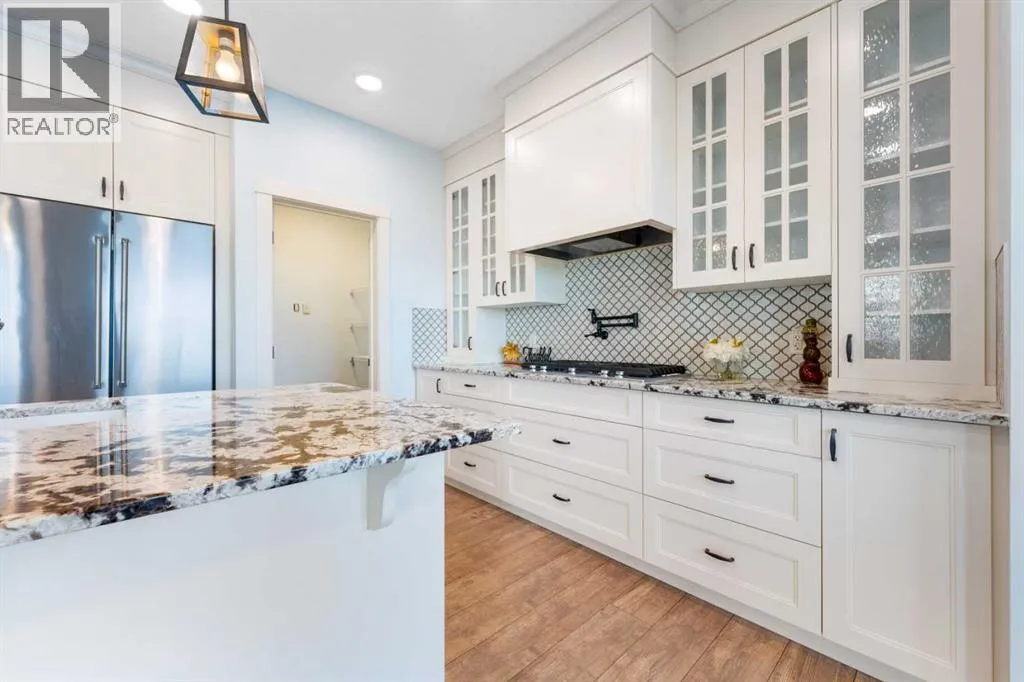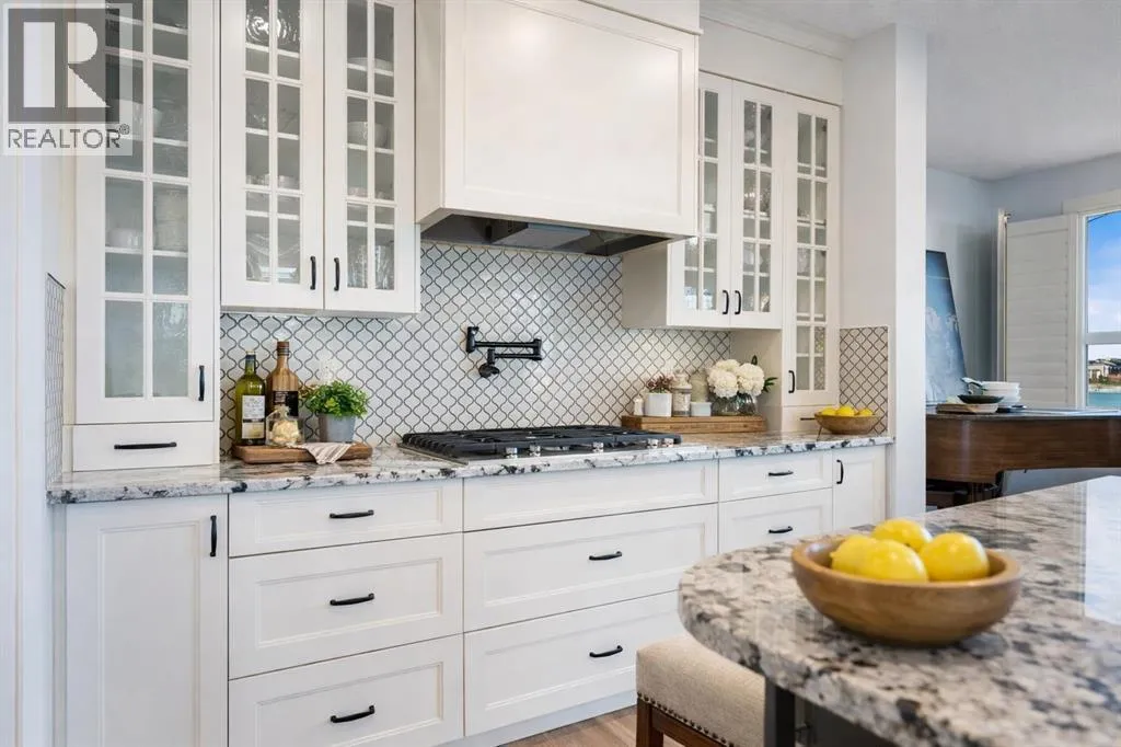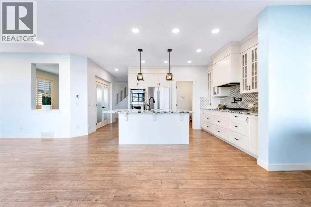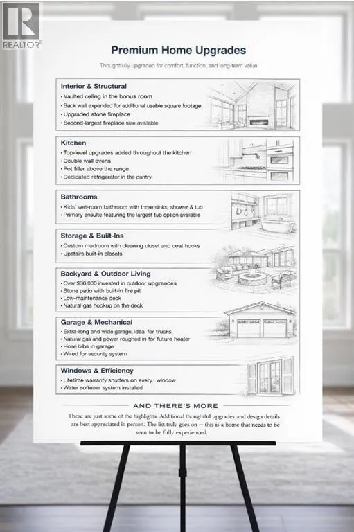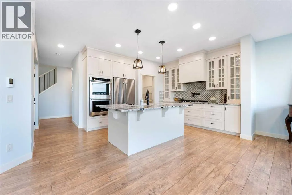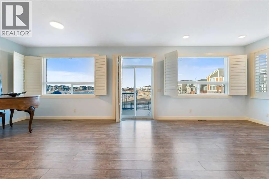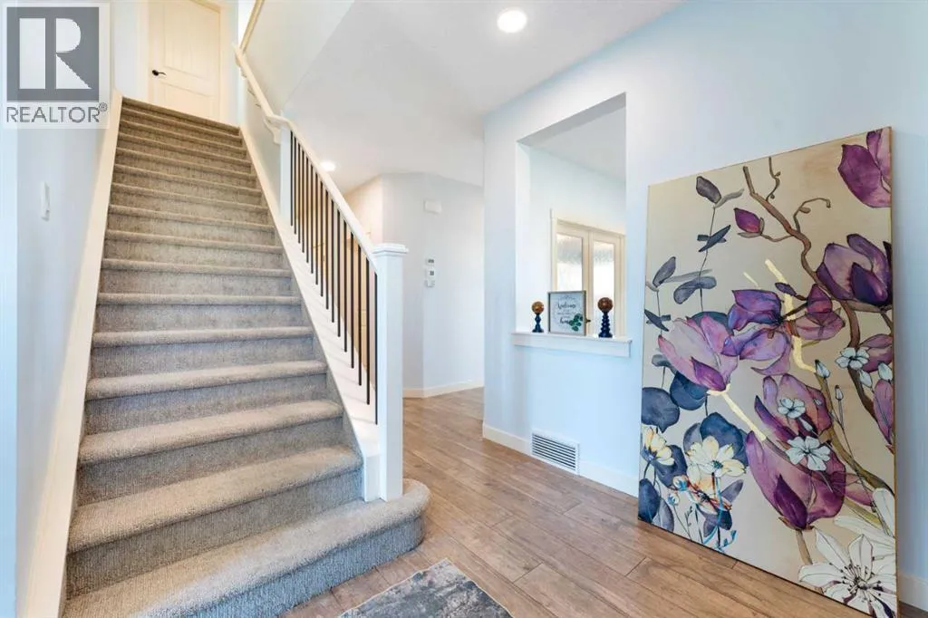 NEW IMPROVED PRICE!! OPEN HOUSE FEB 14 & FEB 15, SAT & SUN, 1-3PM Welcome to this beautifully upgraded corner-lot family home in the heart of Midtown, Airdrie, backing onto the pond and walking paths with park-facing views that offer calming scenery and exceptional privacy. This home provides over 2,500 sq ft of thoughtfully designed living space above grade, plus an unfinished basement ready for future development. Inside, youâll appreciate 9-foot ceilings throughout, a vaulted upper-level living area, and an expanded back wall that enhances natural light and usable space. The main floor features a functional open-concept layout with a spacious kitchen complete with double wall ovens, a pot filler above the range, a dedicated pantry fridge, and seamless flow into the dining and living areas anchored by an upgraded stone fireplace featuring one of the largest fireplace sizes available. Upstairs offers an ideal family layout with a generous primary retreat and spa-inspired ensuite with the largest tub option, additional well-sized bedrooms, a kidsâ wet-room bathroom with three sinks, shower, and tub, convenient upper-level laundry, and excellent built-in storage. The outdoor space has seen over $30,000 invested, including a stone patio with fire pit, low-maintenance deck, and natural gas hookup, all perfectly positioned to enjoy pond views and the surrounding pathways. Practical upgrades include lifetime-warranty shutters on every window, a water softener system, a custom mudroom with cleaning closet and coat hooks, and an extra-long, extra-wide garage ideal for trucks, with natural gas and power roughed in for a heater, hose bibs, and security wiring. Located in the vibrant Midtown community, this home is steps from walking paths, parks, and green spaces, close to schools, sh opping, restaurants, and everyday amenities, with easy access to major routes, making it a rare opportunity to own a premium, park-front, pond-backing home in one of Airdrieâs most desirable neighborhoods. (id:27476)