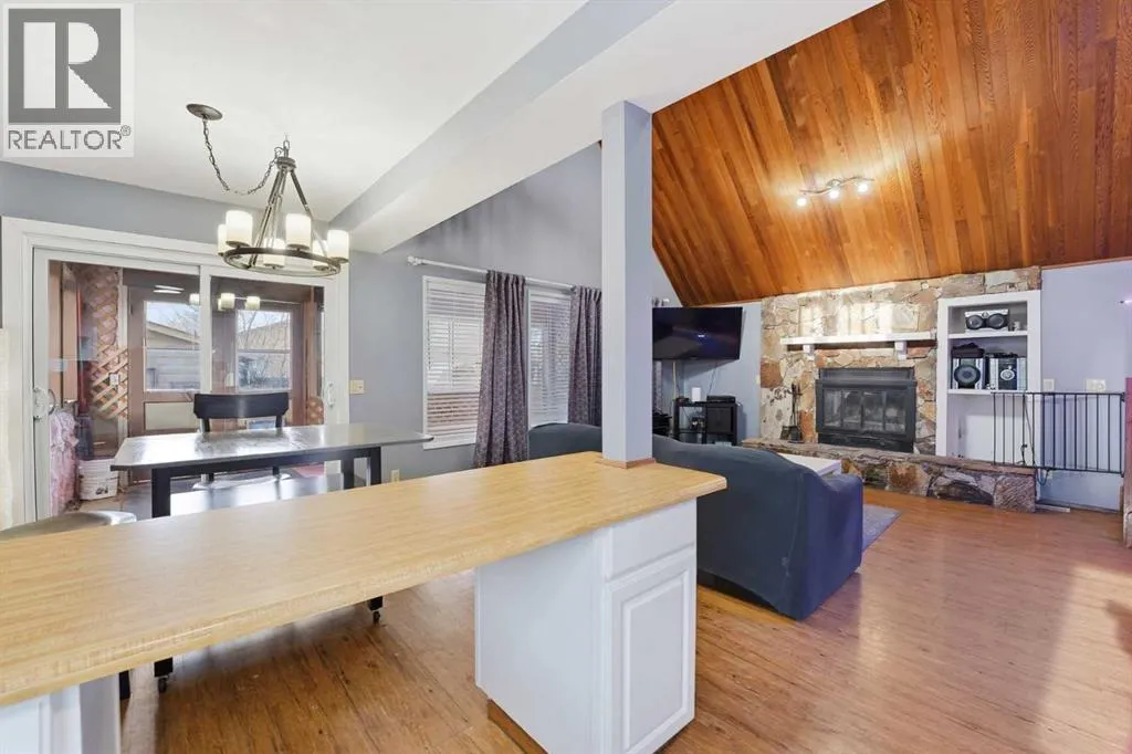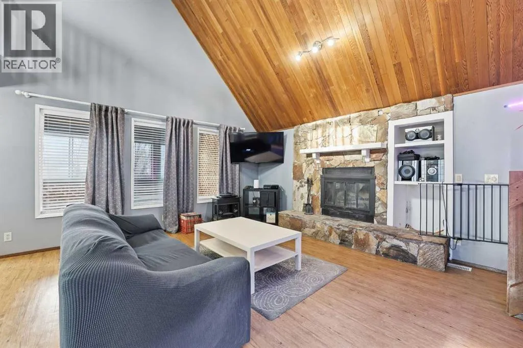 Get readyâthis incredible 3-bedroom home is about to steal your heart! With 2 full bathrooms, a fully developed basement, and a warm, welcoming vibe, this unique property is the kind you need to see immediately. The outside is built to last with cedar and brick siding. In the heart of Older Airdrie where there is nothing cookie cutter in sight.Step inside to a soaring VAULTED great room featuring a stunning stone-faced, WOOD-BURNING fireplace that instantly sets the mood. The open-concept kitchen and nook are perfect for hosting unforgettable gatherings. Plusâdonât miss thisâthereâs a rare main-floor bedroom paired with a full 4pc bathroom.Head upstairs to a bright, airy loft overlooking the great room could easily be converted into a 4th bedroom or nursery, another 4pc bathroom, and a spacious master bedroom drenched in natural light. The basement is fully finished with space for a play area, a generous family room/media zone, and a third bedroom complete with its own convenient half-bath ensuite.Enjoy peace of mind with a high-efficiency furnace/vents cleaned and repaired in 2025, serviced and repaired hot water tank. Outside, the full concrete driveway is perfect for RV or boat parking leading to a large garage with a fenced West facing backyard that still offers plenty of room to enjoy the afternoon sun on the oversized deck.This home is MOVE-IN READY and it wonât lastâdonât wait!! walking distance from Genesis and all grocery needs. (id:27476)