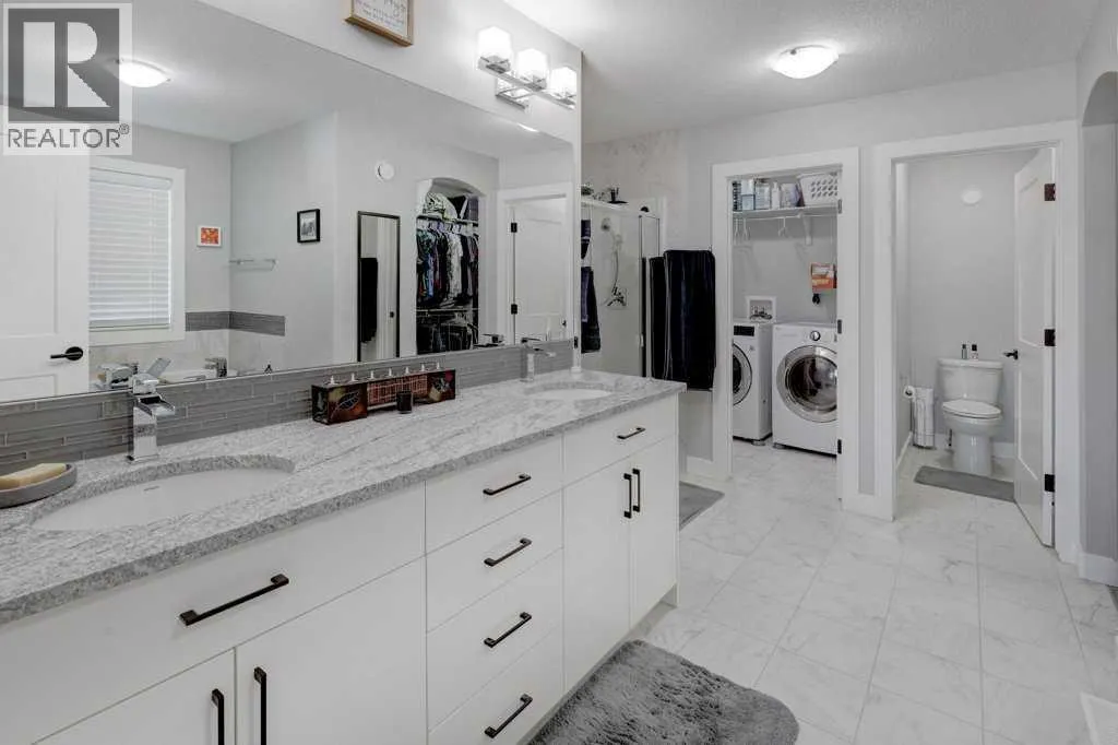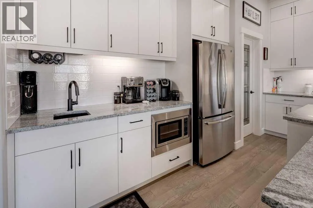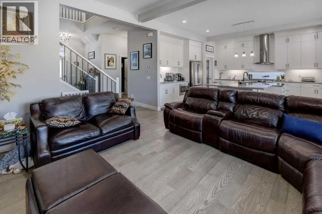 This exceptional 5-bedroom home offers over 3,700 sq. ft. of beautifully developed luxury living space, thoughtfully upgraded throughout and situated on the second-largest lot on the street backing onto Greenspace, creating an impressive presence and enhanced functionality. Built by McKee Homes with the upgraded Signature Design package, this residence combines timeless finishes with modern comfort. The main floor features 10â ceilings, rich oak hardwood flooring, knock-down ceilings, and elegant rounded wall corners, creating a refined yet welcoming atmosphere. Triple-pane vinyl windows enhance energy efficiency and year-round comfort. The chef-inspired kitchen is both stylish and highly functional, showcasing higher-end granite countertops, black granite sinks, and floor-to-ceiling maple cabinetry with soft-close hinges. A Gigantic Island seats 6 people comfortably and is amazing for entertaining quests. Thoughtful storage upgrades include extra-deep pot and pan drawers, garbage and recycling pull-outs, extended island cabinetry for cookie sheets and cutting boards, tip-out trays, a second prep sink, and under-cabinet lighting. Premium appliances include a Gas range with double oven, Bosch dishwasher, and a GE Profile refrigerator with internal water dispenser. A matching granite wet bar in the fully developed basement continues the homeâs upscale design. All bathrooms feature granite countertops, upgraded faucets and accessories, comfort-height energy-efficient toilets with slow-close lids, and tip-out trays. The main (kidsâ) bathroom includes a double vanity, while the primary ensuite offers a relaxing jetted tub. The builder-developed basement seamlessly matches the rest of the home and includes a wet bar, plush carpeting with Smart Cushion underlay and pet-protection layer, and generous living and entertaining space. Comfort and efficiency are paramount with two furnaces (separate systems for main/upper levels and basement), a heat recovery ventilation system, and a large air-conditioning unit serving the main and upper floors. Insulation has been upgraded to R22 on exterior walls, R20 in the garage, and R34 in the attic. The extended oversized garage includes a heater, while the home is wired for a hot tub. An exterior shed is built into the home with matching siding, a concrete slab, and electricalâmeeting HOA requirements while offering exceptional storage. The beautifully manicured backyard is designed for outdoor living, featuring a large deck, hand-laid stone patio, outdoor fireplace, and privacy fencing ideal for a future hot tub (hot tub not included). Underground Sprinklers provide seasonal convenience watering your lawn! Power roller blinds on the rear of the home and wood shutters at the front complete the window treatments. With its extended width design, additional office space, premium finishes, and standout lot size, this home delivers luxury, efficiency, and everyday practicality in a truly impressive package. (id:27476)