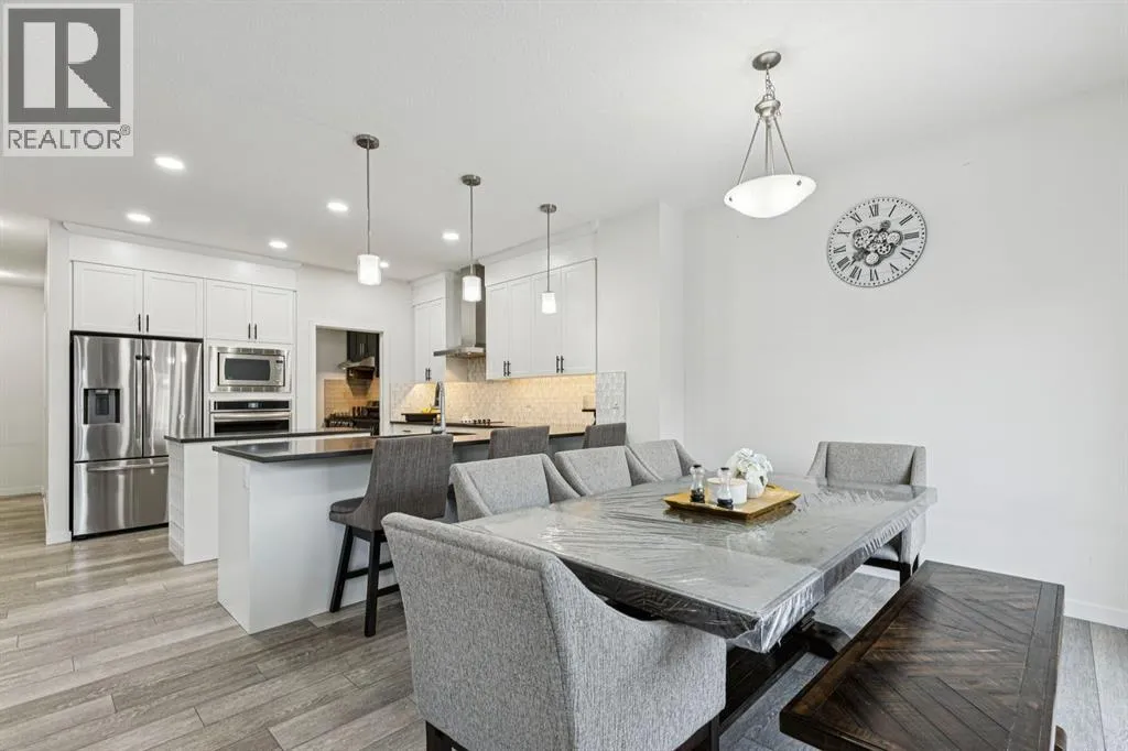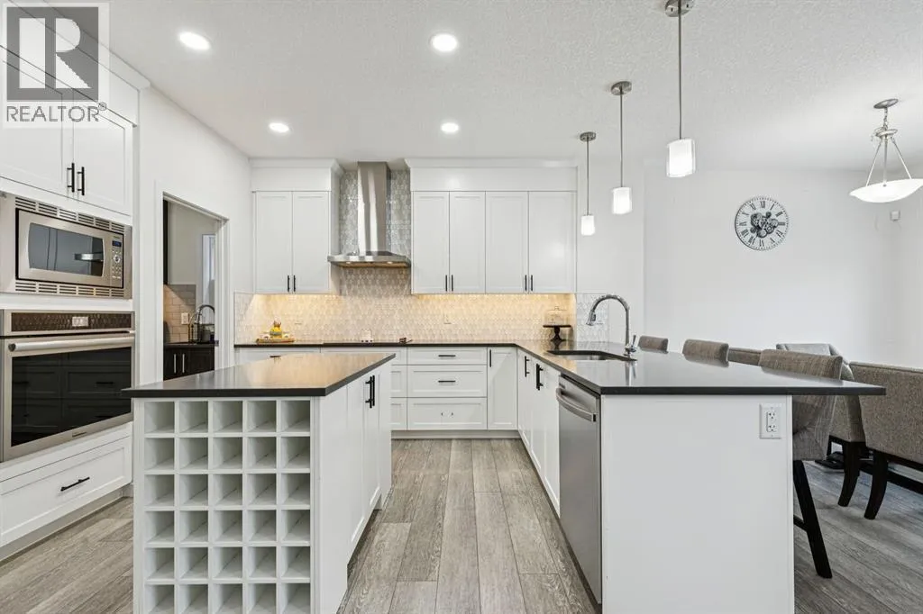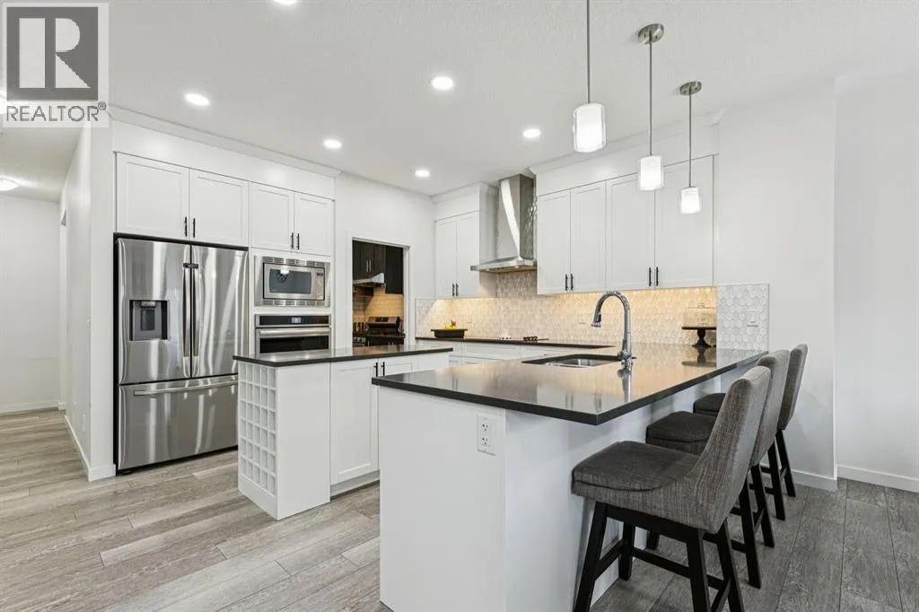 Welcome to #1124 Chinook Gate Bay SW, a beautifully upgraded, almost-new family home offering over 3,300 sq. ft. of fully finished living space in one of Airdrieâs most desirable, family-friendly communities. Proudly owned by the original owners, this turn-key property combines thoughtful design, upscale finishes, and an exceptional location just steps from Chinook Winds Regional Park. From the moment you arrive, you'll appreciate the nice curb appeal and convenience of the double attached garage. Inside, the bright, open-concept main floor features 9â ceilings, pot lights throughout, and a layout perfectly suited for everyday living and entertaining. The huge chefâs kitchen is a showstopper, complete with quartz countertops, gas range, built-in appliances, stainless steel hood fan, and a rare full butlerâs kitchen offering additional prep space, storage, and functionality. The open plan flows seamlessly into the dining and living areas, creating an inviting space for gatherings large and small. A main-level office with custom built-in cabinetry adds flexibility for working from home or study space. Additional highlights include remote-control blinds, central A/C, and a water softener, all adding comfort and convenience. Upstairs, you'll find four spacious bedrooms, a large central bonus room, upper-level laundry, and the unique bonus of direct laundry access from the primary walk-in closet. The primary retreat features elegant ceiling details and a spa-like 5-piece en suite designed for relaxation. With 3.5 bathrooms in total, the home is exceptionally well suited for growing families. The professionally finished basement expands the living space with two additional bedrooms, a generous recreation area, and ample storage, making it ideal for guests, teens, or multi-generational living. Outside, enjoy a fully fenced yard with planters ready for gardening, perfect for families and summer enjoyment. Located within walking distance to parks, close to all levels of schools, amenities, and offering easy access to main commuting routes, this home truly checks every box. Upgraded, spacious, and impeccably maintained, this is a rare opportunity to own a move-in-ready home in an unbeatable location. (id:27476)