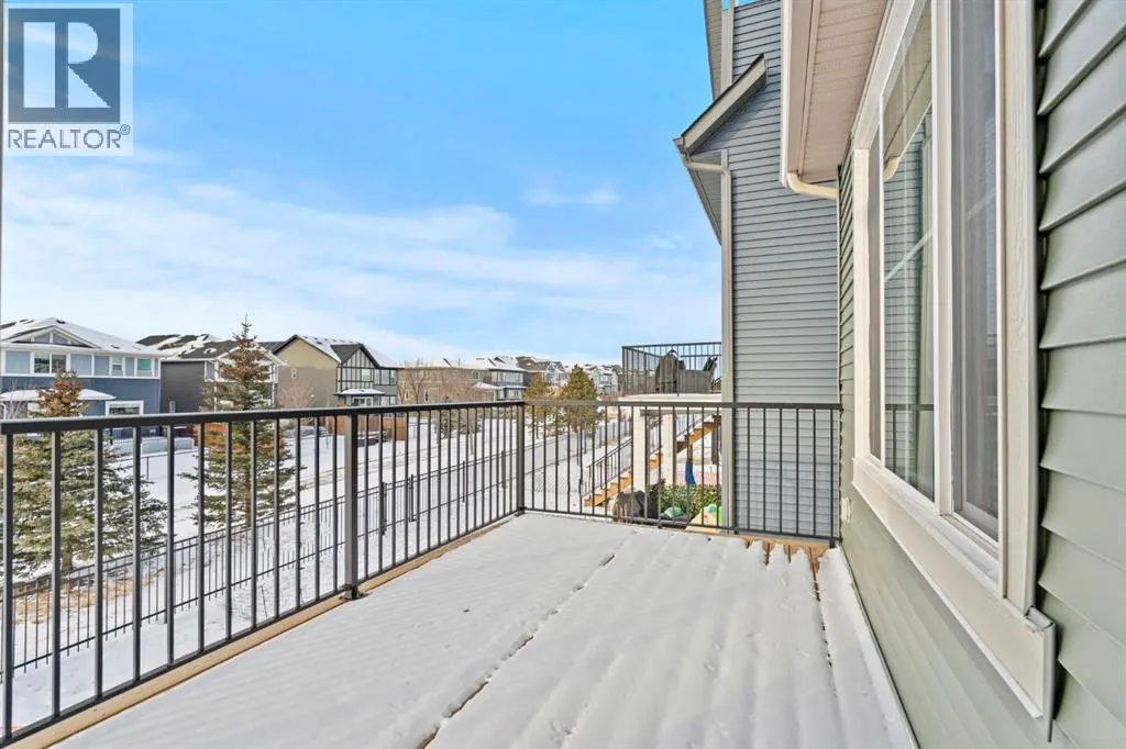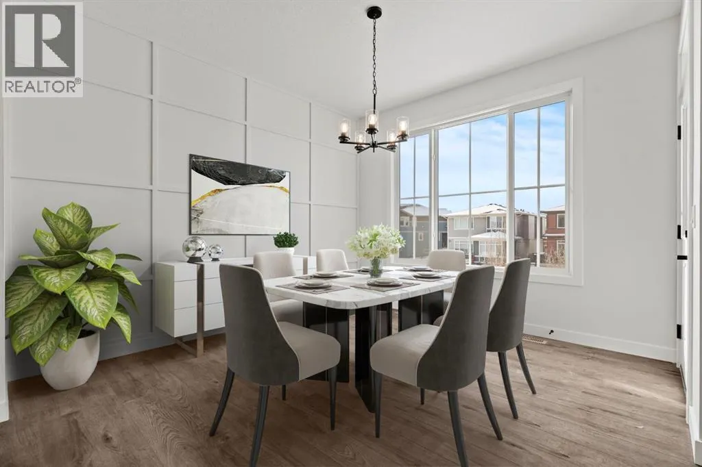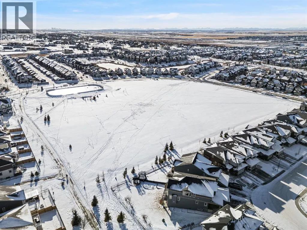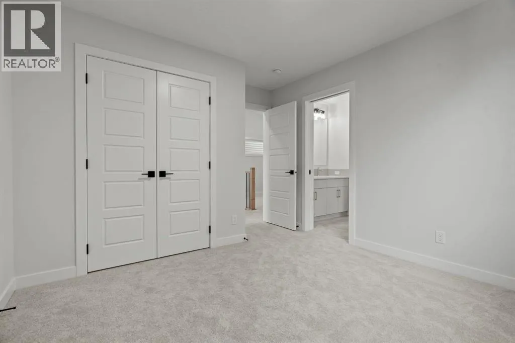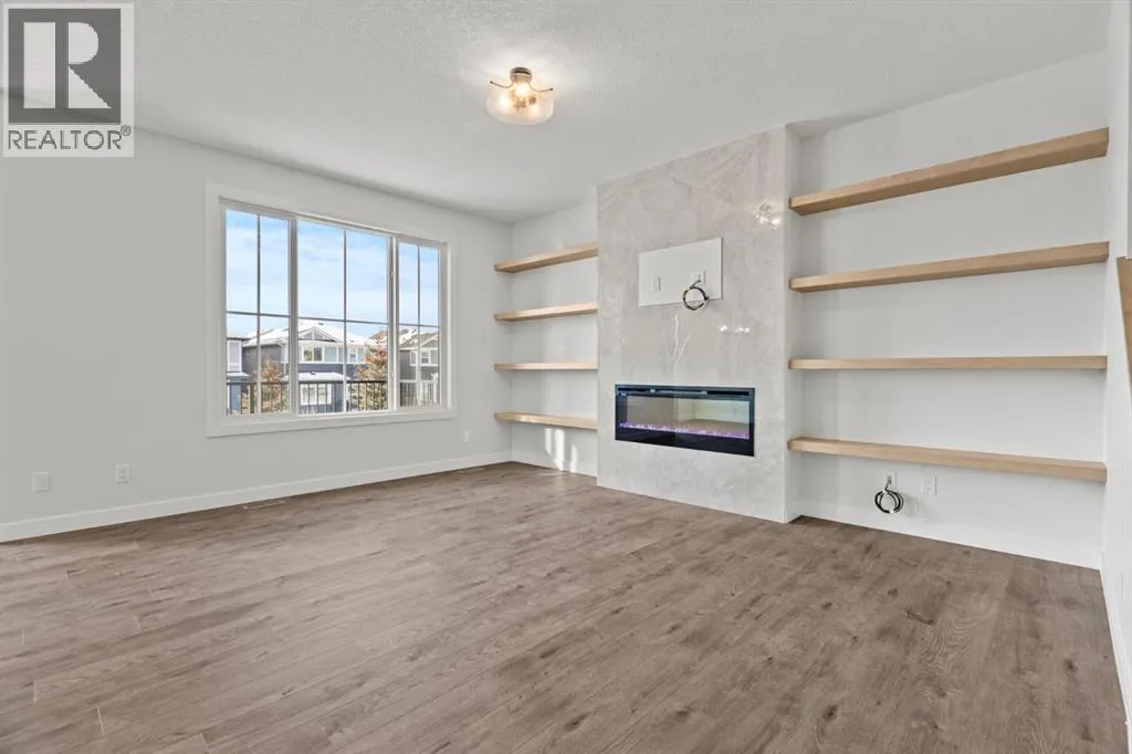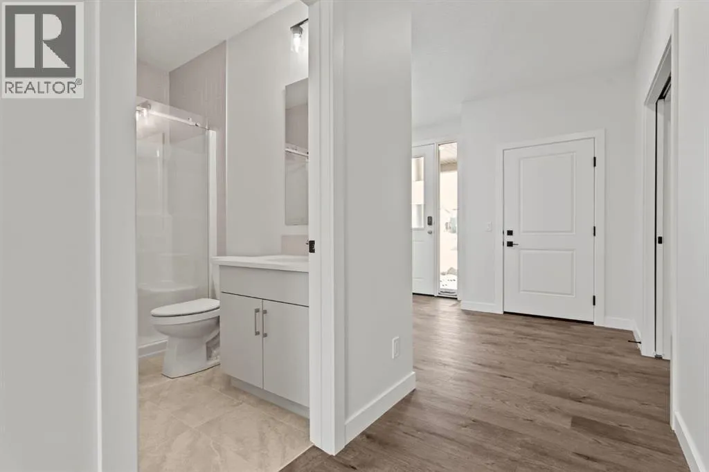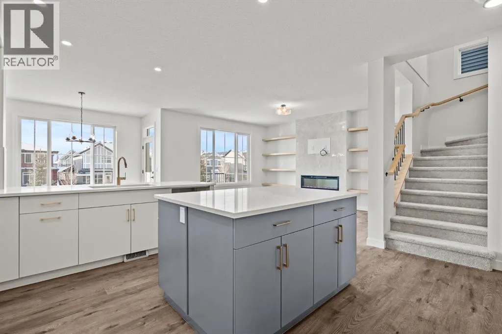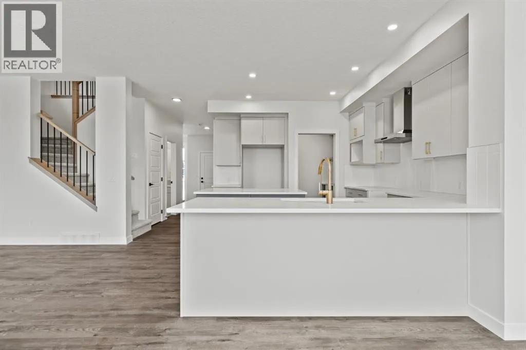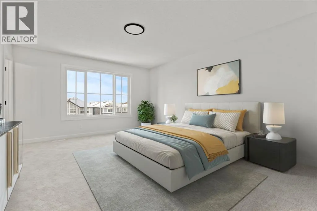 Welcome Home. Built by award winning home builder Sterling Homes âPierce 2â model at 2220 Lancaster Heights SE, is a beautifully designed home offering 2,541 sq ft, 4 bedrooms, 4 bathrooms, and a layout that blends modern style with everyday practicality.The main level is flooded with natural light and showcases wide plank flooring, oversized windows, and a seamless open-concept design. The kitchen is a true showpiece, featuring full-height cabinetry, quartz countertops, a large central island, stainless steel appliances, chimney hood fan, and elegant gold hardware and faucet. A highly desirable spice kitchen with gas line and pantry adds exceptional functionality for cooking and entertaining. The dining area is anchored by a striking custom wall detail and modern lighting, creating a warm yet elevated space for gatherings.The living room is both stylish and inviting, centered around a sleek electric fireplace with built-in shelving, while large windows frame peaceful views of the surrounding greenspace. A main floor flex room with double pocket doors offers versatility as a home office, guest room, or playroom, complemented by a full main floor bathroomâideal for multi-generational living.Upstairs, the thoughtfully designed layout includes four bedrooms, highlighted by a rare dual primary bedroom configuration. The main primary retreat features a luxurious 5-piece ensuite with dual sinks, tiled shower, private water closet, and ample storage, while the second ensuite is finished with tiled shower walls and modern fixtures. A vaulted ceiling bonus room provides an airy second living space, perfect for relaxing or family movie nights, and upper-level laundry adds everyday convenience.Additional features include 9â basement ceilings, side entrance, maple railing with iron spindles, tile flooring in bathrooms and laundry, and a rear 13â6â x 9â deck overlooking green spaceâperfect for enjoying sunny afternoons and peaceful views.Built with Sterling Homesâ Smart Ene rgy Package, this BUILT GREEN® certified home offers improved efficiency, comfort, and long-term savings. A fantastic opportunity to own a brand new, thoughtfully upgraded home in a growing southeast Airdrie community. (id:27476)