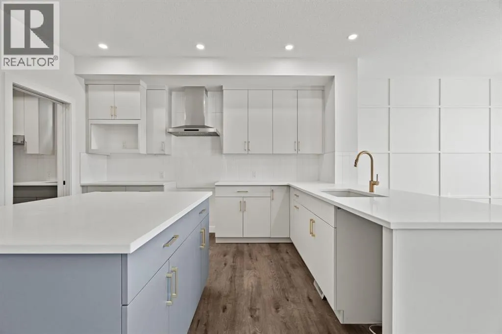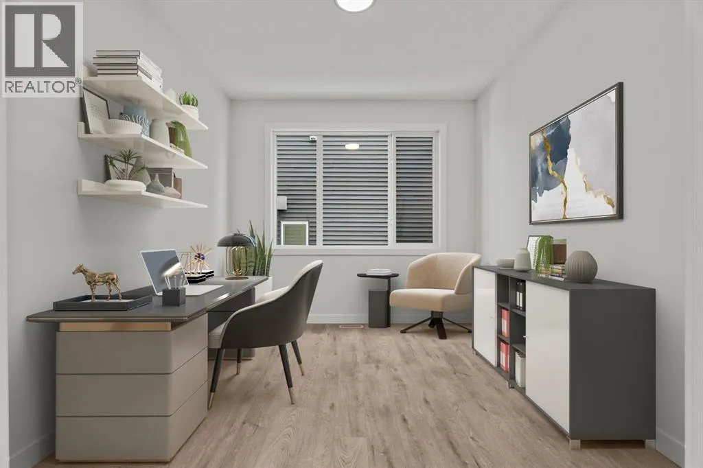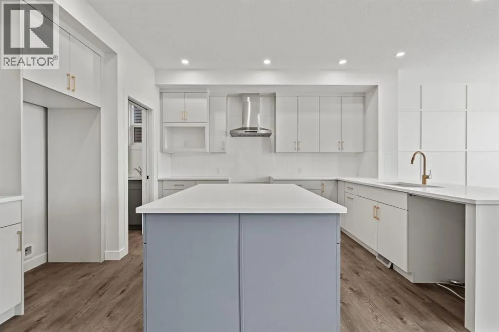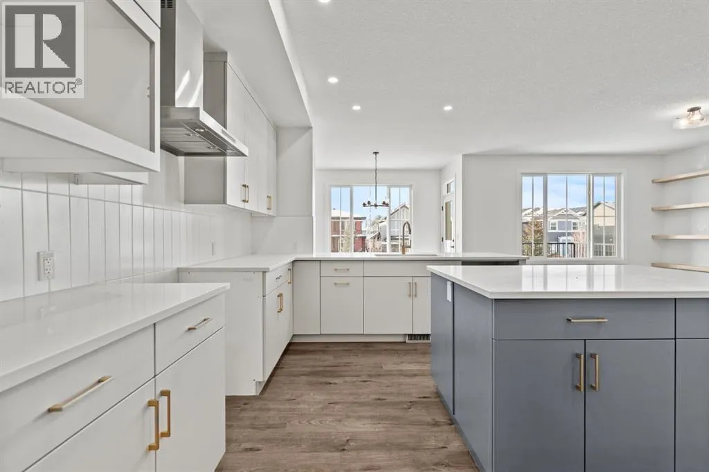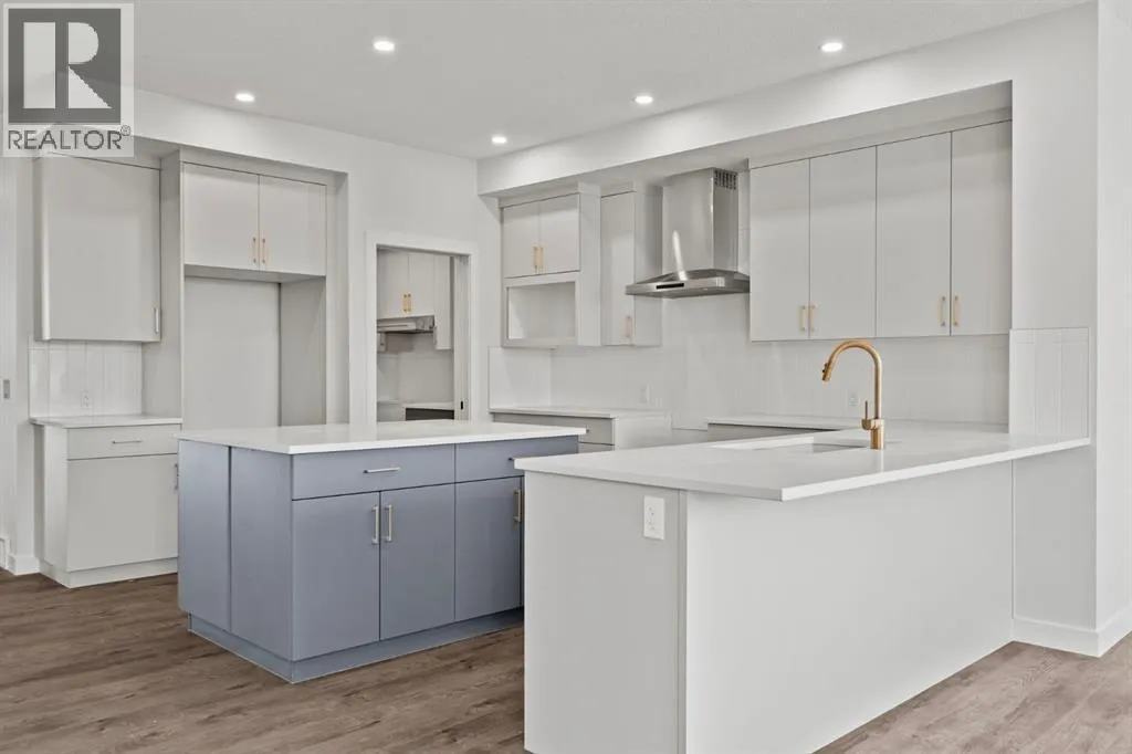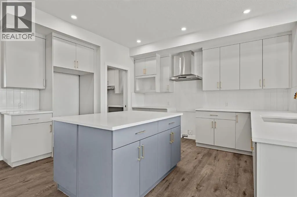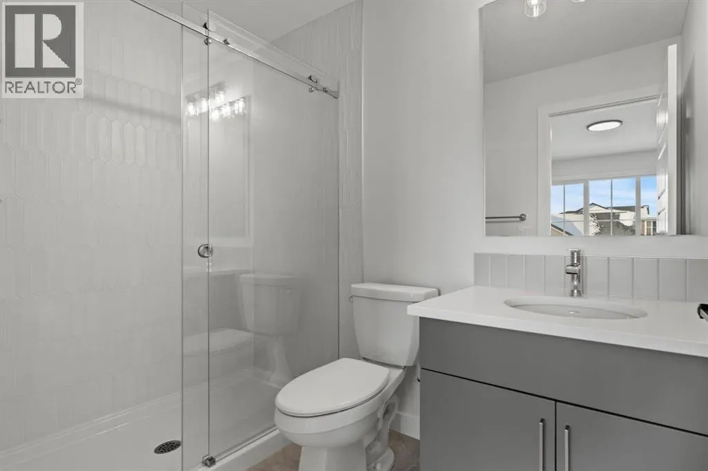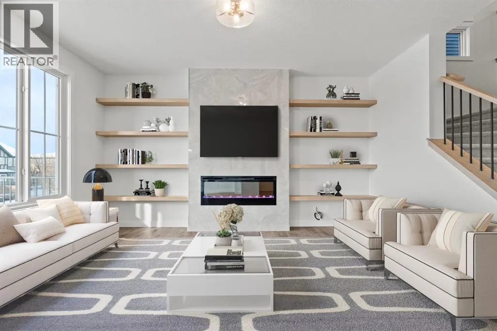 Welcome Home. Built by award winning home builder Sterling Homes âPierce 2â model at 2220 Lancaster Heights SE, is a beautifully designed home offering 2,541 sq ft, 4 bedrooms, 4 bathrooms, and a layout that blends modern style with everyday practicality.The main level is flooded with natural light and showcases wide plank flooring, oversized windows, and a seamless open-concept design. The kitchen is a true showpiece, featuring full-height cabinetry, quartz countertops, a large central island, stainless steel appliances, chimney hood fan, and elegant gold hardware and faucet. A highly desirable spice kitchen with gas line and pantry adds exceptional functionality for cooking and entertaining. The dining area is anchored by a striking custom wall detail and modern lighting, creating a warm yet elevated space for gatherings.The living room is both stylish and inviting, centered around a sleek electric fireplace with built-in shelving, while large windows frame peaceful views of the surrounding greenspace. A main floor flex room with double pocket doors offers versatility as a home office, guest room, or playroom, complemented by a full main floor bathroomâideal for multi-generational living.Upstairs, the thoughtfully designed layout includes four bedrooms, highlighted by a rare dual primary bedroom configuration. The main primary retreat features a luxurious 5-piece ensuite with dual sinks, tiled shower, private water closet, and ample storage, while the second ensuite is finished with tiled shower walls and modern fixtures. A vaulted ceiling bonus room provides an airy second living space, perfect for relaxing or family movie nights, and upper-level laundry adds everyday convenience.Additional features include 9â basement ceilings, side entrance, maple railing with iron spindles, tile flooring in bathrooms and laundry, and a rear 13â6â x 9â deck overlooking green spaceâperfect for enjoying sunny afternoons and peaceful views.Built with Sterling Homesâ Smart Ene rgy Package, this BUILT GREEN® certified home offers improved efficiency, comfort, and long-term savings. A fantastic opportunity to own a brand new, thoughtfully upgraded home in a growing southeast Airdrie community. (id:27476)