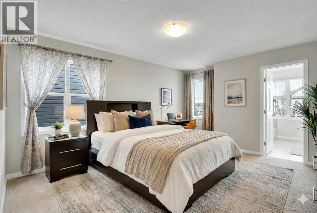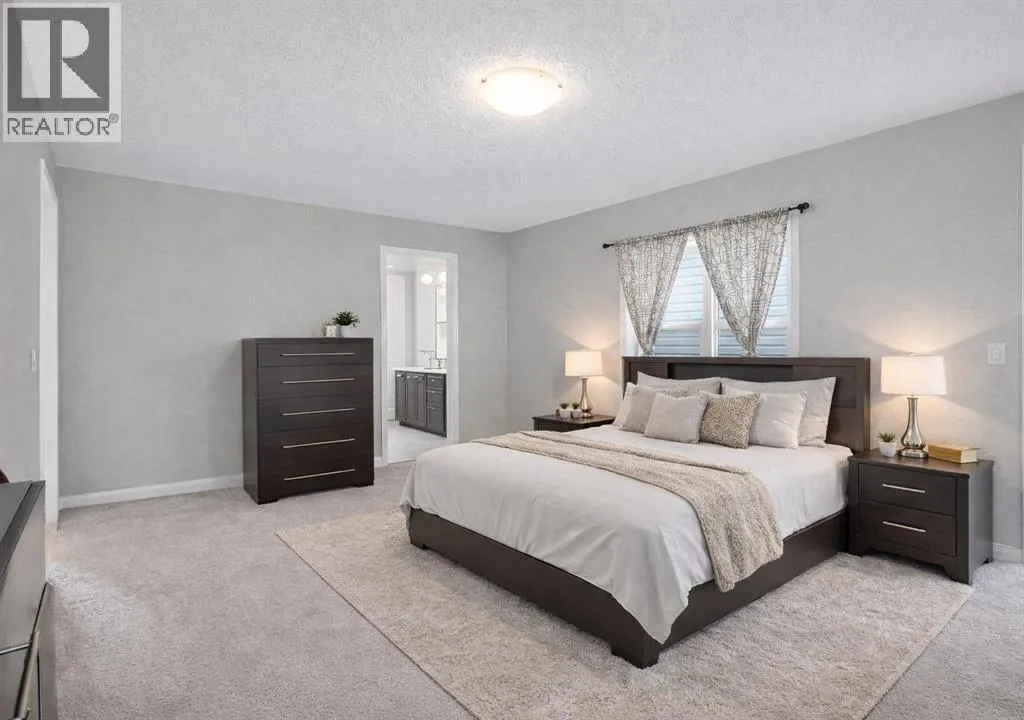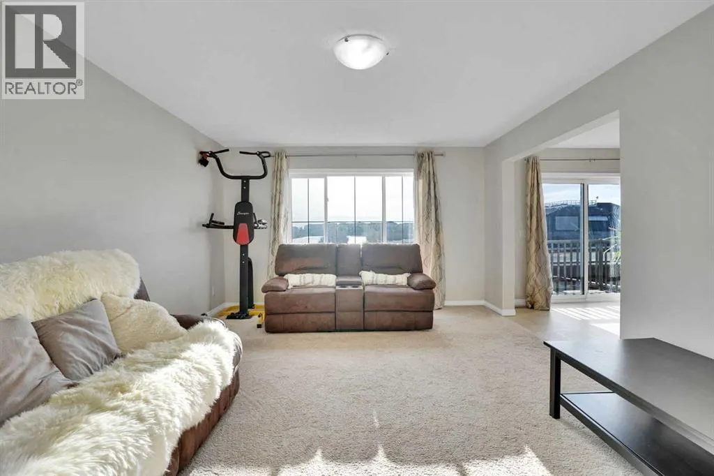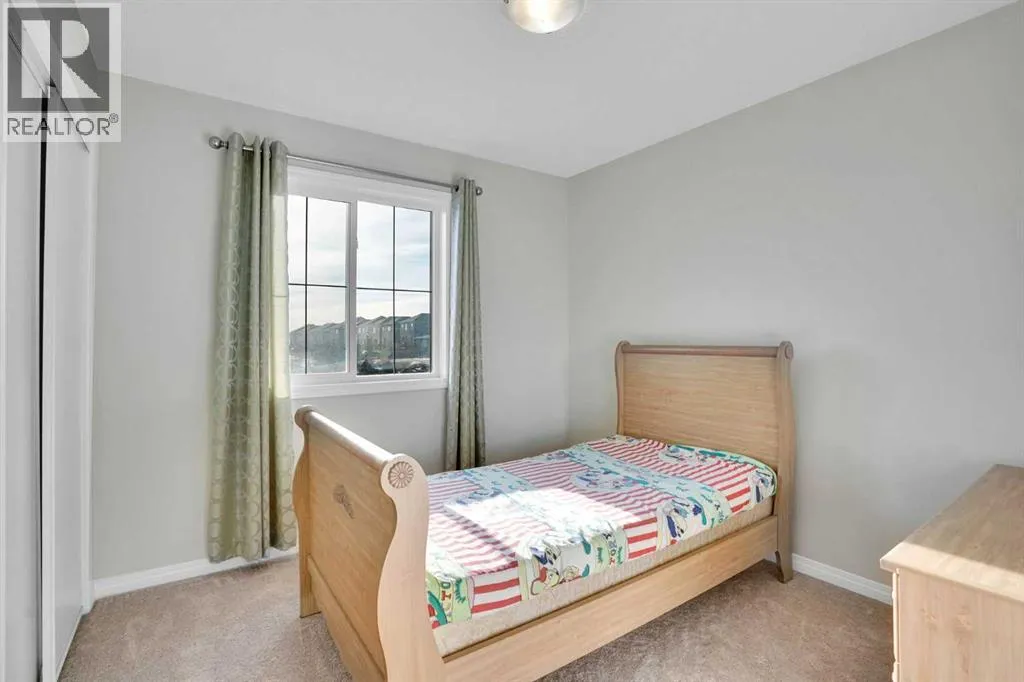 Welcome to this beautifully maintained single-family home with a front-attached garage, perfectly positioned to capture sunny southern exposure and non-obstructive pond views. The south-facing backyard is filled with natural light all day longâan ideal setting for relaxing evenings, outdoor dining, and enjoying stunning sunsets and it creates a peaceful extension of your living spaceârarely found and highly sought after. Pride of ownership is evident throughout, with the home kept in like-new, move-in-ready condition. The thoughtfully designed main floor offers 9-foot ceiling, excellent flexibility, featuring a private office that can easily serve as a fourth bedroom, along with a convenient half bathroomâperfect for guests, remote work, or multi-generational living. Upstairs, youâll find three generously sized bedrooms and two full bathrooms, including a comfortable primary retreat designed for both privacy and everyday comfort. The layout is practical and family-friendly, with plenty of natural light flowing through large windows on both levels. Whether youâre enjoying your morning coffee or unwinding after a long day, the setting offers a quiet escape without sacrificing convenience. Located in a family-oriented community Windsong, this home is just minutes from schools, playgrounds, walking paths, and shopping centres. Enjoy quick access to CrossIron Mills Mall, nearby amenities, and major roadways, with Downtown Calgary only a 25-minute drive awayâmaking daily commuting or weekend outings effortless. This is an outstanding opportunity to own a well-kept home with a premium backyard view, functional layout, and excellent location. Donât miss your chanceâCheck out the 3D Virtual Tour link or book your private showing today! (id:27476)