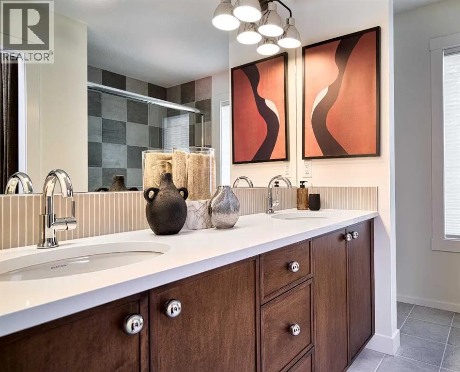 SHOW HOME FOR SALE! Welcome to The Belvedere Show Home in the vibrant community of Chinook Gate - where thoughtful design, elevated finishes, and everyday functionality come together beautifully. Built by Brookfield Residential, this professionally designed show home offers a rare opportunity to own a home loaded with premium upgrades and designer details throughout. Step inside and youâre immediately greeted by a bright, open-concept main floor that blends modern style with comfortable living. The chef-inspired kitchen is the heart of the home, featuring upgraded two-tone cabinetry, quartz countertops, a large central island, and designer touches throughout - perfect for entertaining. The spacious dining area flows seamlessly into the inviting living room, where oversized windows fill the space with natural light and create a warm, welcoming atmosphere. The main level is complete with a 2pc bathroom and large mudroom. A striking spiral staircase leads to the upper level, where youâll find a thoughtfully planned layout with generous bedrooms and a beautifully finished primary retreat designed for relaxation. The ensuite showcases upscale finishes and a spa-like feel and is complete with dual sinks, a walk-in shower and walk-in closet with ample storage. The upper level is complete with two more bedrooms, a full bathroom and a large laundry room for added convenience to everyday living. The professionally developed basement adds more flexibility and living space with an expansive recreation room, fourth bedroom and full bathroom. The perks of purchasing a show home are a rare find and include a professional and cohesive design throughout including wallpaper, custom window treatments, upgraded lighting, central air-conditioning, and much more. Step outside to your private landscaped backyard providing a move-in ready home that you can enjoy right away! Completing this fully upgraded and fully developed home is a double detached garage to keep your vehicle and valuable s safe all year long. Every corner of this show home reflects elevated craftsmanship - from designer lighting, to upgraded cabinets, tile and flooring, this stunning new home is truly move-in ready. Located in family-friendly Chinook Gate, which offers parks, pathways, playgrounds, and easy access to schools, shopping, and commuter routes - this is the perfect family home with space to grow. Whether youâre looking for a stylish move-up home or simply want the benefits of show home quality without the wait. The Belvedere delivers exceptional value, comfort, and design. Builder warranty + Alberta New Home Warranty is included with the purchase of this brand new home! (id:27476)