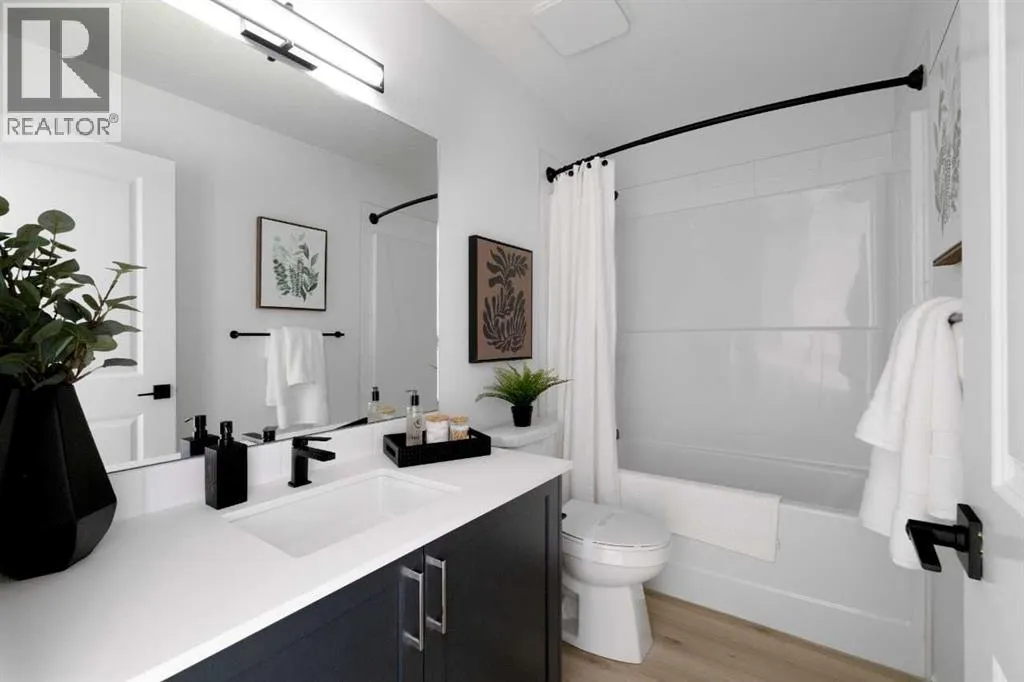 Welcome to The Towns on Eight Street, a showhome opportunity built by Shane Multifamily. This 3 storey corner unit townhome offers 3 bedrooms and 3.5 bathrooms with a modern, functional layout. The ground level features a double attached garage, a flex room, and a full bathroom, ideal for a home office or guest space. The main living level showcases an inviting open concept design with a kitchen featuring a pantry and central island, along with a spacious living and dining area. A den with a half bathroom and access to a balcony with BBQ space complete this level. Upstairs, the ownerâs bedroom includes a walk in closet and ensuite, while two additional bedrooms, a full bathroom, and laundry complete the upper level. This corner unit sides onto the community dog park and features high quality finishes throughout. Located in Midtown, close to walking paths, a pond, playgrounds, and nearby amenities. Possession date to be set by the builder. (id:27476)