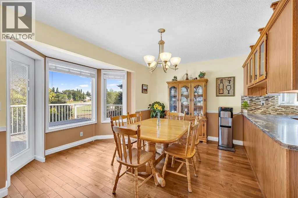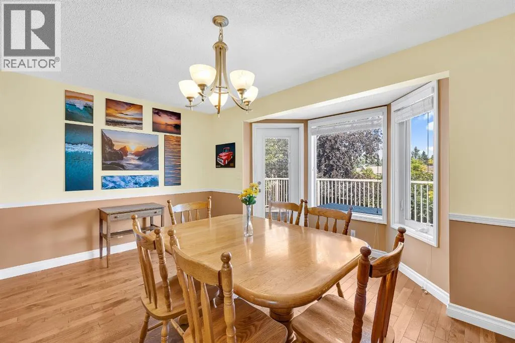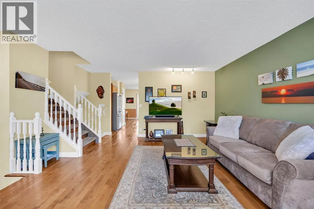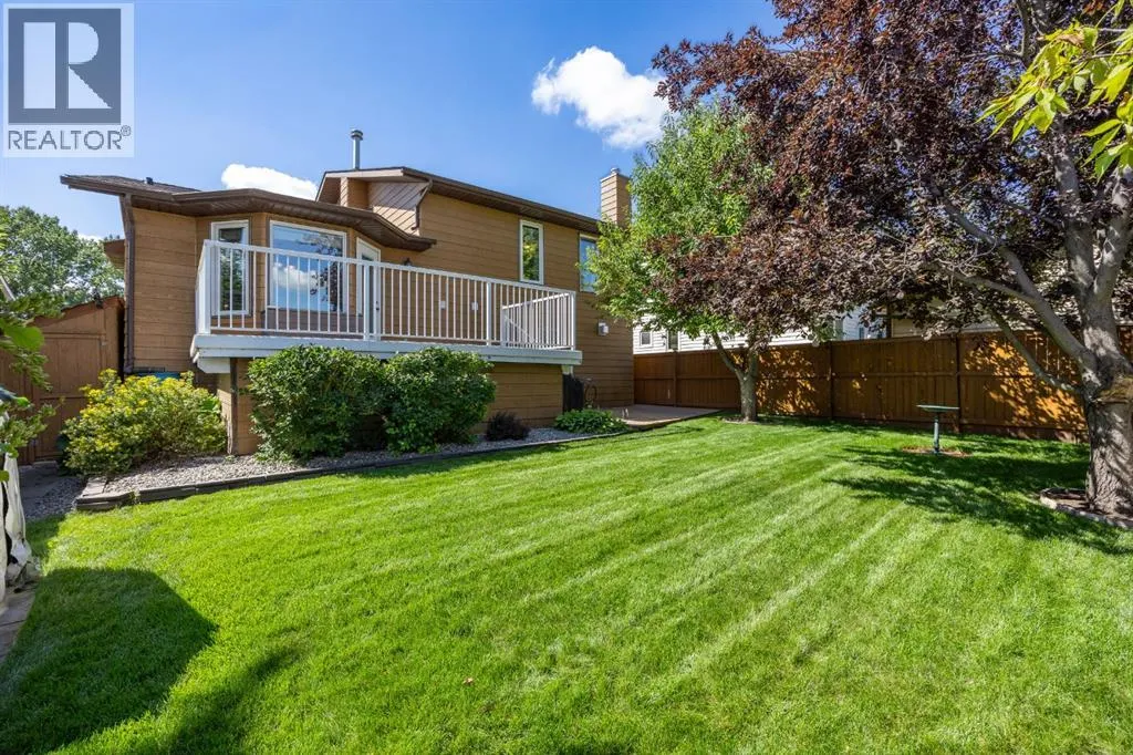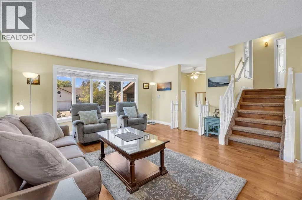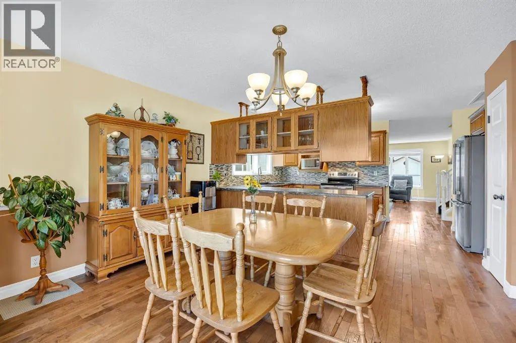 Pride of ownership resonates throughout this ORIGINAL OWNER occupied home in the COVETED community of RIDGEGATE. BACKING onto NOSE CREEK PARK, this absolutely stunning 4 level split will immediately capture your attention with its breathtaking front curb appeal. An immaculately manicured front lawn with shrubs & foliage. Canexel composite siding is bold, beautiful & ready for Alberta's changing weather conditions. The accent brick offers a sophisticated focal point to the home while the RUBBER drive pad is not only beautiful but offers a child friendly buffer for those day to day spills. This home offers over 2600 sq ft of tl developed living space with a total of 4 bedrooms above grade. Sunshine floods through the large front bay & rear windows. A substantial sized living room with beautiful hardwood floors ushering you to a LARGE bright kitchen. Ample counter space, cabinets & pantry. Updated appliances, countertops, sink, garburator & fixtures. The kitchen is open to a spacious dining area. The rear door off the dining room leads to your large low maintenance deck & fully fenced back yard. Stunning mature trees, shrubs & flowers offer a balance of beauty & privacy in this meticulously maintained OASIS. Exceptional outside storage under the deck, corner shed & garden enclosure. Back inside the house you will note a large master with 3 pc ensuite & SKYLIGHT. An exceptional sized 2nd bed, comfortable sized 3rd bed & updated 4 pc main bath with jetted tub & SKYLIGHT. The 3rd level WALK OUT is ideal for someone with a DAYHOME/HOME BASED BUSINESS & is host to the 4th bed, a large family room with stone faced gas FP, 2 pc bath & washer & dryer. The basement offers a generous sized family room, Study/Den/Wine Cellar, 3 pc bath, & Storage room. The 2 lower level rooms could be converted to beds to suit the needs of a large family while the 3rd LEVEL WALKOUT could make this home a candidate to SUITE subject to city approval & permitting. Additional storage adjacent the u tility room. The single oversized attached garage is fully insulated, drywalled & includes a plug in heater. Additional features of this home include all newer windows & doors on the top 3 levels. Triple pain windows on the main rear of the home & built in blinds on the back door. Roof , Canexel siding & furnace app 2014. Hot water tank app 2020. Upgraded attic insulation. Garburator app 2020.. Water softener. Vacu Flo & attachments. Phantom screen at front door. A/C app 2022. Underground sprinklers in the backyard. This GEM is surrounded by the tranquil beauty of NOSE CREEK PARK which is host to various community events including the Christmas Light Celebration. Nose Creek Park is home to Airdrie's largest playground, fishing ponds, pickle ball courts & various trails. Walking distance to the new public library, grocery store, gym & other amenities. Nearby schools & quick access to the highway. (id:27476)