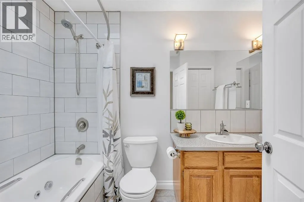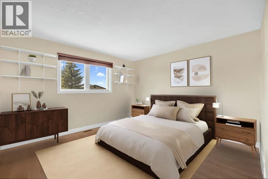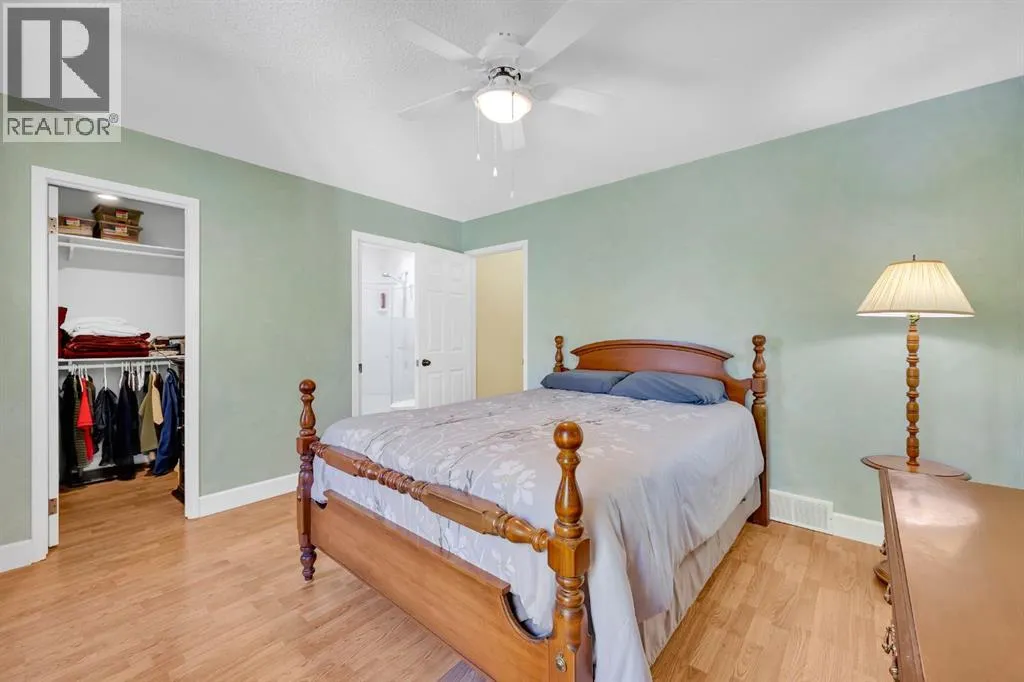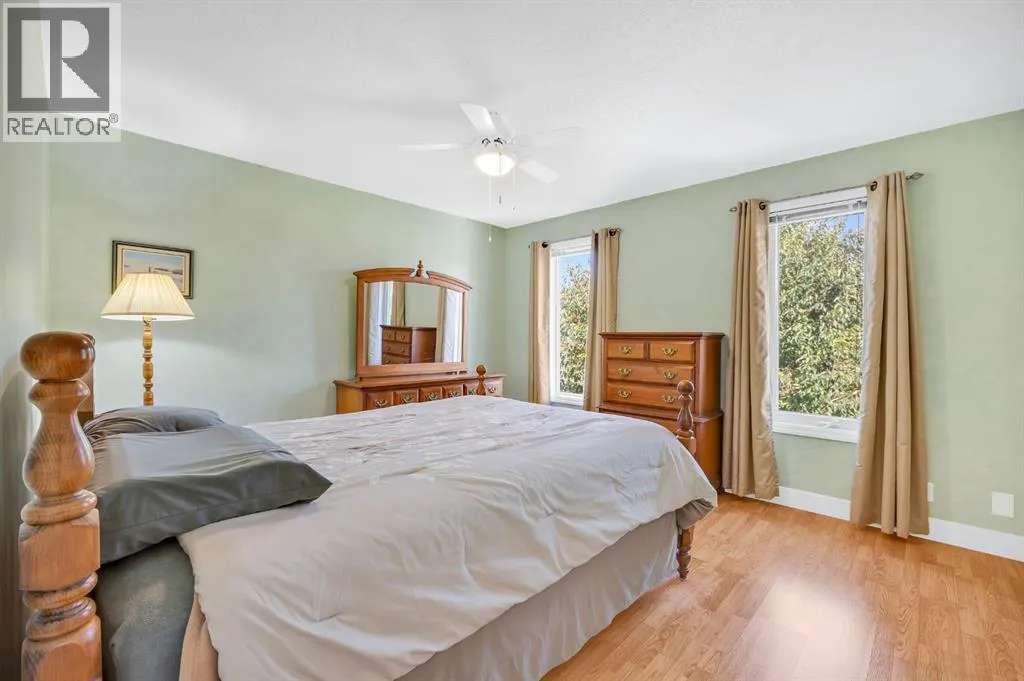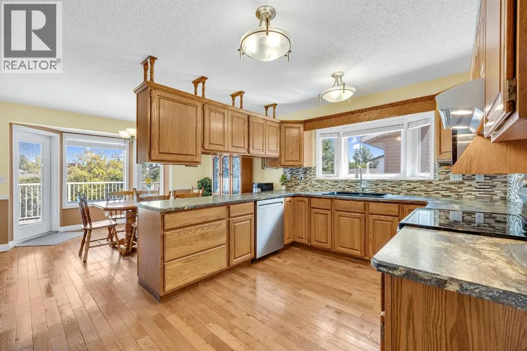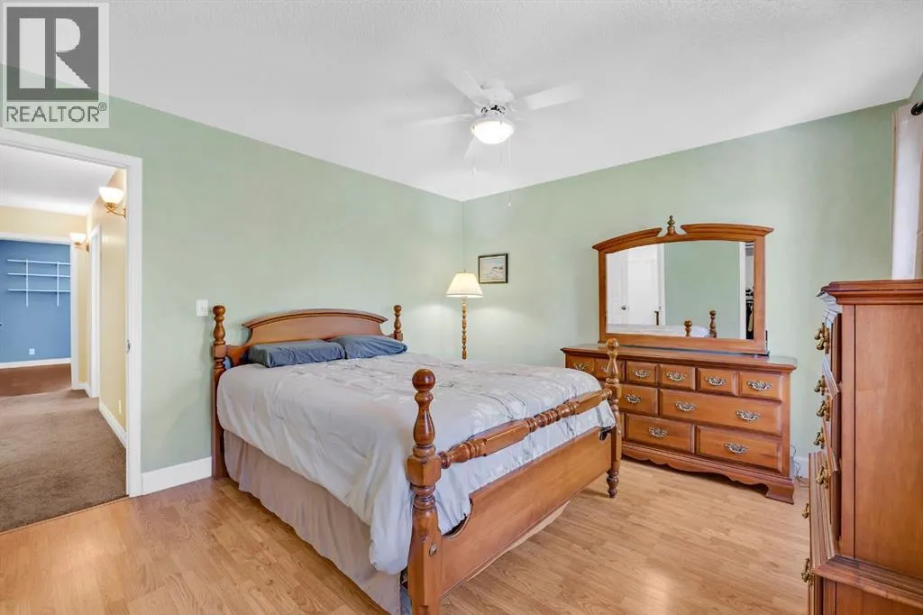 Pride of ownership resonates throughout this ORIGINAL OWNER occupied home in the COVETED community of RIDGEGATE. BACKING onto NOSE CREEK PARK, this absolutely stunning 4 level split will immediately capture your attention with its breathtaking front curb appeal. An immaculately manicured front lawn with shrubs & foliage. Canexel composite siding is bold, beautiful & ready for Alberta's changing weather conditions. The accent brick offers a sophisticated focal point to the home while the RUBBER drive pad is not only beautiful but offers a child friendly buffer for those day to day spills. This home offers over 2600 sq ft of tl developed living space with a total of 4 bedrooms above grade. Sunshine floods through the large front bay & rear windows. A substantial sized living room with beautiful hardwood floors ushering you to a LARGE bright kitchen. Ample counter space, cabinets & pantry. Updated appliances, countertops, sink, garburator & fixtures. The kitchen is open to a spacious dining area. The rear door off the dining room leads to your large low maintenance deck & fully fenced back yard. Stunning mature trees, shrubs & flowers offer a balance of beauty & privacy in this meticulously maintained OASIS. Exceptional outside storage under the deck, corner shed & garden enclosure. Back inside the house you will note a large master with 3 pc ensuite & SKYLIGHT. An exceptional sized 2nd bed, comfortable sized 3rd bed & updated 4 pc main bath with jetted tub & SKYLIGHT. The 3rd level WALK OUT is ideal for someone with a DAYHOME/HOME BASED BUSINESS & is host to the 4th bed, a large family room with stone faced gas FP, 2 pc bath & washer & dryer. The basement offers a generous sized family room, Study/Den/Wine Cellar, 3 pc bath, & Storage room. The 2 lower level rooms could be converted to beds to suit the needs of a large family while the 3rd LEVEL WALKOUT could make this home a candidate to SUITE subject to city approval & permitting. Additional storage adjacent the u tility room. The single oversized attached garage is fully insulated, drywalled & includes a plug in heater. Additional features of this home include all newer windows & doors on the top 3 levels. Triple pain windows on the main rear of the home & built in blinds on the back door. Roof , Canexel siding & furnace app 2014. Hot water tank app 2020. Upgraded attic insulation. Garburator app 2020.. Water softener. Vacu Flo & attachments. Phantom screen at front door. A/C app 2022. Underground sprinklers in the backyard. This GEM is surrounded by the tranquil beauty of NOSE CREEK PARK which is host to various community events including the Christmas Light Celebration. Nose Creek Park is home to Airdrie's largest playground, fishing ponds, pickle ball courts & various trails. Walking distance to the new public library, grocery store, gym & other amenities. Nearby schools & quick access to the highway. (id:27476)
