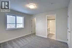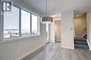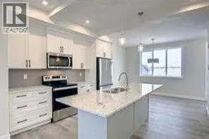 END UNIT, SIDE ENTRY TO BASEMENT. , IMMEDIATE POSSESSION, DOUBLE DETACHED GARAGE, DECK, FENCED AND LANDSCAPED, NO CONDO FEES. PICTURES ARE OF SAME MODEL, NOT SUBJECT PROPERTY. Welcome to the "St. Andrews" townhome, by Award winning, Master Builder, Douglas Homes Ltd. From the front covered porch, the entry opens onto the spacious great room with 9ft ceiling and gleaming hardwood floors throughout the main floor. The aspiring chef will appreciate the well planned "island" kitchen. From the upgraded 42 inch, soft close cabinets, to the gorgeous quartz countertops, everything is within easy reach. The sparkling stainless steel fridge, the glass top, self cleaning electric range, dishwasher, and over the range microwave/hoodfan are all just an arms length from the kitchen sink. Opposite side of the island, provides a convenient pantry, and desk with upper cabinet for all those recipe books you will collect. The spacious dining area features a large picture window looking out upon the back yard with room for the kids to play, with a rear entry door to the deck for those summer bbq's. Here also is a 2pc powder room for your guests convenience, and perhaps the kids hurried need. Upstairs includes 2 good sized secondary bedrooms, a 4pce bathroom with quartz vanity and tile floors, a convenient upstairs laundry, and a spacious primary bedroom with large upsized window and ensuite bath, with walk in shower, with glass front, tile floor and again a quartz vanity. The full basement provides rough in plumbing for a future bath, one window for future bedroom, and enough space remaining for a spacious future family room if you decide your family needs room to spread. All this in the desirable new subdivision Cobblestone Creek, with tennis courts, playgrounds, future school reserve, pathways and numerous green spaces, on the western edge of Airdrie, with wide open country side, and views to the west.Directions: (id:27476)