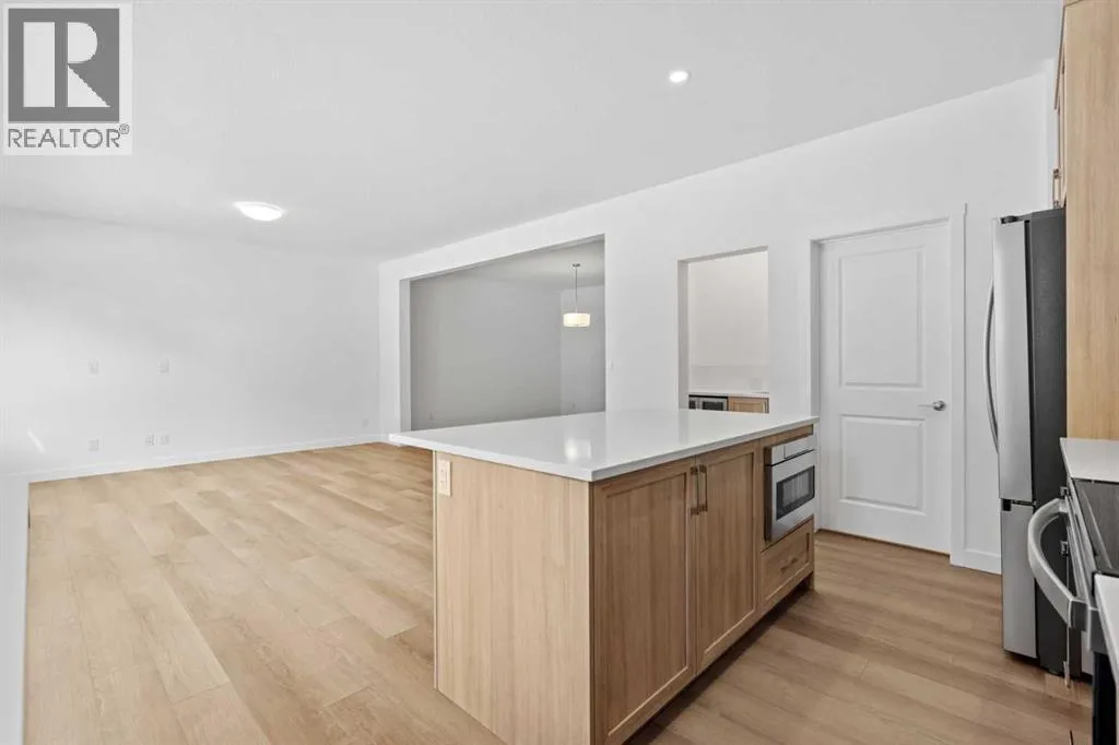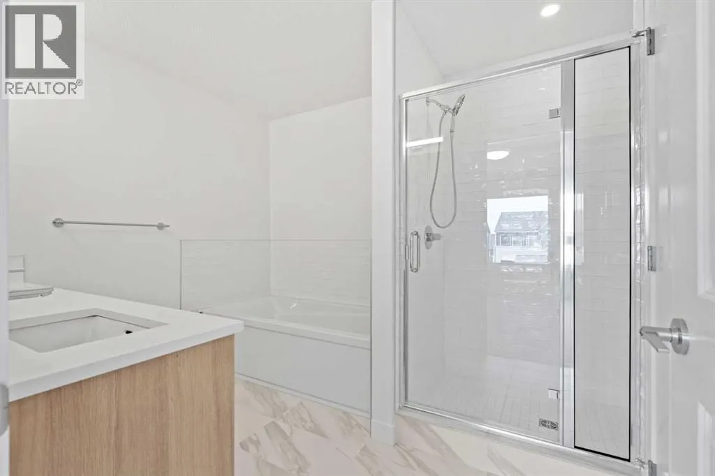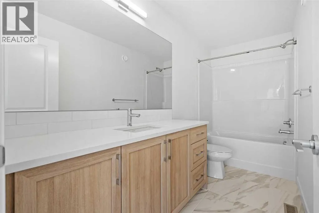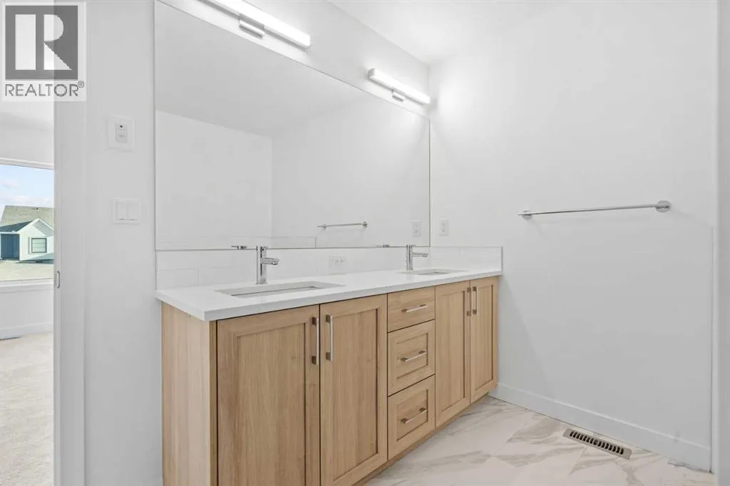NEW BUILD DETACHED 5-LEVEL SPLIT | DOUBLE ATTACHED GARAGE | 4 BED / 3.5 BATH / 2342 SQ FT ABOVE GRADE | WEST-FACING BACKYARD | IMMEDIATE POSSESSION â Welcome to this beautifully designed detached home by Minto Communities, an award-winning Canadian builder with over 70 years of experience, located in Wildflower, proudly voted Best New Community in Canada (2025). This vibrant, master-planned community in Airdrie is designed with lifestyle and connection in mind, offering an exciting mix of home styles in a neighbourhood built to grow with you. Finished with modern details throughout, this impressive 5-level split offers a unique and functional layout ideal for growing families and those who love to entertain.The main living level showcases a stunning kitchen positioned at the back of the home, featuring a large central island, built-in microwave, statement range hood fan, tiled backsplash, spacious pantry, and a convenient wet bar. An exit just off the kitchen leads directly to the west-facing backyard, perfect for enjoying the afternoon and evening sun. The living room is located to the right of the kitchen, while the massive dining area sits just below, offering ample space for an oversized dining table and hosting gatherings with ease.One level up, youâll find a large bonus room with access to a private balcony, creating a flexible space for relaxing, working, or entertaining. This level also includes the spacious primary bedroom, complete with a walk-in closet and a luxurious 4-piece ensuite featuring dual vanities, a soaker tub, and a standalone shower.The top floor offers three additional generously sized bedrooms, including one with its own walk-in closet and private 4-piece ensuite. An additional full bathroom and a conveniently located laundry area complete this upper level.The entry level welcomes you with a large foyer, access to a half bathroom, and direct entry into the double attached garage, providing everyday convenience. The undeveloped basement is expansive and offers even more opportunity to customize and expand your living space to suit your needs.Residents of Wildflower enjoy exclusive access to The Hillside Hub, a standout amenity centre featuring Airdrieâs first outdoor pool, a hot tub, an open-air sports court, and a variety of shared indoor and outdoor spaces designed for gathering, recreation, or quiet retreat. With nearby parks, pathways, amenities, and easy access to major routes, Wildflower delivers a truly well-rounded lifestyle. Combining award-winning community planning, modern design, and immediate possession, this is an outstanding opportunity to own a stylish new home in one of Canadaâs most celebrated communities. Donât miss your chance to make Wildflower home. Book your visit today! (id:27476)