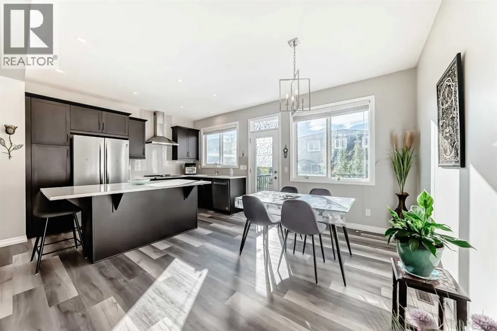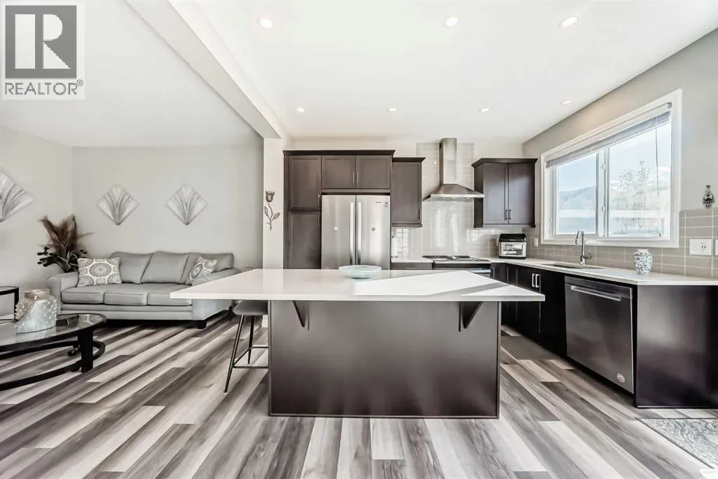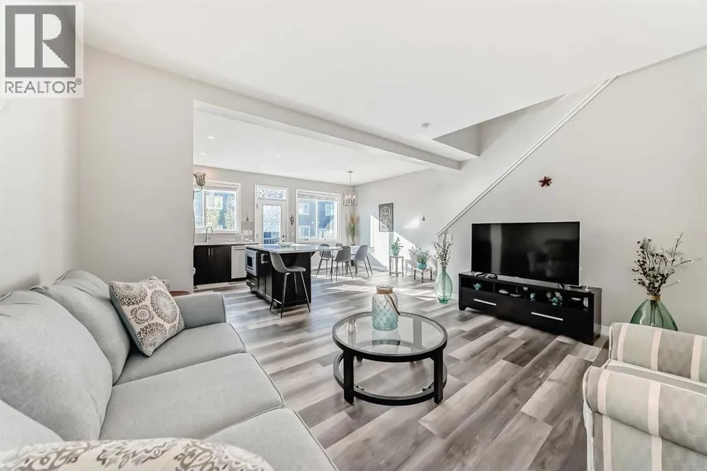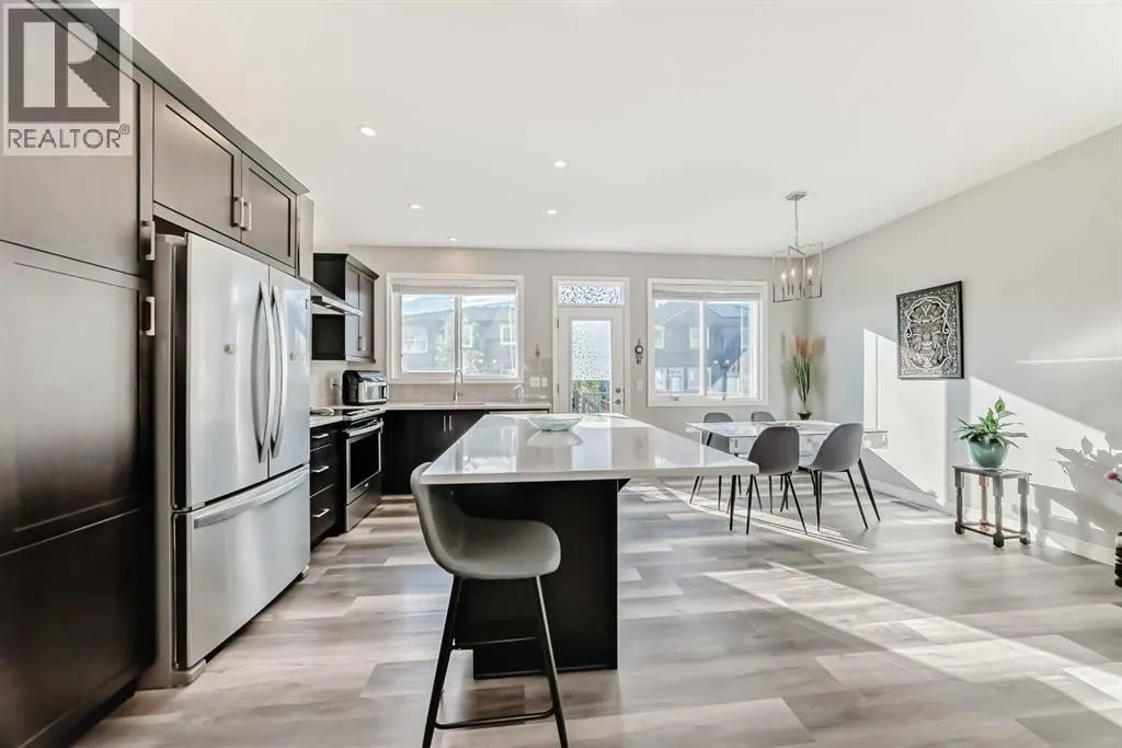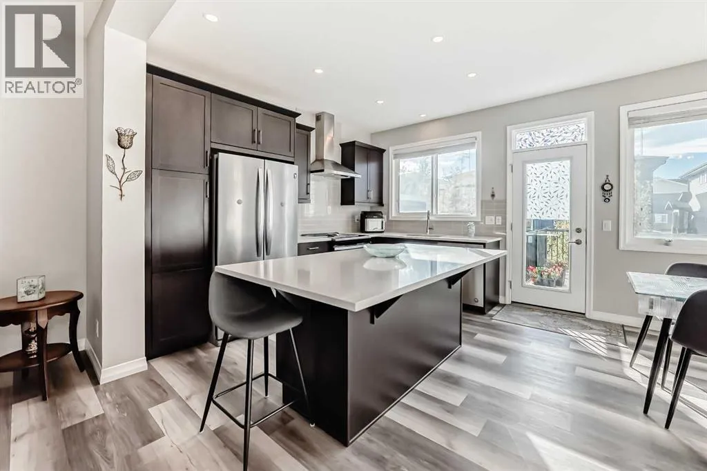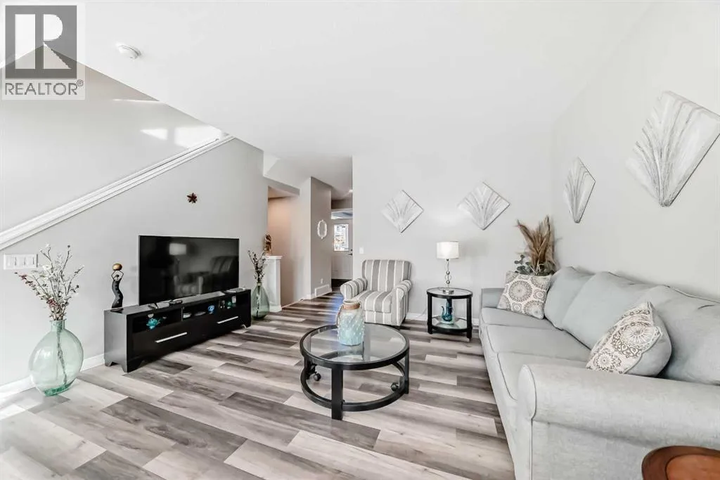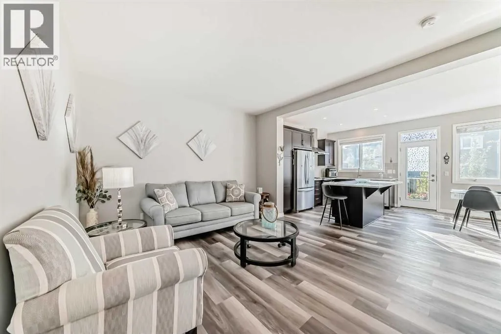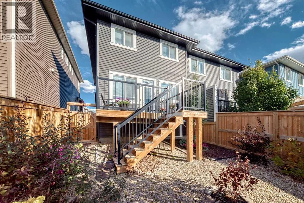 Beautifully maintained semi-detached home in the desirable community of Kings Heights, offering the perfect blend of style, comfort and convenience. Featuring an OPEN-CONCEPT MAIN FLOOR with a bright living room, spacious dining area, and stylish kitchen complete with quartz countertops, breakfast bar, espresso cabinetry and laminate flooring throughout. The dining area opens onto a LARGE WEST-FACING DECK, perfect for summer barbeques and evening sunsets.Upstairs youâll find 3 generously sized bedrooms, including a private primary retreat with a 3-piece ensuite. A versatile bonus room adds space for movie nights or a home office, while the UPPER-LEVEL LAUNDRY and additional 4-piece bathroom make everyday living a breeze. The undeveloped basement awaits your personal touch.The backyard is your own private oasis. Enjoy a FULLY-FENCED, LANDSCAPED, LOW MAINTENANCE BACKYARD surrounded by trees. Additional features of the home include CUSTOM BLINDS THROUGHOUT, SOLAR PANELS, WATER SOFTENER, lots of windows and a SINGLE-ATTACHED GARAGE.Kingâs Heights is a vibrant, family-oriented neighborhood offering endless conveniences. The community offers pathways, playgrounds, dog parks and tranquil ponds. The recently completed 40 Avenue overpass provides direct access to Deerfoot Trail, making commuting easier than ever. Amenities like shopping, dining, and services in Airdrie as well as Cross Iron Mills & Costco are in close proximity. Walking distance to schools. Donât miss this opportunity to get into a move-in ready home. Book your viewing appointment today! (id:27476)