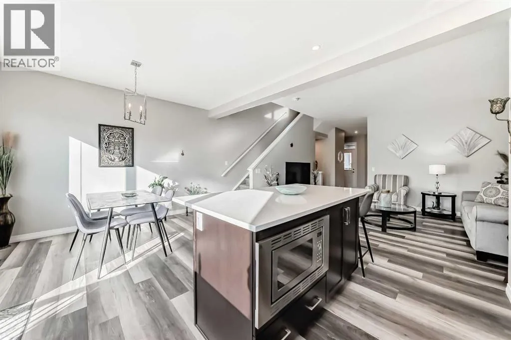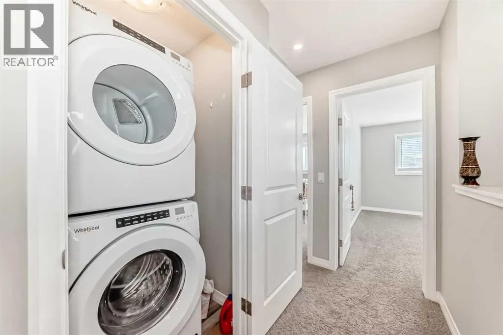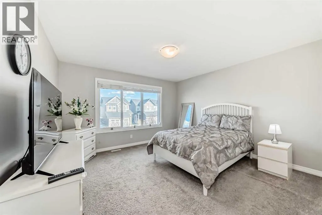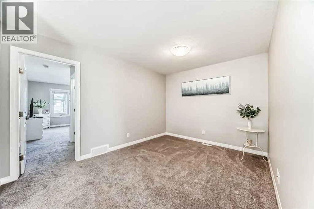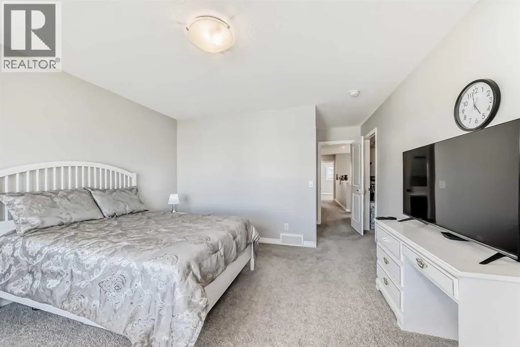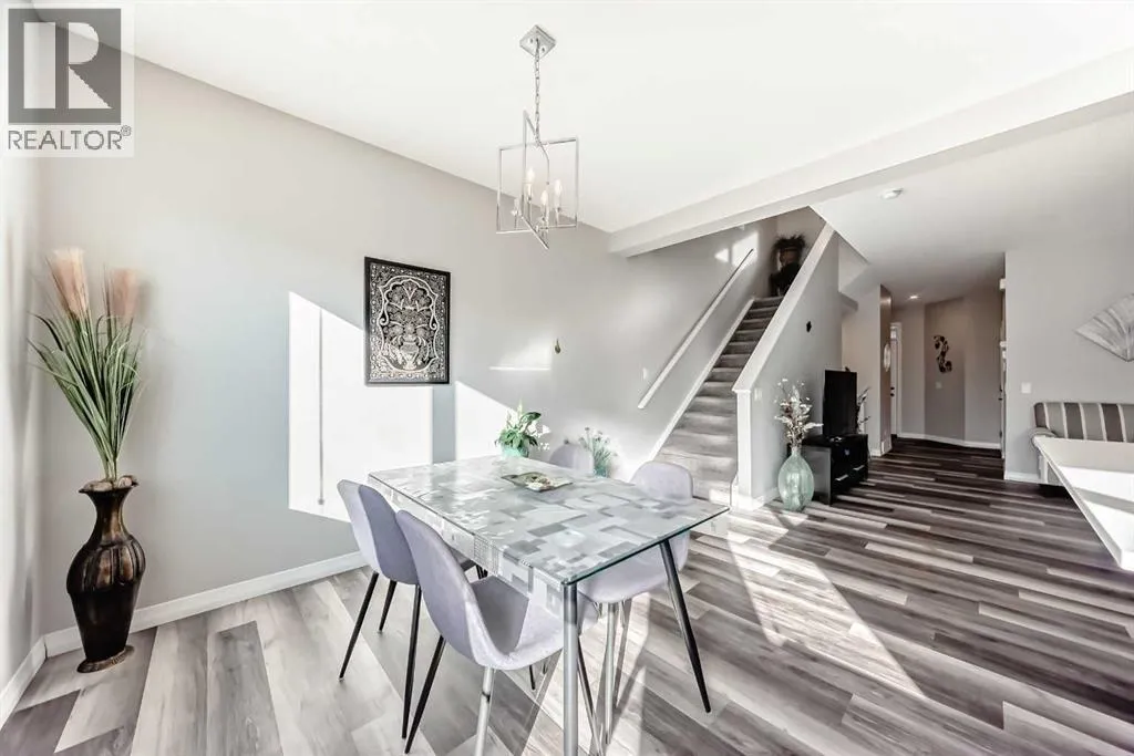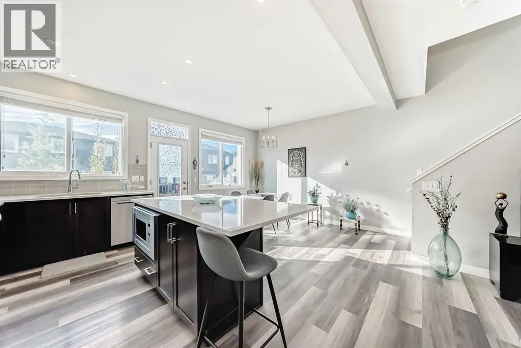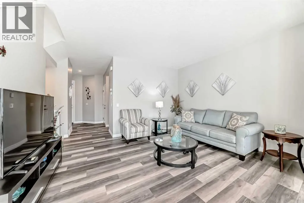 Beautifully maintained semi-detached home in the desirable community of Kings Heights, offering the perfect blend of style, comfort and convenience. Featuring an OPEN-CONCEPT MAIN FLOOR with a bright living room, spacious dining area, and stylish kitchen complete with quartz countertops, breakfast bar, espresso cabinetry and laminate flooring throughout. The dining area opens onto a LARGE WEST-FACING DECK, perfect for summer barbeques and evening sunsets.Upstairs youâll find 3 generously sized bedrooms, including a private primary retreat with a 3-piece ensuite. A versatile bonus room adds space for movie nights or a home office, while the UPPER-LEVEL LAUNDRY and additional 4-piece bathroom make everyday living a breeze. The undeveloped basement awaits your personal touch.The backyard is your own private oasis. Enjoy a FULLY-FENCED, LANDSCAPED, LOW MAINTENANCE BACKYARD surrounded by trees. Additional features of the home include CUSTOM BLINDS THROUGHOUT, SOLAR PANELS, WATER SOFTENER, lots of windows and a SINGLE-ATTACHED GARAGE.Kingâs Heights is a vibrant, family-oriented neighborhood offering endless conveniences. The community offers pathways, playgrounds, dog parks and tranquil ponds. The recently completed 40 Avenue overpass provides direct access to Deerfoot Trail, making commuting easier than ever. Amenities like shopping, dining, and services in Airdrie as well as Cross Iron Mills & Costco are in close proximity. Walking distance to schools. Donât miss this opportunity to get into a move-in ready home. Book your viewing appointment today! (id:27476)