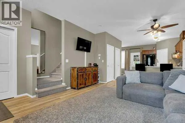 Welcome to this bright and spacious 3-bedroom, 1.5-bath townhome in the sought-after community of Luxstone. This well-maintained unit offers an open-concept main floor featuring a generous living room that flows seamlessly into the dining nook, overlooking your private deck and peaceful green space. The kitchen is both functional and stylish, complete with upgraded cabinetry and a convenient corner pantry. A 2-piece bathroom completes the main level.Upstairs, youâll find three comfortable bedrooms, including a generous primary suite with a walk-in closet, large window, and direct access to the 4-piece main bathroom. Two additional bedrooms are located just across the hallwayâperfect for family, guests, or a home office. The undeveloped basement offers endless potential for future customization. Enjoy the convenience of two assigned parking stalls located directly behind the unit. This established complex is ideally situated close to shopping, schools, parks, and playgrounds. Don't miss your chance to own this amazing home, call your favourite Realtor to book in your showing! (id:27476)