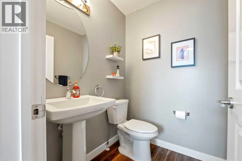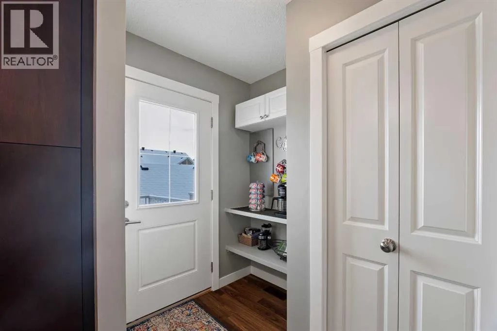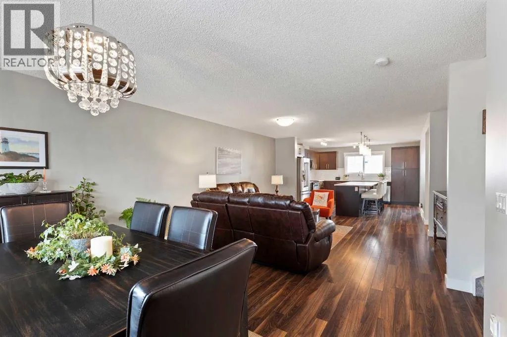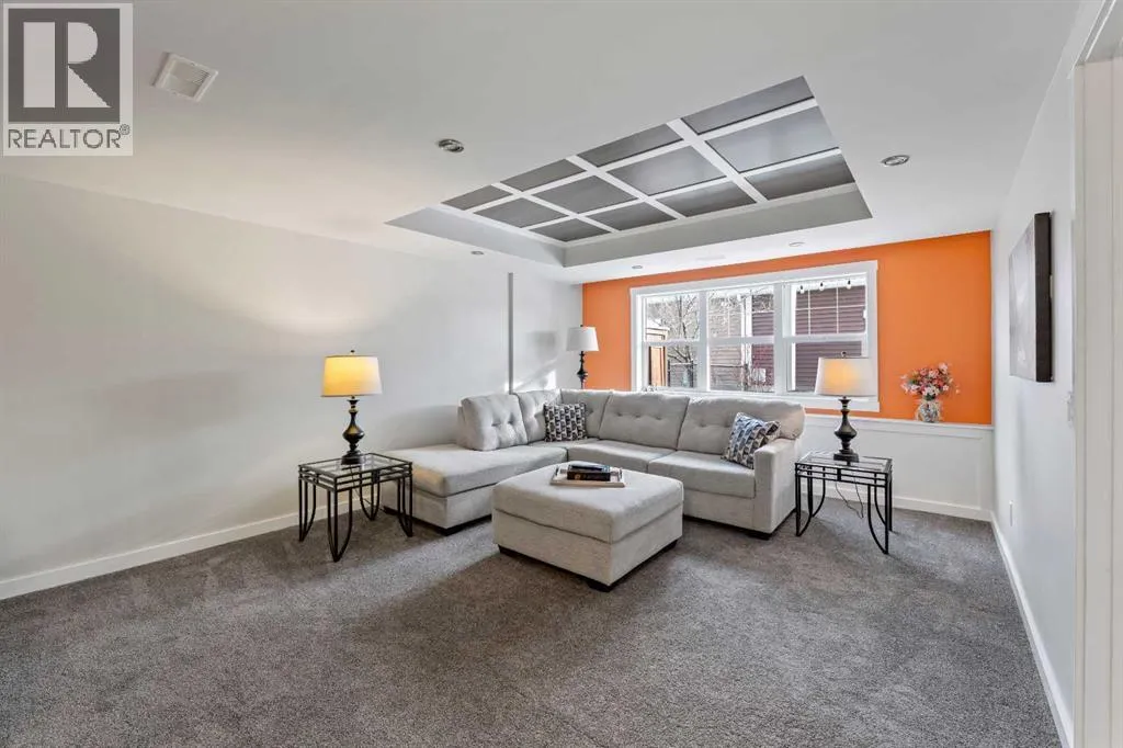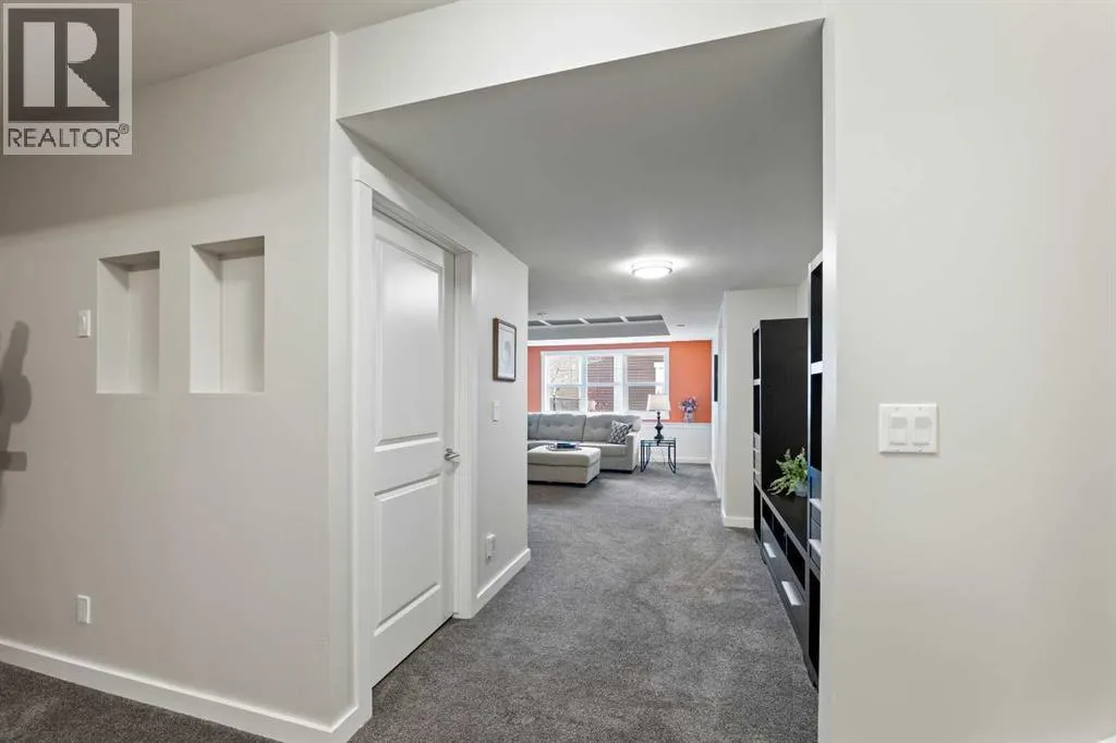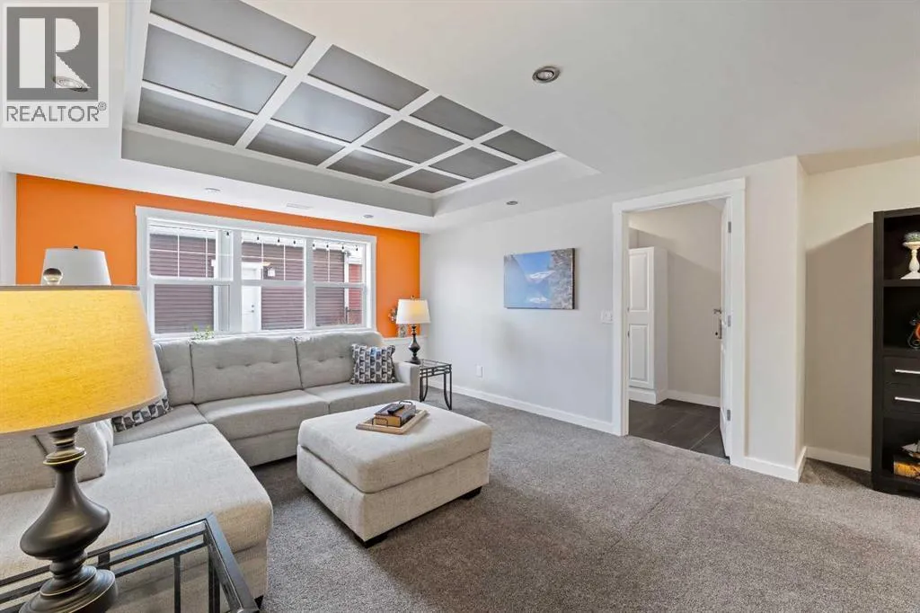 Welcome to 143 Baysprings Terrace! This Brookside-built home with a fully developed walkout basement is sure to impress from the moment you arrive. As you approach, youâre greeted by a spacious west-facing porch â the perfect place to unwind and enjoy beautiful sunsets after a long day. Step inside to discover soaring 9-foot ceilings, an abundance of natural light, and upgraded laminate flooring throughout the main level. The spacious dining area flows seamlessly into the inviting living room and continues into the chef-inspired kitchen, complete with quartz countertops, a massive central island, coffee bar, and ample cabinetry featuring soft-close drawers. A convenient two-piece bathroom and access to the upper deck with a gas line complete the main floor. Upstairs, youâll find a thoughtfully designed layout featuring two primary bedrooms, each with its own walk-in closet and private four-piece ensuite. A generous bonus/family room with a dedicated computer station separates the bedrooms, while a conveniently located laundry area adds everyday functionality. The fully finished walkout basement is designed for entertaining, offering two separate games and TV areas, custom coffered ceilings, and a stylish dry bar. A dedicated storage room and functional mudroom with built-in storage lead to your private backyard oasis, complete with low-maintenance artificial turf, full fencing, and an additional covered entertaining space. The yard provides access to the oversized double detached garage, offering plenty of room for two vehicles. Additional features include central air conditioning and underground sprinklers. Situated in one of Airdrieâs best self-managed townhouse complexes, this home offers access to nearby paved waterfront walking paths, summer paddleboarding, and winter skating or hockey on the Canals. Conveniently located within walking distance to parks, playgrounds, Nose Creek School (Kâ4), shopping, dining, and medical offices. Book your showing today! (id:27476)