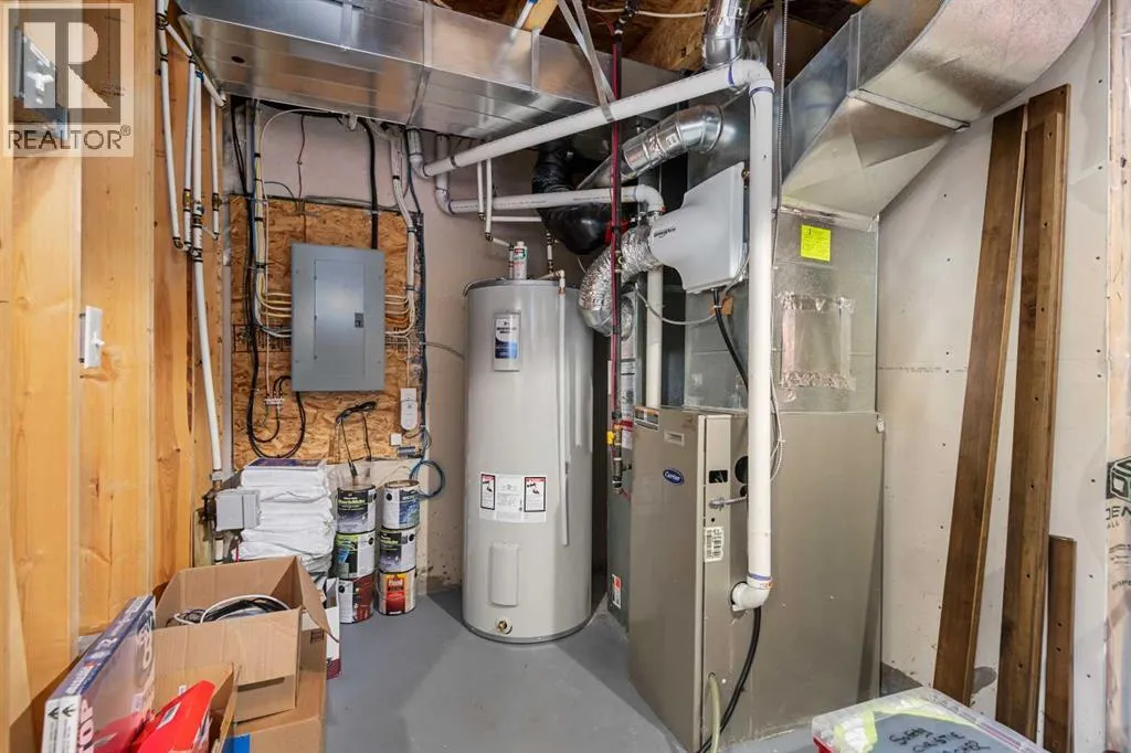 OPEN HOUSE this Sunday Feb 15th 1-3pm! Stylish, spacious, and move-in ready welcome to your modern sanctuary. Perfectly situated in the highly desired community of Williamstown, this home blends sleek design elements with everyday functionality across almost 1500 sq ft of developed space. tasteful modern upgrades, including a new fridge and stove, a new oversized 76-gallon hot water tank, a two-year-old washer/dryer and a new main motor on the furnace. From the moment you step inside, you're greeted by a flood of natural light through oversized windows, accentuating the open layout and stylish finishes. The main floor is all about connection and comfort. The inviting living room, anchored by a cozy gas fireplace, is made for everything from lazy Sundays to lively gatherings. Rich laminate flooring adds a contemporary touch, while the expansive kitchen steals the show with a statement island large enough for the whole family, complete with sleek black & stainless steel appliances that tie the space together beautifully. A generous dining area flows seamlessly to the backyard, where a sun-drenched patio and fully fenced, NW-facing yard invite you to enjoy morning coffees, summer BBQs, and effortless outdoor living. At the rear, you'll also find a massively oversized parking pad for year-round convenience. Upstairs, the primary suite offers a peaceful retreat with its own elegant ensuite. Two additional bedrooms and a full bathroom provide plenty of room for family, guests, or a home office setup. The unfinished basement is the perfect place for all your extra storage or your blank canvas, ready to be developed with a bathroom rough-in and two large windows. Located in the vibrant, family-friendly community of Williamstown, you're just steps from parks, playgrounds, walking and biking paths, schools, transit, and all the shopping and amenities that NW Airdrie has to offer. Book your private viewing today while it lasts! (id:27476)