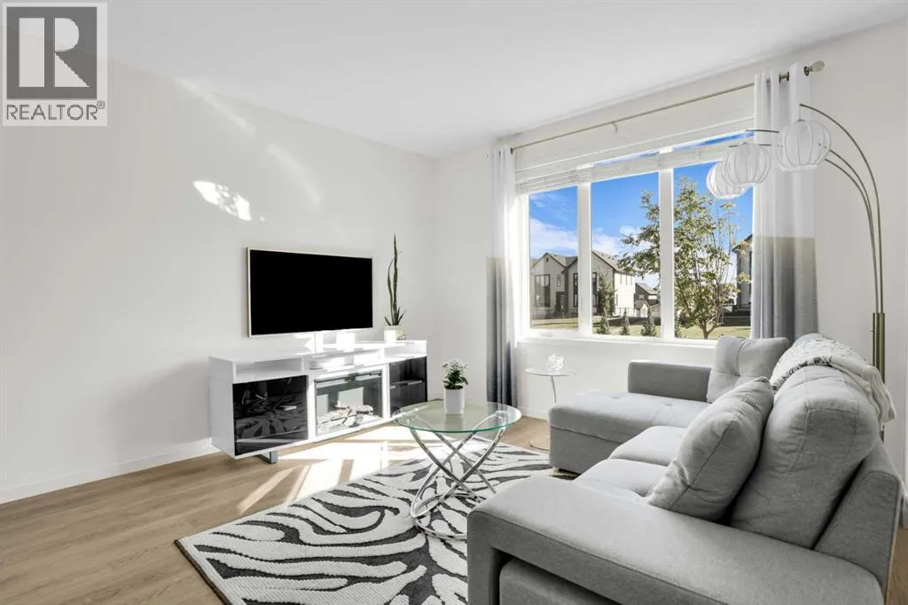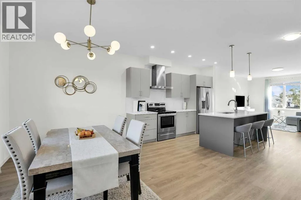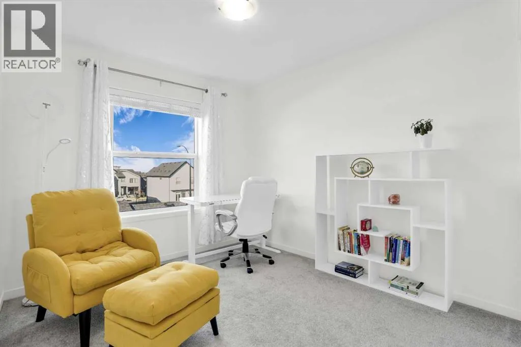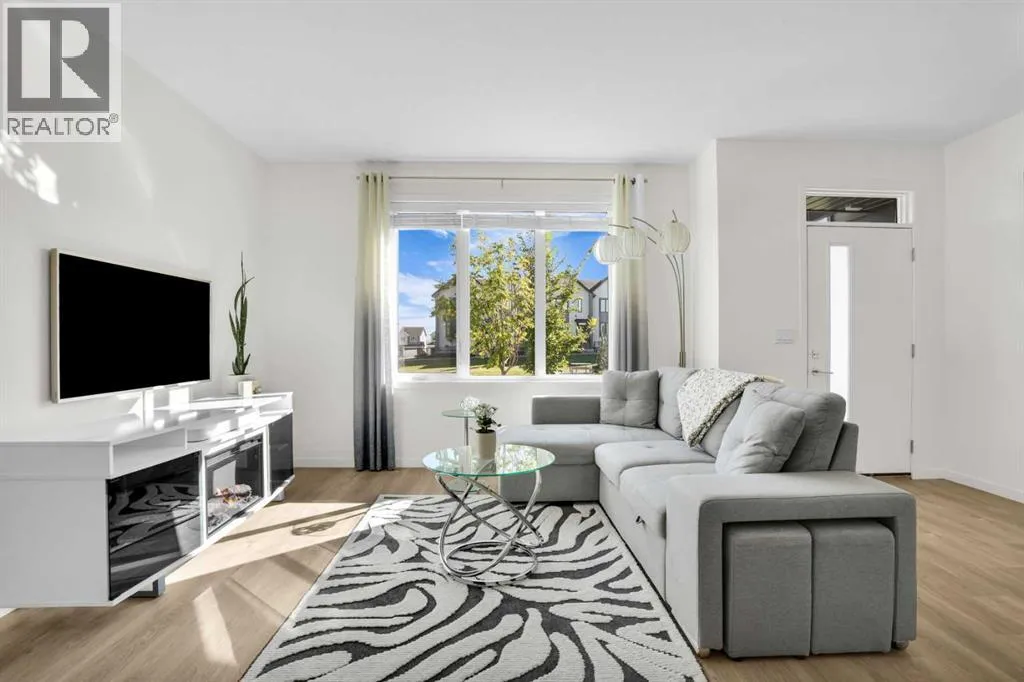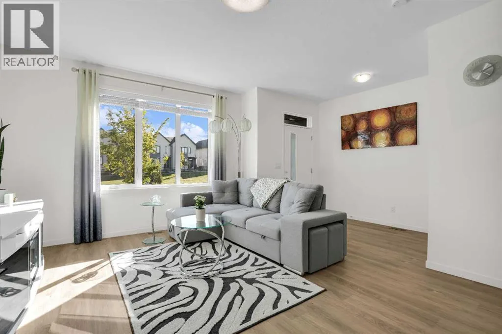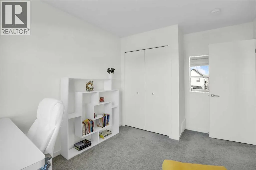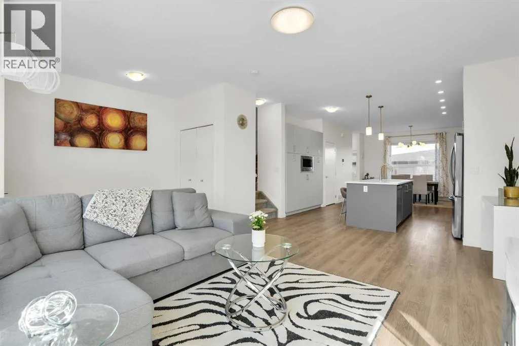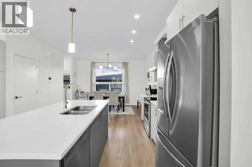 Welcome home to park-side living in Southpoint â with NO CONDO FEES.This bright and beautifully maintained 1,665 sq ft rowhome is ideally located directly across from a green space in the sought-after community of Southpoint, Airdrie, offering an exceptional blend of lifestyle, convenience, and value. The open-concept main floor features quartz countertops, stainless steel appliances, ample storage and an upgraded French-door refrigerator, creating a warm and functional space perfect for everyday living and entertaining. Upstairs, youâll find 3 bedrooms plus a dedicated office, including a spacious primary bedroom overlooking the park, complete with a walk-in closet and dual-sink ensuite. This home truly stands out with central air conditioning, a landscaped yard, stone-paved pathway, and full wooden fencing for added privacy â upgrades not commonly found in neighboring units. A smart thermostat ensures easy, year round climate control. A double detached garage plus a double parking pad for guests, provides excellent everyday convenience. The unfinished basement is clean and ready for future development. Enjoy close proximity to schools, walking paths, green spaces, and a dog park, with quick access to Coopers Promenade and Deerfoot Trail just 3 minutes away, making commuting to Calgary fast and convenient. (id:27476)