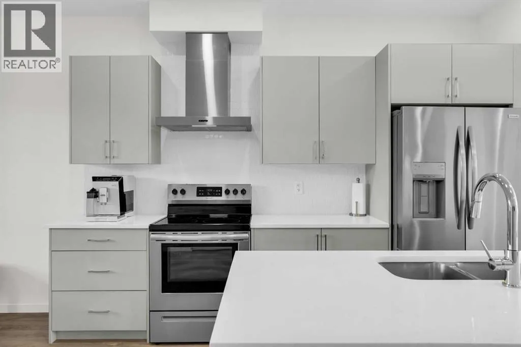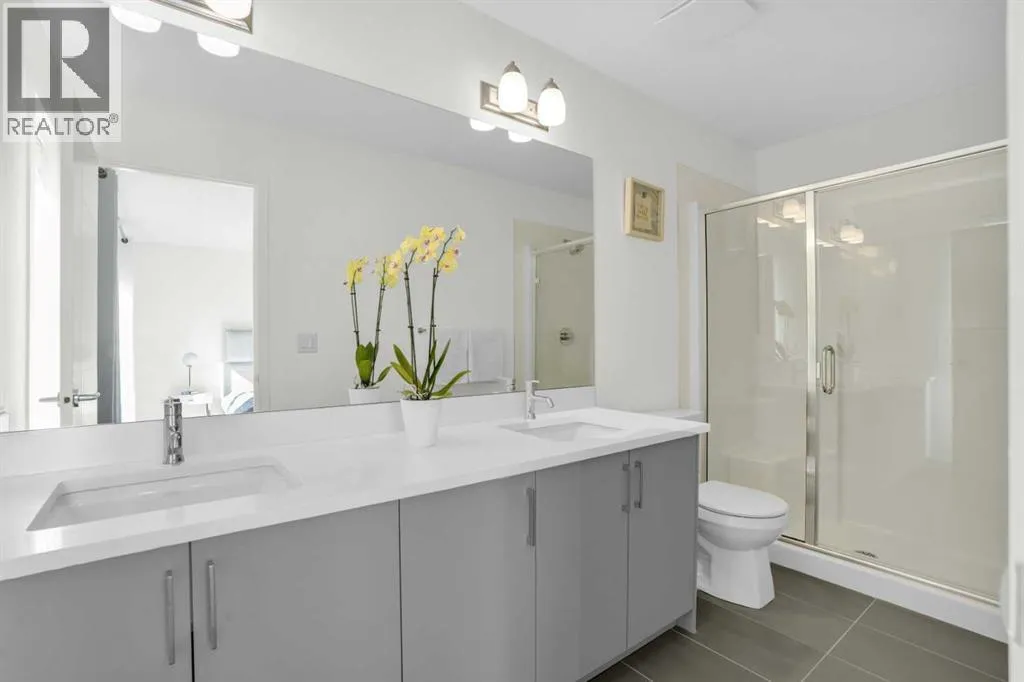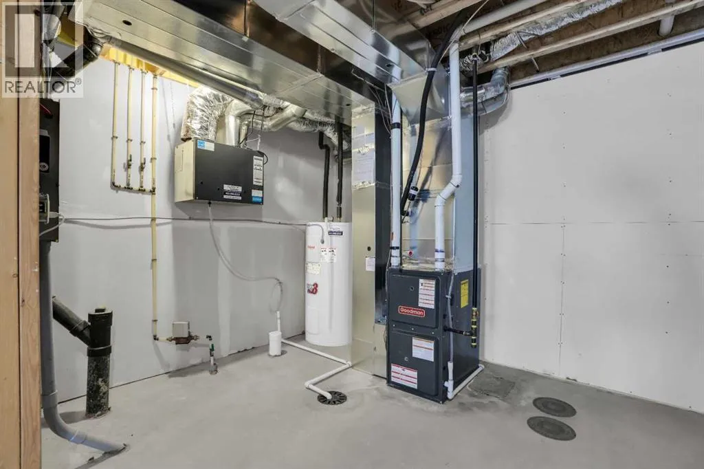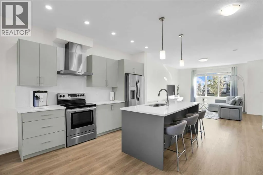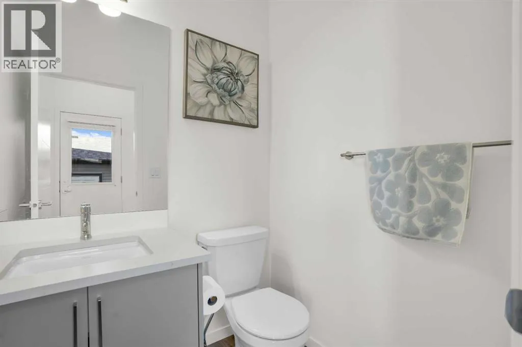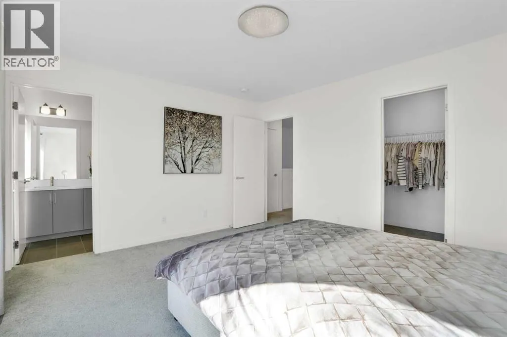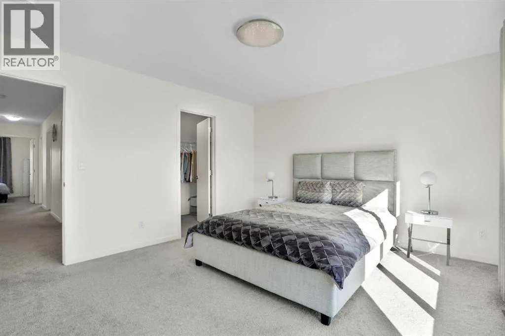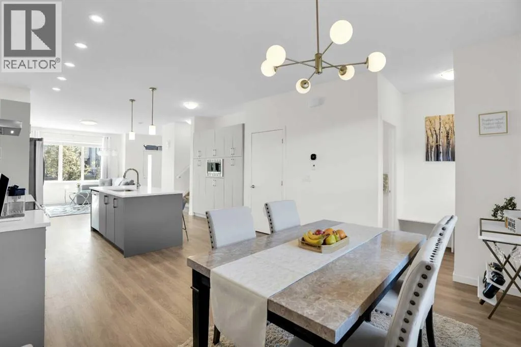 Welcome home to park-side living in Southpoint â with NO CONDO FEES.This bright and beautifully maintained 1,665 sq ft rowhome is ideally located directly across from a green space in the sought-after community of Southpoint, Airdrie, offering an exceptional blend of lifestyle, convenience, and value. The open-concept main floor features quartz countertops, stainless steel appliances, ample storage and an upgraded French-door refrigerator, creating a warm and functional space perfect for everyday living and entertaining. Upstairs, youâll find 3 bedrooms plus a dedicated office, including a spacious primary bedroom overlooking the park, complete with a walk-in closet and dual-sink ensuite. This home truly stands out with central air conditioning, a landscaped yard, stone-paved pathway, and full wooden fencing for added privacy â upgrades not commonly found in neighboring units. A smart thermostat ensures easy, year round climate control. A double detached garage plus a double parking pad for guests, provides excellent everyday convenience. The unfinished basement is clean and ready for future development. Enjoy close proximity to schools, walking paths, green spaces, and a dog park, with quick access to Coopers Promenade and Deerfoot Trail just 3 minutes away, making commuting to Calgary fast and convenient. (id:27476)
