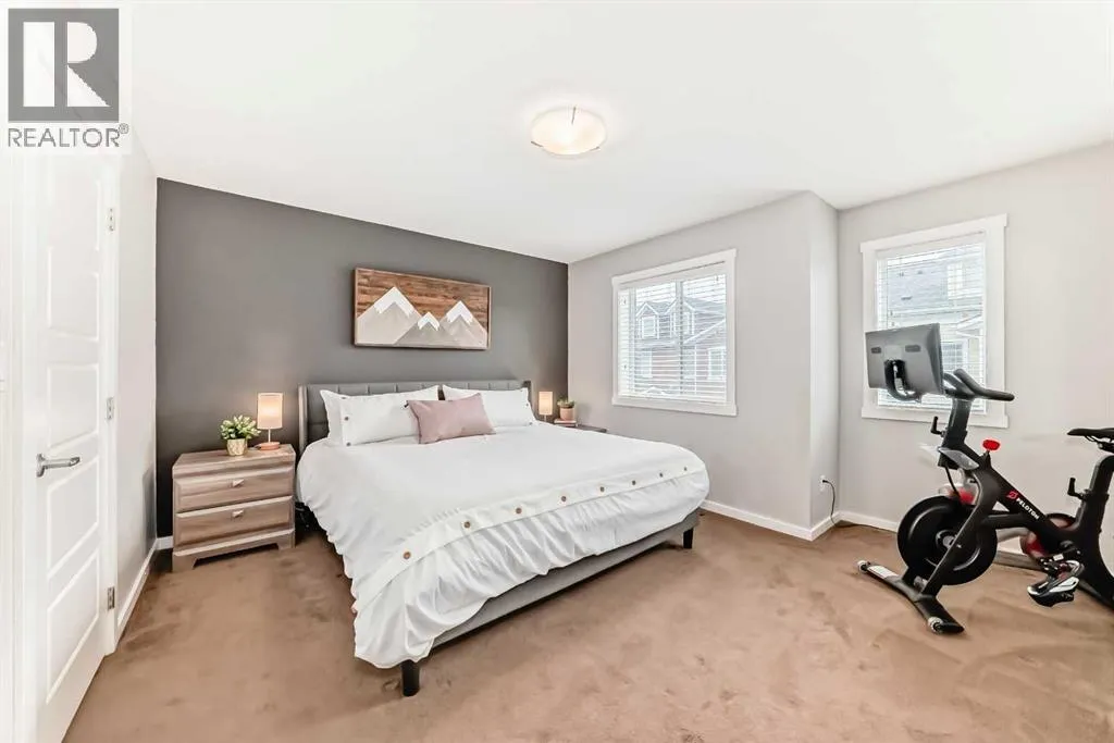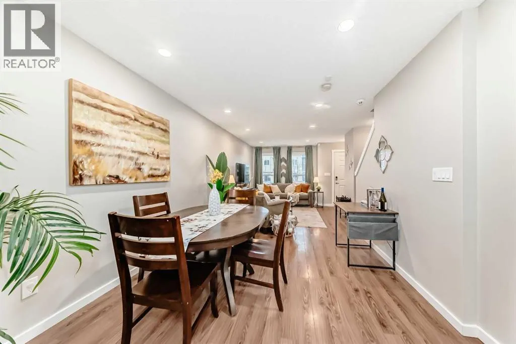 Open House -- Sunday Feb 15, 1-3 -- Welcome to Ravenswood - quiet streets, parks and pathways, and close proximity to shopping, dining, schools. This lovingly maintained 2-bedroom, 1.5 bath townhome is ideal for downsizing, first-time buyers, or investors. This home has an attractive open concept layout and a quaint private backyard. The bright main floor flows from the living area to the dining space and kitchen. The kitchen features trendy rich cabinetry, quartz counters, an electric stove, dishwasher, and microwave hood fan, plus plenty of counter space for cooking and entertaining. Don't forget about the adorable half bath. Upstairs, youâll find two HUGE bedrooms. The Primary has room for your King Bed, lots of Furniture and Workout Equipment. The Main Bath is a cheater suite flowing to the WIC and Primary Bedroom. Additional storage can be found in the attic with a pull down staircase allowing access. Fresh paint throughout, Air Conditioning and upper floor laundry make this home a dream! Enjoy your fenced backyard, perfect for BBQs, gardening, or watching your children play. This property includes a dedicated parking stall. Condo fees include snow removal, landscaping, and insurance. 2 pets allowed. Make it yours today! (id:27476)