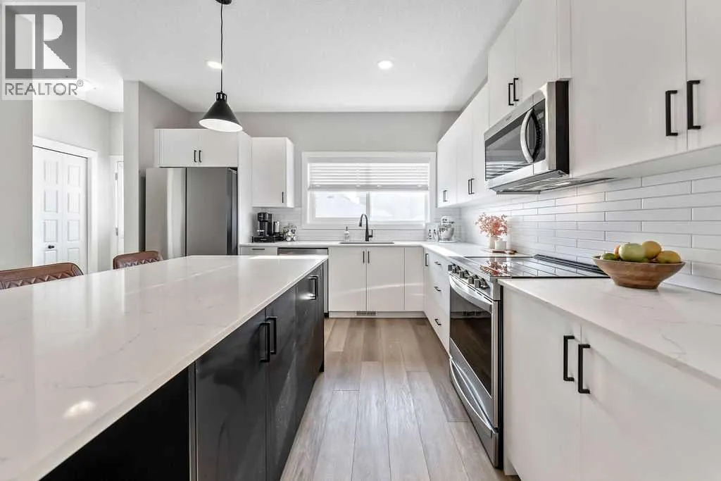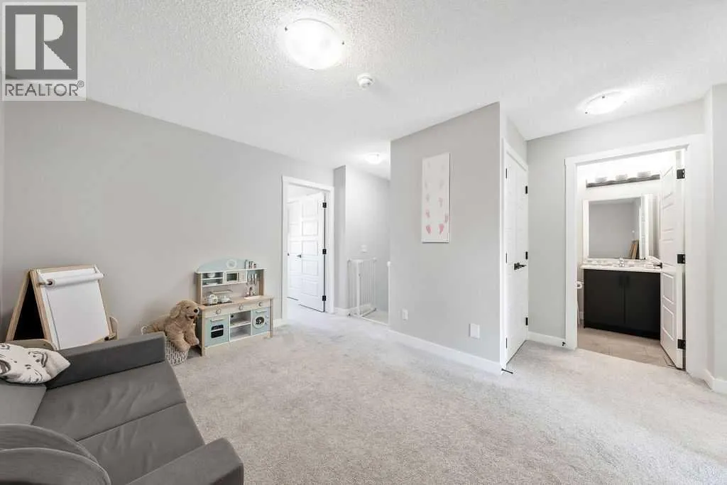 Welcome to this beautifully upgraded 3-bedroom, 2.5-bathroom home in the highly desirable Midtown community. Thoughtfully designed with both style and functionality in mind, this home offers a refined living experience and a prime location facing a scenic walking path and green space.Step inside to a bright, open-concept main floor featuring a spacious living room perfect for cozy nights or entertaining friends. The chef-inspired kitchen is a true showpiece with quartz countertops, slow-close cabinetry, a large central island, stainless steel appliances, upgraded sink and faucet, and a massive walk-in pantry. Natural light fills the space through the kitchen window, and LED lighting throughout adds a modern, polished touch. A convenient powder room completes the main floor.Upstairs, a versatile bonus room provides the perfect space for a home office, playroom, or media room. The primary suite is a private retreat with a walk-in closet and a luxurious 3-piece ensuite. Two additional bedrooms, a full 4-piece bathroom, and upper-level laundry with upgraded washer and dryer provide practicality and comfort for the whole family.The fully finished backyard is a true extension of the home, featuring a private deck, fencing with a gate, turf with a path to the garage, decorative side paths with stone accents, and a BBQ gas lineâperfect for summer entertaining. The double detached garage offers convenience and includes custom shelving. The fully fenced front yard offers a large covered porch, ideal for enjoying your morning coffee or peaceful evenings overlooking the greenspace.Additional highlights include premium/upgraded carpet, Google smart home integration with built-in speakers, LED lighting throughout, and remaining new-home warranty coverage for added peace of mind. The basement is a blank canvas, wide open and ready for your creative vision. Currently used as a gym/flex space.Located just steps from Midtownâs walking trails, parks, ponds, schools, and urban amenities, this home combines thoughtful upgrades, modern design, and lifestyle convenience in one complete package. Move-in ready and waiting for you. Experience the best of Midtown living today! (id:27476)