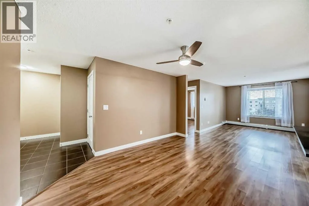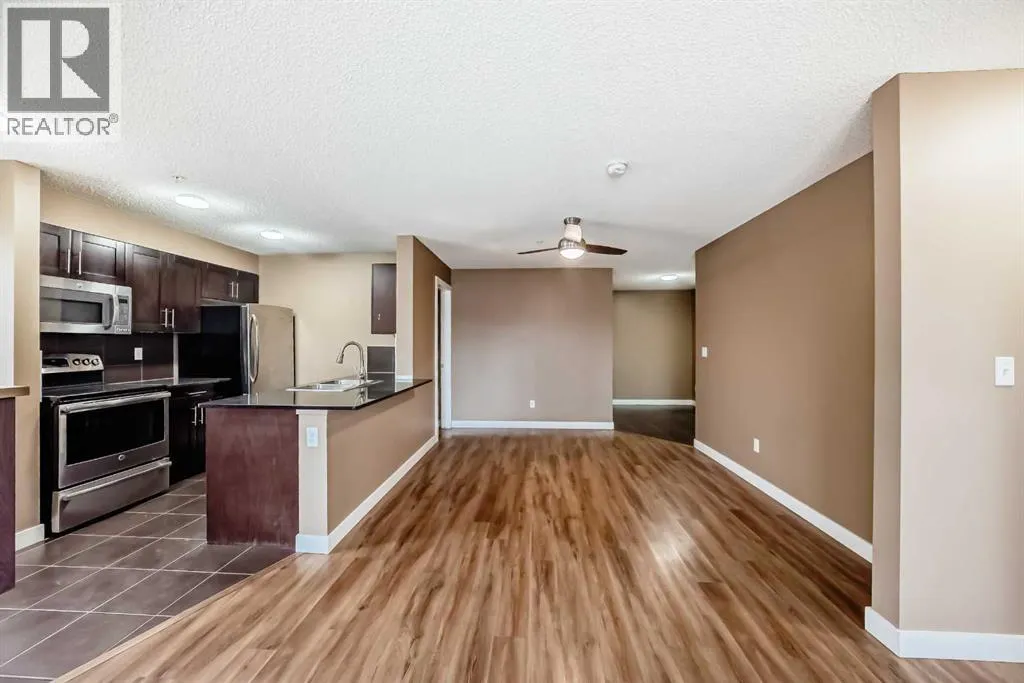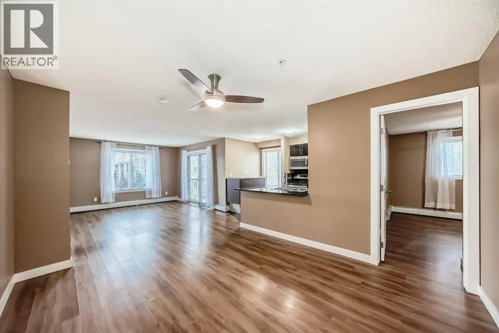 -- OPEN HOUSE Saturday Feb 7, 12-2pm -- What a deal! DOWN-SIZERS, INVESTORS, FIRST-TIME HOME BUYERS - Don't miss this opportunity for a CORNER UNIT Apartment in the desirable apartments of Creekside Crossing in Airdrie. Corner Unit means: more space, more windows (feels less like an apartment), more parking and guess what?? this unit is also SOUTHEAST-FACING - letting in all the natural light! When you enter the you have tons of room to take off your shoes and a convenient Den space located right beside - perfect for your at-home office or additional storage. The open floor plan leaves enough room for a large dining table and makes it easy to entertain. Your Kitchen has Stainless Steel Appliances, lovely Granite Counters and Additional Cabinetry has been added for even more storage. The Covered Deck is great to enjoy the outdoors through allllmost all of our seasons, just imagine drinking your morning coffee and watching the sunrise. There are TWO Bedrooms. One is your traditional Bedroom located directly beside a 4-Piece Bathroom - this is perfect for Guests, or Roommates. The Primary Bedroom has its own Walk-through Closet on your way to your 3-Piece Ensuite (with walk-in shower). Laundry is convenient and easy, located right inside your unit. Not many apartments come with 2 PARKING STALLS both of which are underground. They are right beside the elevator making trips to your apartment easy! The building itself couldn't be in a more convenient spot - this is Airdrie's DOWNTOWN. Close to Shopping, Dining, Gas, Tim Horton's and pop onto First Ave to get to HWY 2 easily. If you want this apartment, act fast, the corner units don't last! (id:27476)