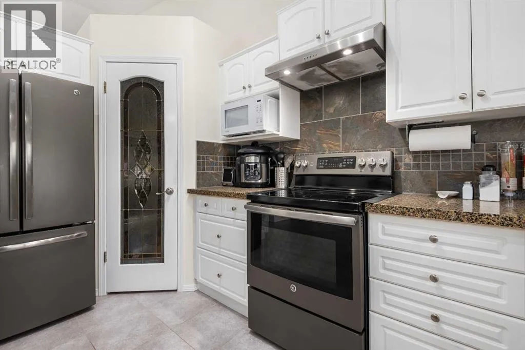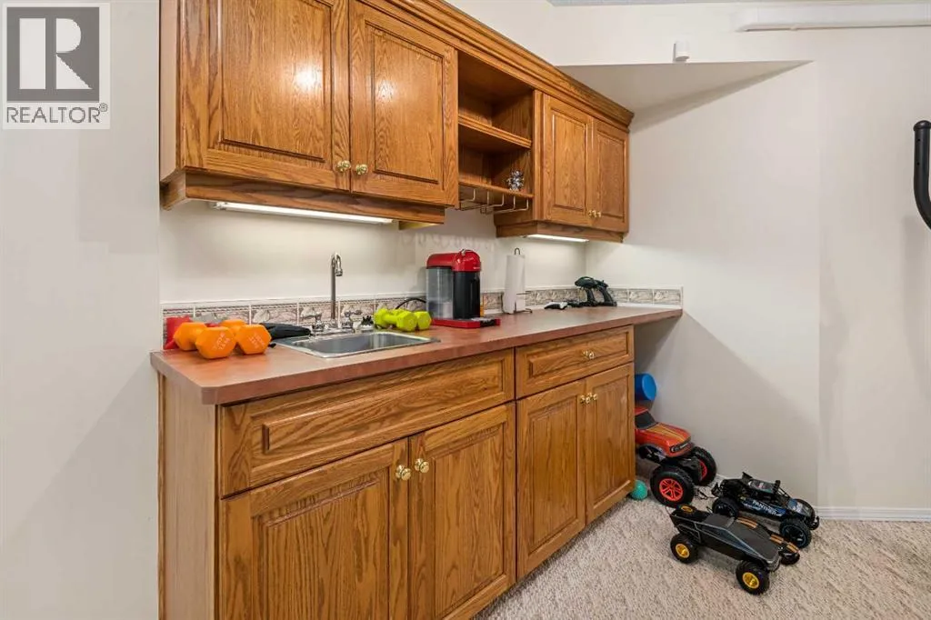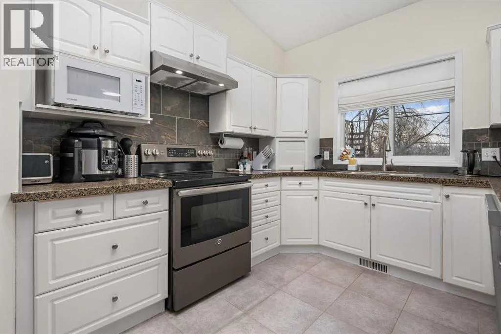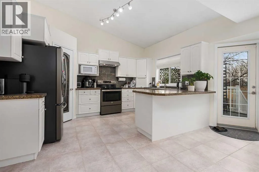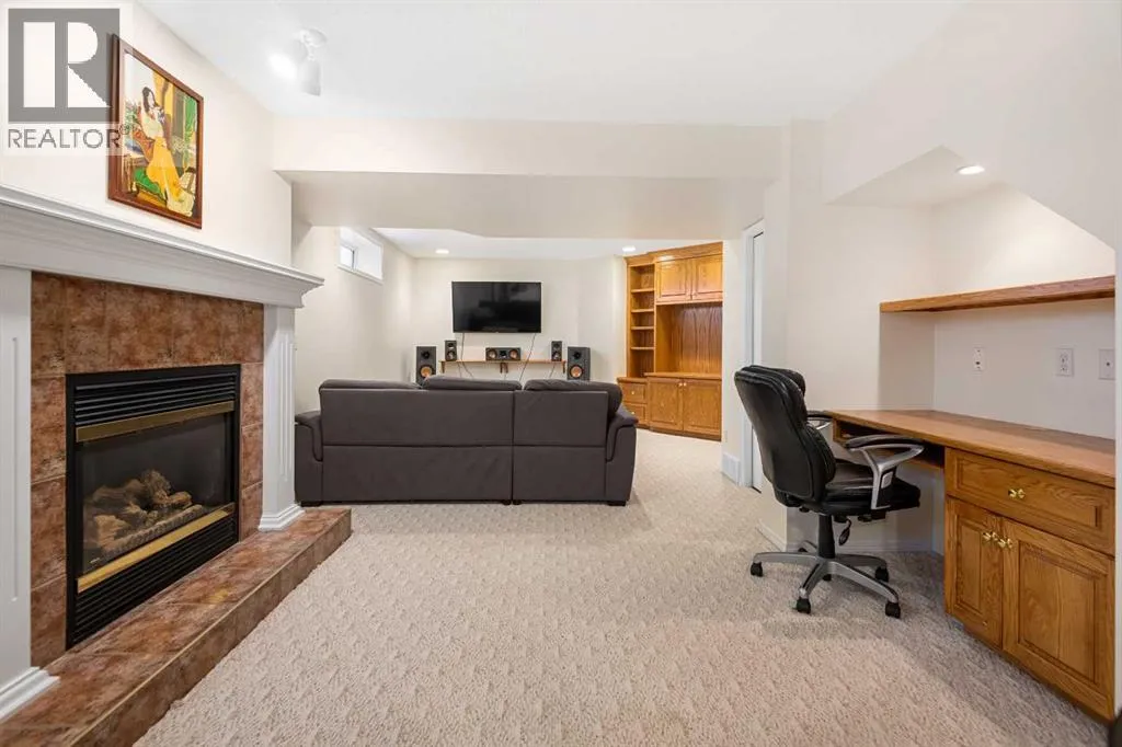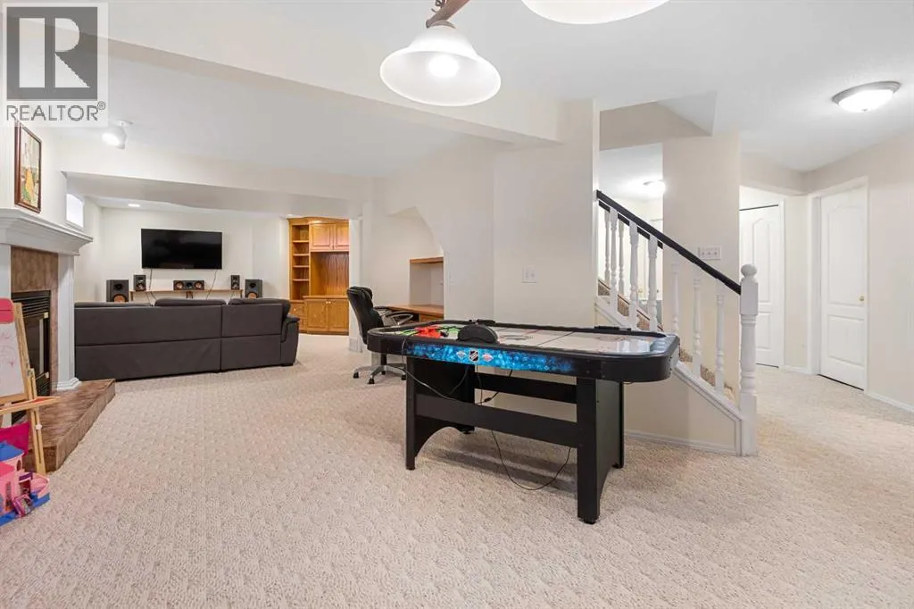 Welcome to this beautifully updated 2-storey split home, ideally located along the 10th hole of Woodside Golf Course. This impressive property combines timeless design with thoughtful modern upgrades, offering both comfort and functionality.The home has been freshly painted and features numerous recent improvements, including a new furnace and hot water tank (January 2025), new hood fan (January 2025), and a new dishwasher (November 2025), providing peace of mind for years to come.Upon entry, youâre greeted by high vaulted ceilings in the living room, dining area, and kitchen, creating an airy and welcoming atmosphere. Large windows fill the home with natural light, enhancing the open and spacious feel throughout. The main floor offers a cozy sunken family room with a gas fireplace, perfect for relaxing evenings, as well as a versatile main floor bedroom ideal for a home office or guest room.Upstairs, youâll find three generously sized bedrooms, including a spacious primary retreat featuring a recently renovated ensuite and a custom walk-in closet by California Closets. The second level has been updated with modern vinyl plank flooring, adding a sleek and contemporary touch.The fully finished basement is designed for entertaining, offering a large recreation room complete with a fireplace, built-in desk, bar, and TV wall unit. A fifth bedroom and a 3-piece bathroom complete this flexible lower level.Additional highlights include air conditioning, location on a school bus route with priority snow removal, an extra-long driveway accommodating up to four vehicles or a large RV, and a spacious oversized double garage.Step outside to enjoy summer days on the large deck, overlooking a beautifully maintained backyard with a sprinkler system, all just steps from Woodside Golf Course and the 525 Restaurant.This is a rare opportunity to own a well-maintained, move-in-ready home in a premium golf course location. (id:27476)