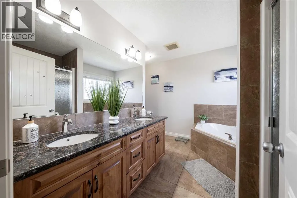 ***WELCOME HOME*** This Beautifully UPGRADED & Fully DEVELOPED family home is Nestled in the PRIME LOCATION on a quiet street, backing directly onto the GREENSPACE & PARK! Boasting nearly 2900ft of living space across 3 levels, this well-appointed home is designed with comfort and functionality in mind. The main level welcomes you with an open-concept layout highlighted by Luxury VINYL PLANK flooring, expansive WINDOWS & 9' ceilings - creating a BRIGHT and AIRY atmosphere. The CHEF'S Kitchen, featuring UPGRADED Cabinetry & Stainless Steel Appliances, Stone Countertops, large Central Island with eat-up bar and corner pantry, opens to the Dining Area and Living Room with cozy GAS fireplace - all showcasing the beautiful GREENSPACE & PARK VIEWS. A private front den/office (or 5th bedroom) and 2pc powder room complete this level. Upstairs, the PRIVATE master retreat offers a large WALK-IN closet & 5pc ENSUITE complete with double vanity, walk-in shower & oversized CORNER TUB. A huge BONUS/THEATRE ROOM, 2 additional bedrooms, another full bath & laundry room round off this level. The Fully DEVELOPED lower level features a large family room with another GAS FIREPLACE, WET BAR/Kitchenette, 4th bedroom, full bath & plenty of STORAGE SPACE! Ideal for movie nights, a growing family or having friends over for the big game, this level provides all the additional living space you'll need! Step outside into the fully fenced & landscaped backyard with direct access to the PARK, PLAYGROUND and WALKING PATHS right outside your gate! The large RAISED DECK is the perfect spot to enjoy the peaceful VIEWS while relaxing with your favorite drink or BBQing & entertaining friends & family! This lovely home features many recent UPGRADES including A/C, HW tank, some newer appliances & more! Prairie Springs is a VIBRANT Family Friendly Community, surrounded by great Schools, Walking Paths & Lush Greenspaces, YEAR-ROUND Outdoor Recreation & MORE, providing a prominent sense of community, liva bility & countless AMENITIES within walking distance! Simply MOVE IN & start making new memories with your Family in this fantastic TURN-KEY Home! (id:27476)