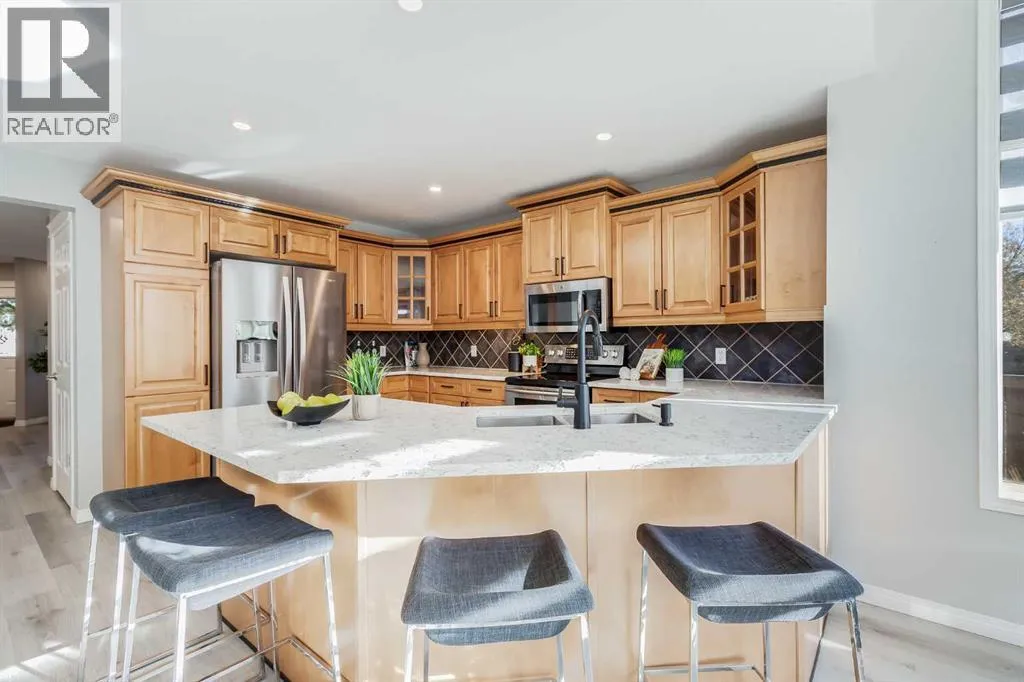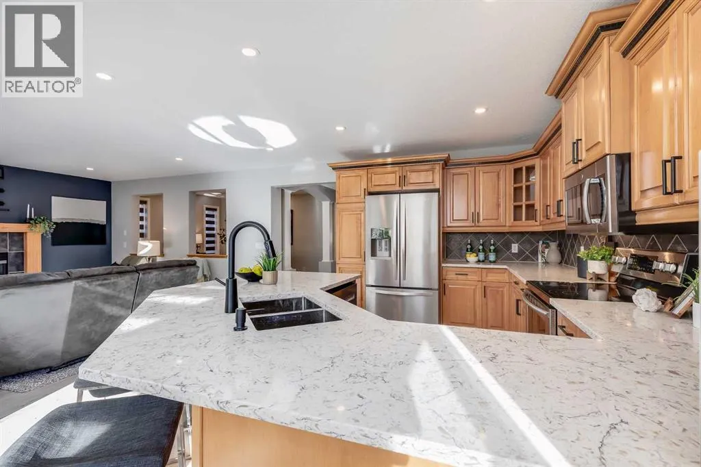 **Open house Friday, Feb 13th from 3:30-5:30 PM** Renovated top to bottom and tucked into a quiet bay in Fairways, this move-in-ready home pairs modern finishes with generous living space. Updates include new flooring (including plush carpet), fresh paint, knockdown ceilings, all-new lighting, quartz counters, and brand-new bathrooms throughout. The main floor offers large, connected living/dining zones for easy everyday life and entertaining. Each secondary bedroom fits a queen; the private primary retreat fits a king and features a spacious ensuite and a large walk-in closet. Downstairs, a huge rec room works for movie nights, play space, or a home gym. Out back, the fenced, private yard is ideal for kids, pets, and patio time. Minutes to pathways, parks, and Woodside Golf Course. School-friendly location: close to Ralph McCall (Elementary) C.W. Perry (Middle) plus nearby Catholic options Good Shepherd (Kâ9), high school: St. Martin de Porres (10â12) Book a private showing at this stylish, bright and cozy home today! (id:27476)