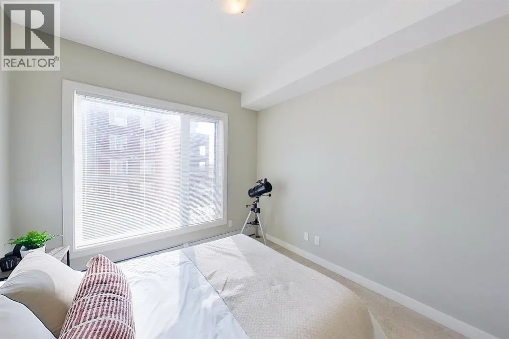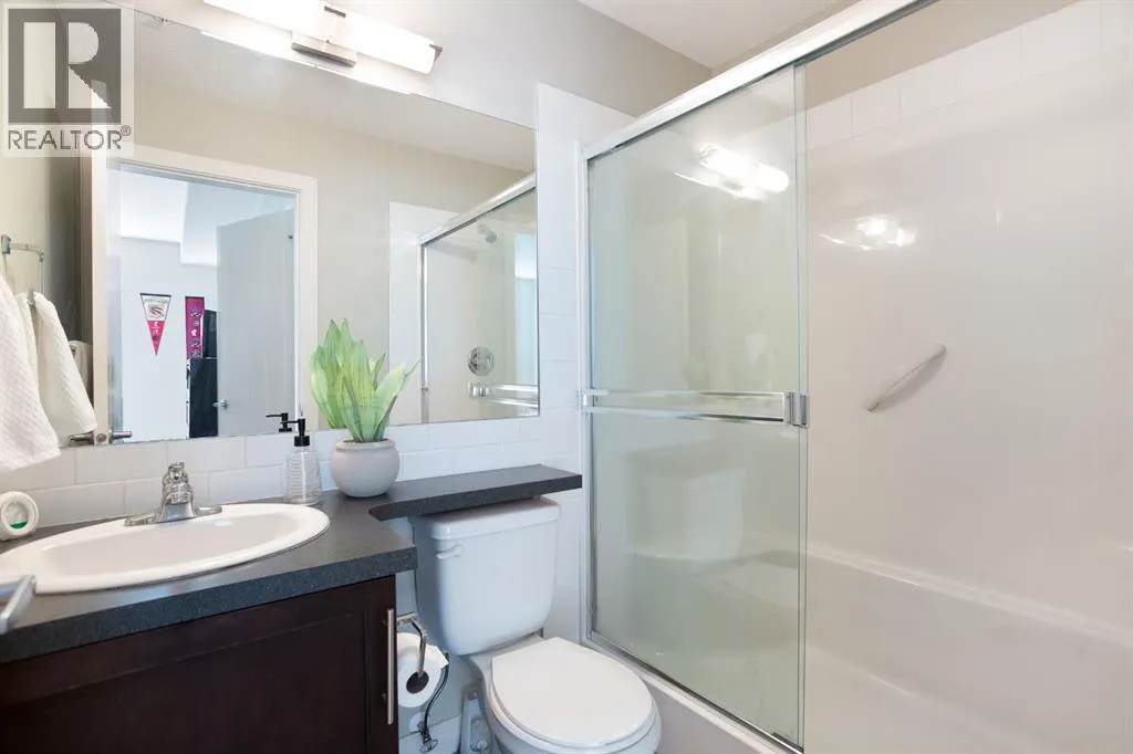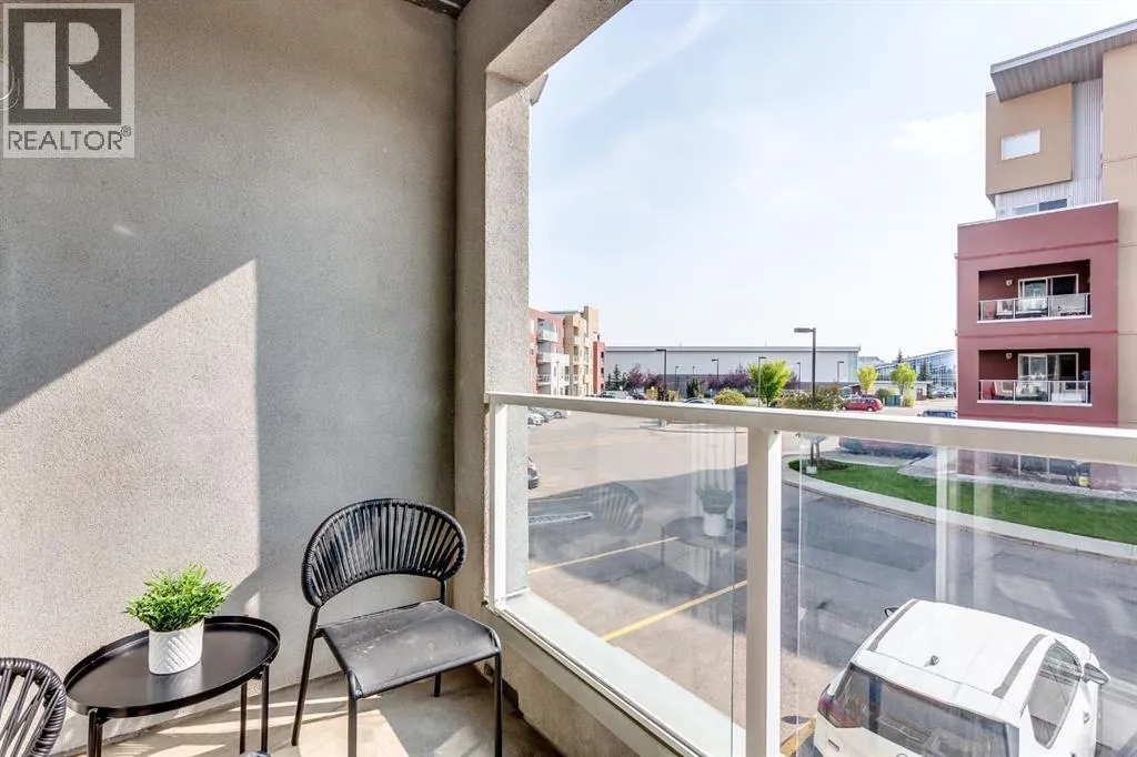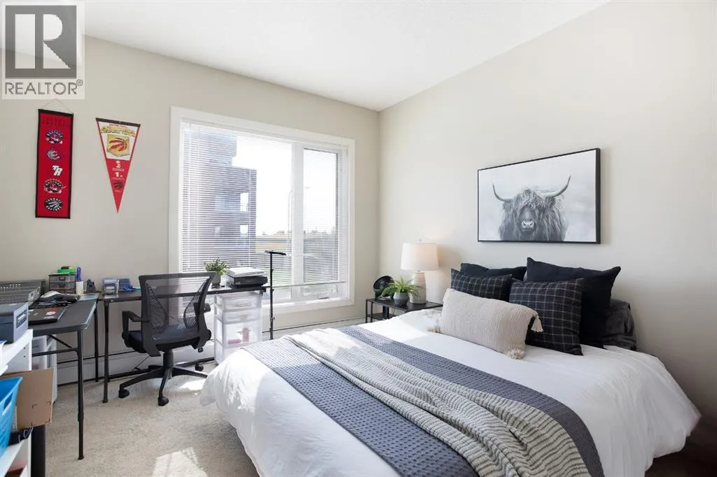 Experience the perfect harmony of modern sophistication and effortless living in this beautifully updated, south-facing sanctuary. Spanning a generous 847 square feet, this two-bedroom, two-bathroom condo is a masterclass in functional design, maximizing every inch to create an atmosphere that feels both expansive and intimate. Bathed in natural light from its coveted southern exposure, the open-concept layout invites you into a bright, airy living area that flows seamlessly onto a private, sun-drenched balconyâthe ultimate setting for morning coffee or evening reflection. The heart of this residence is a chef-inspired kitchen that balances warmth with high-end style. Featuring rich walnut cabinetry, contemporary tiling, and a massive central island with seating for four, it serves as a premier hub for weekend entertaining or quiet weeknight meals. The floor plan is thoughtfully arranged with privacy as a priority; the primary suite acts as a true retreat, offering a large window that frames the sun and a dedicated three-piece ensuite. A spacious secondary bedroom and a full four-piece main bathroom provide ample room for guests, a home office, or a growing family, while the convenience of in-suite laundry ensures your daily routine remains streamlined. Beyond the walls of this stunning unit, the location on East Lake Boulevard is truly unparalleled. Imagine a vibrant community where your front door is situated merely steps from the premier amenities of Genesis Place. Whether you are heading to the gym, the pool, or the skating rink, world-class recreation is right at your fingertips. The lifestyle appeal continues with Bert Church High School, outdoor hockey rinks, tennis courts, and diverse shopping destinations all within easy walking distance. Meticulously maintained and entirely move-in ready, this modern residence offers an incredible opportunity for first-time buyers entering the market, downsizers seeking a simpler pace, or savvy investors eyeing a high-dema nd district. This isnât just a condo; itâs a gateway to a convenient, active, and luminous future. Donât allow this rare find to pass you byâcome experience the charm of this exceptional property for yourself and schedule your private viewing today! (id:27476)