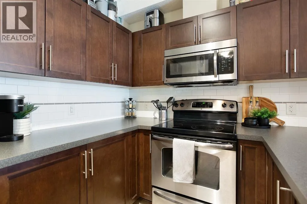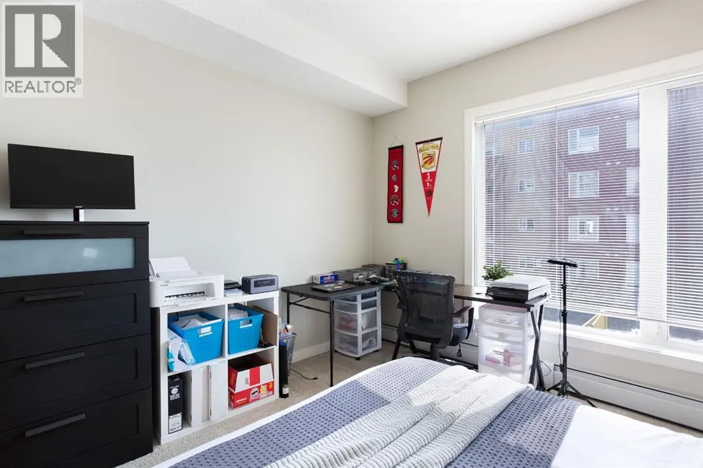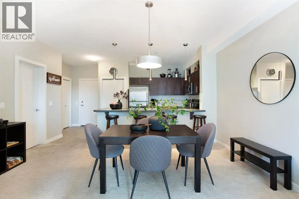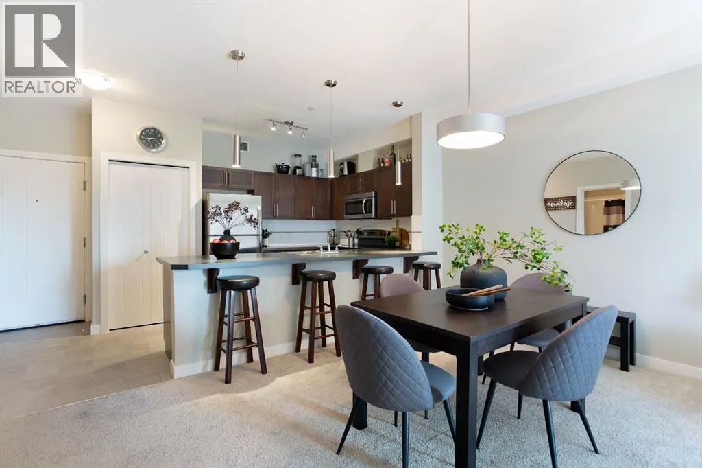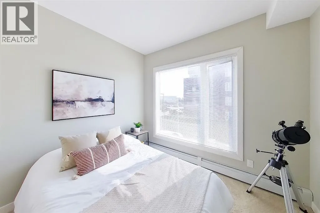 Experience the perfect harmony of modern sophistication and effortless living in this beautifully updated, south-facing sanctuary. Spanning a generous 847 square feet, this two-bedroom, two-bathroom condo is a masterclass in functional design, maximizing every inch to create an atmosphere that feels both expansive and intimate. Bathed in natural light from its coveted southern exposure, the open-concept layout invites you into a bright, airy living area that flows seamlessly onto a private, sun-drenched balconyâthe ultimate setting for morning coffee or evening reflection. The heart of this residence is a chef-inspired kitchen that balances warmth with high-end style. Featuring rich walnut cabinetry, contemporary tiling, and a massive central island with seating for four, it serves as a premier hub for weekend entertaining or quiet weeknight meals. The floor plan is thoughtfully arranged with privacy as a priority; the primary suite acts as a true retreat, offering a large window that frames the sun and a dedicated three-piece ensuite. A spacious secondary bedroom and a full four-piece main bathroom provide ample room for guests, a home office, or a growing family, while the convenience of in-suite laundry ensures your daily routine remains streamlined. Beyond the walls of this stunning unit, the location on East Lake Boulevard is truly unparalleled. Imagine a vibrant community where your front door is situated merely steps from the premier amenities of Genesis Place. Whether you are heading to the gym, the pool, or the skating rink, world-class recreation is right at your fingertips. The lifestyle appeal continues with Bert Church High School, outdoor hockey rinks, tennis courts, and diverse shopping destinations all within easy walking distance. Meticulously maintained and entirely move-in ready, this modern residence offers an incredible opportunity for first-time buyers entering the market, downsizers seeking a simpler pace, or savvy investors eyeing a high-dema nd district. This isnât just a condo; itâs a gateway to a convenient, active, and luminous future. Donât allow this rare find to pass you byâcome experience the charm of this exceptional property for yourself and schedule your private viewing today! (id:27476)
